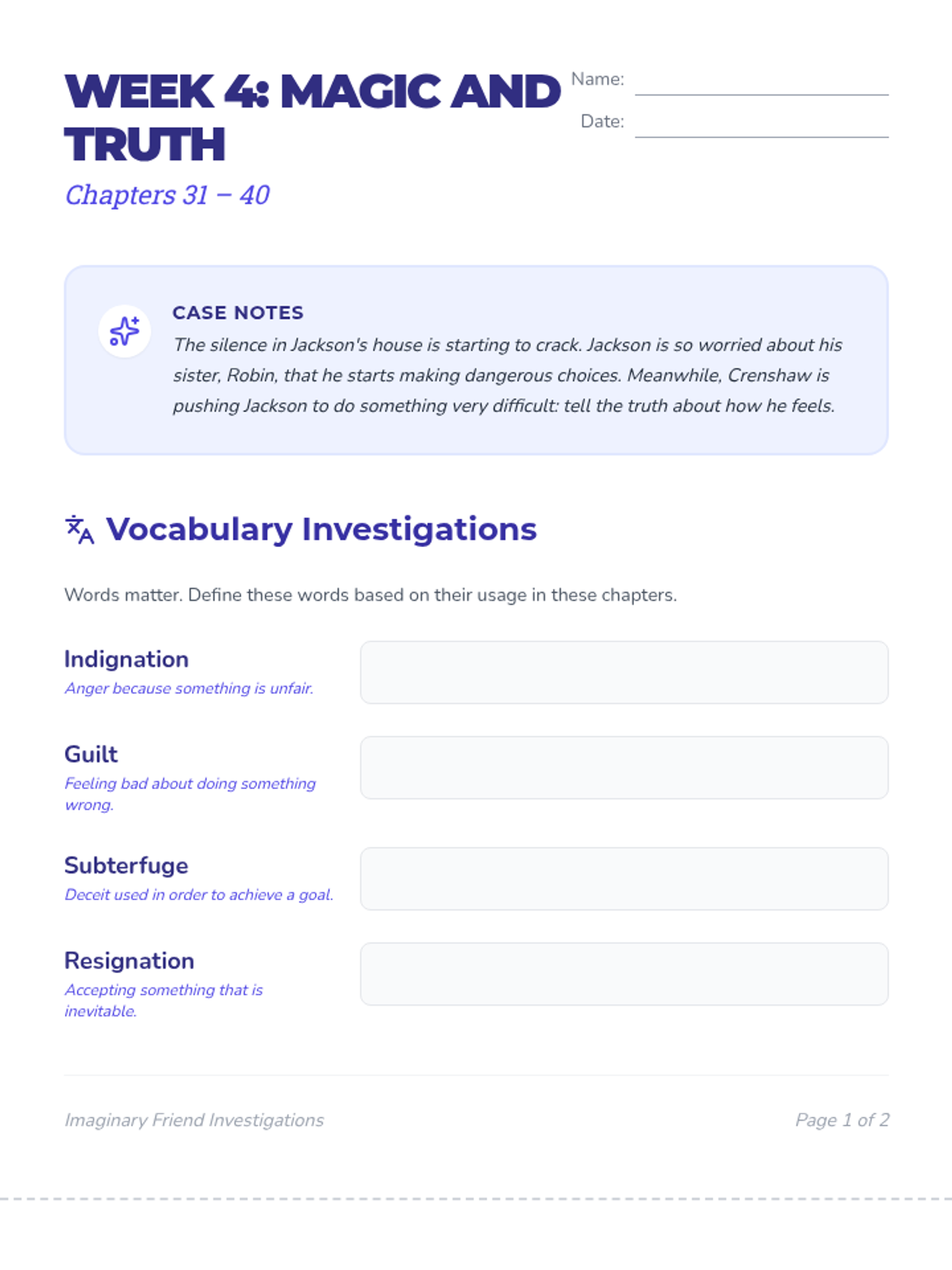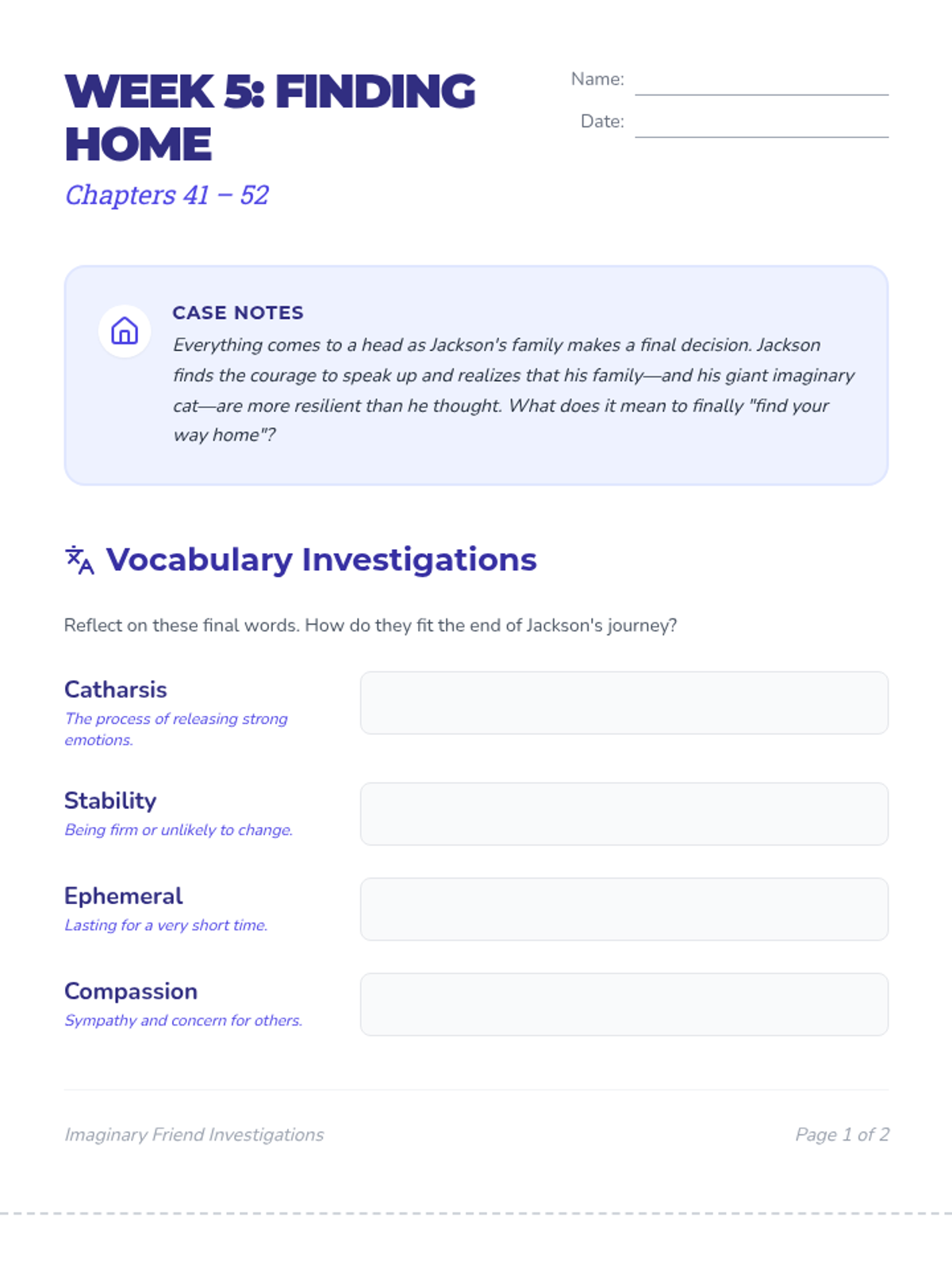 The resolution of Jackson's journey and the culminating creative project. Reading chapters 41-52.