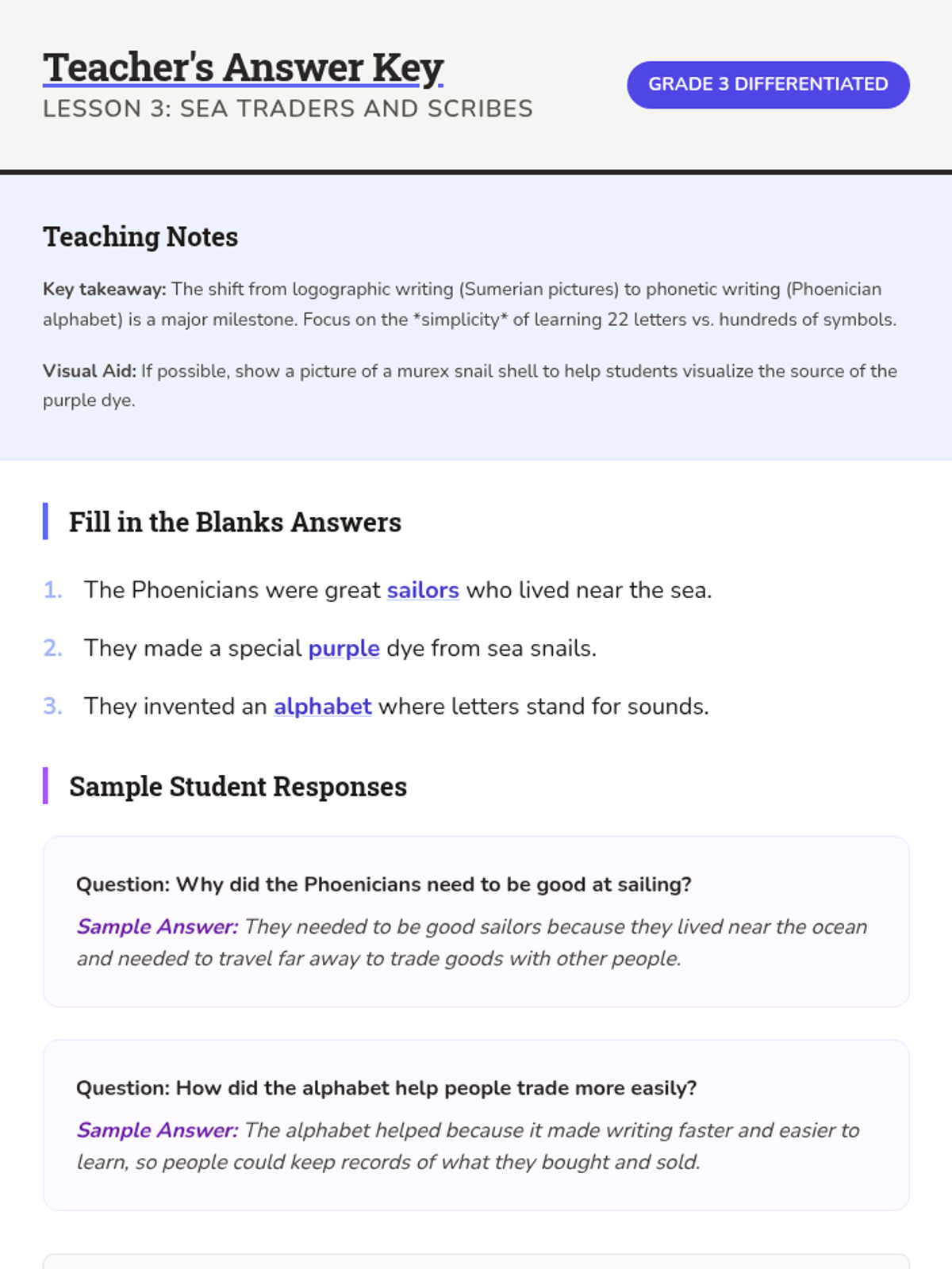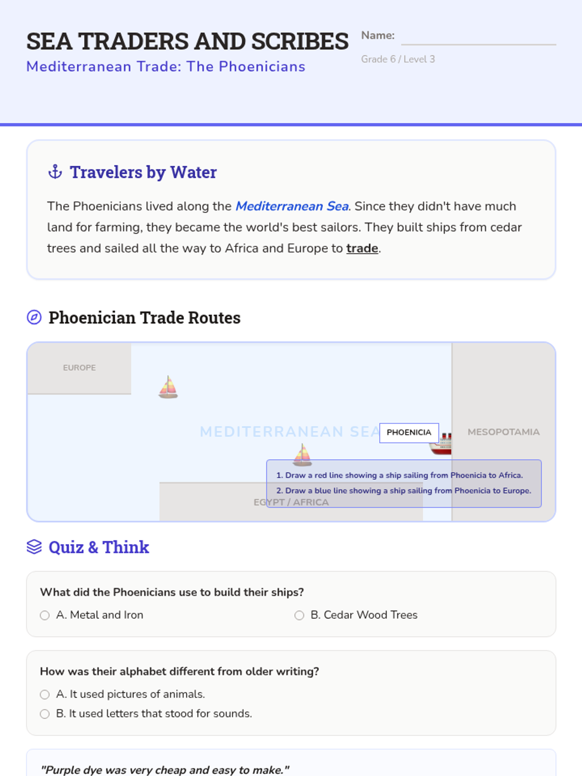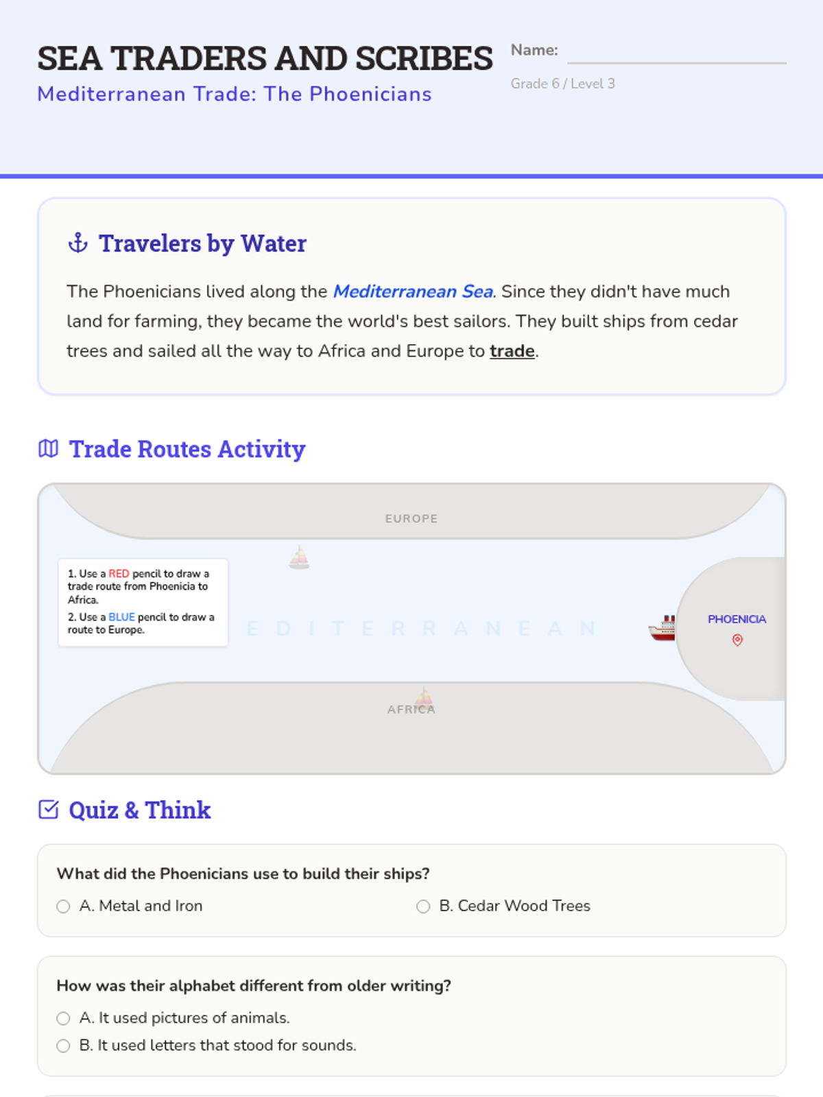 Focuses on the Phoenicians and their contributions to trade and the development of the alphabet.