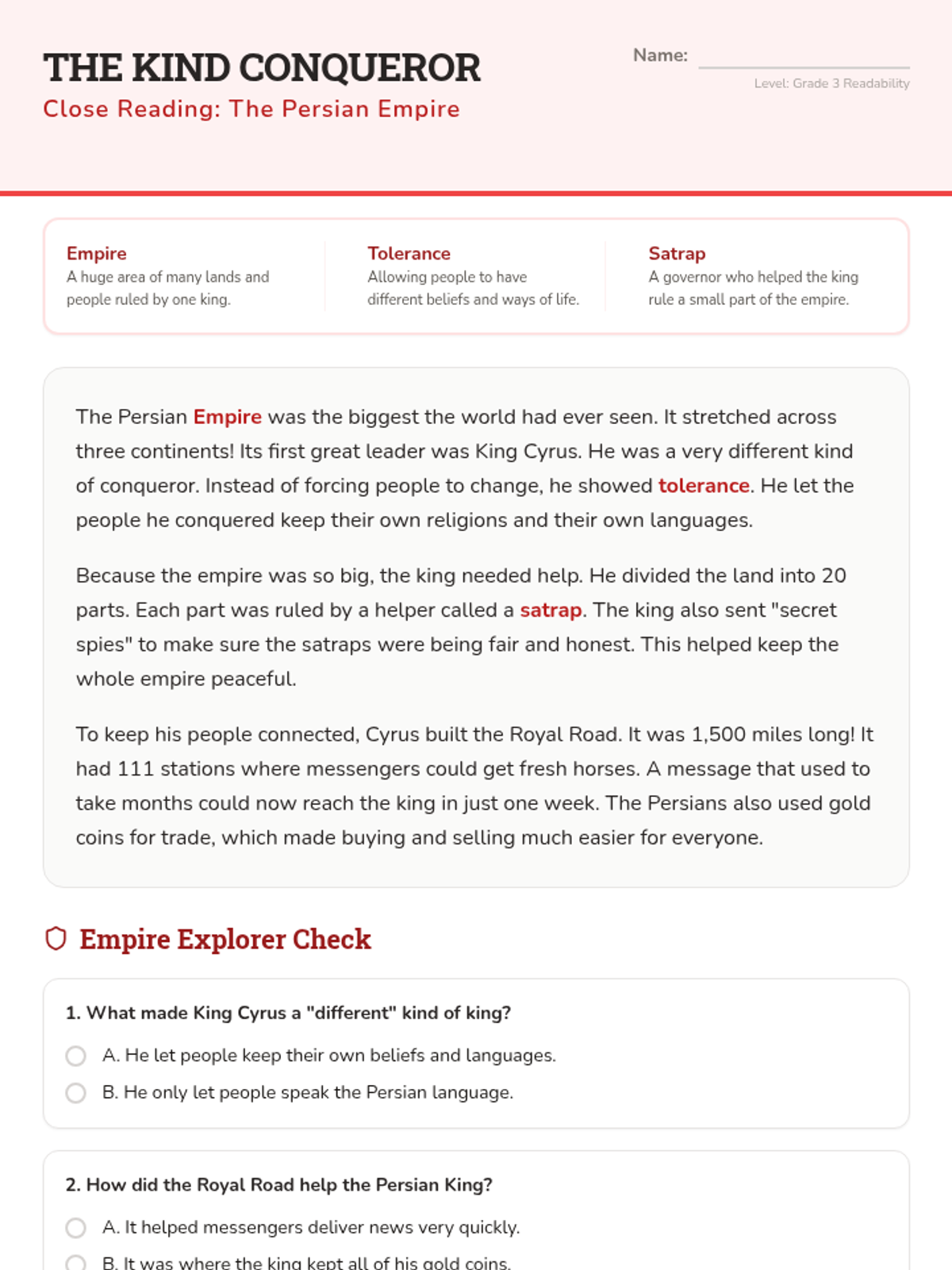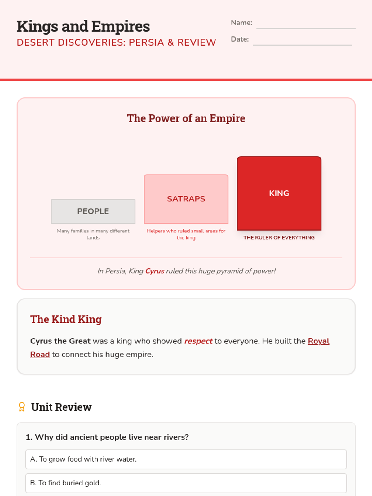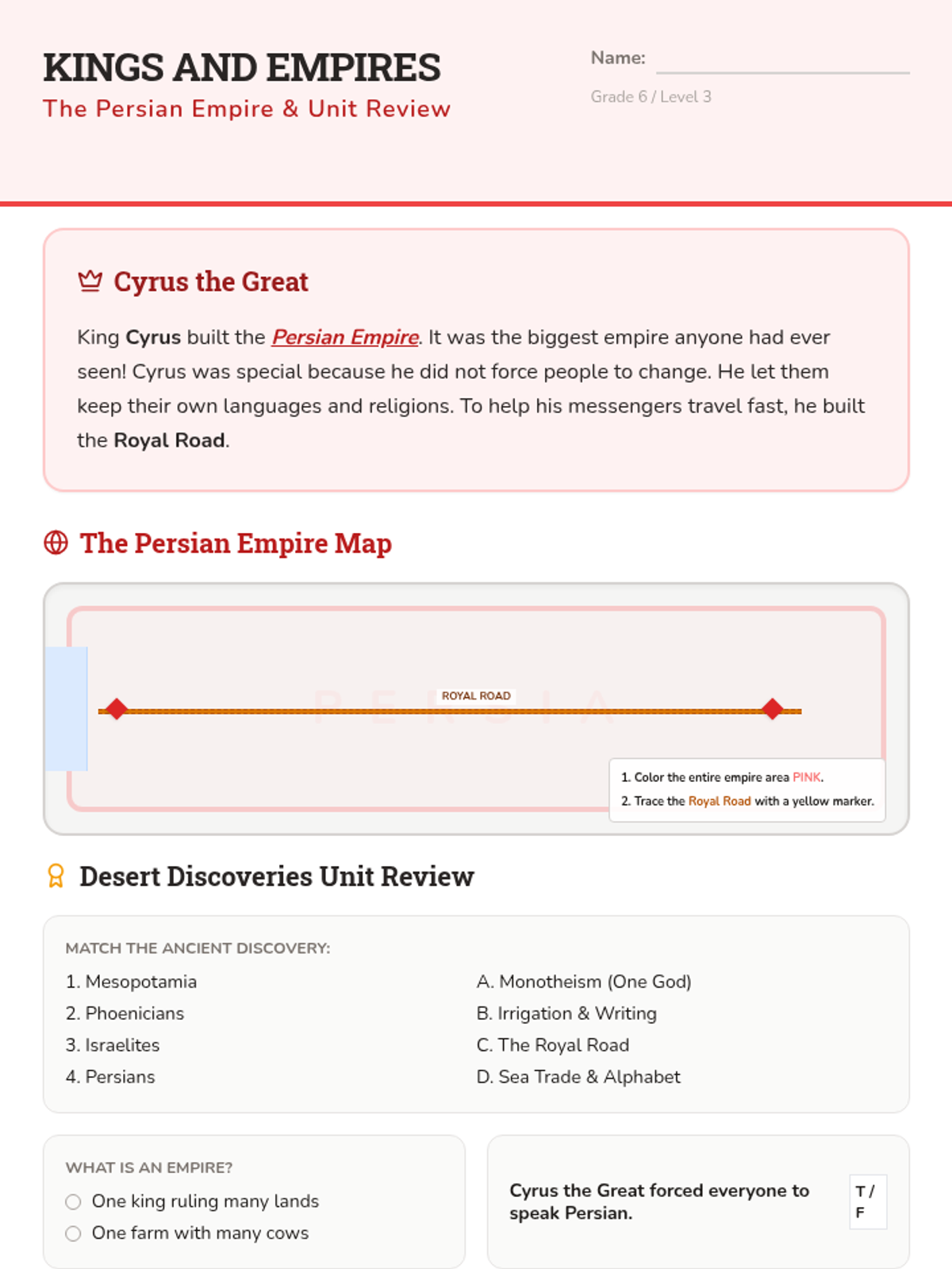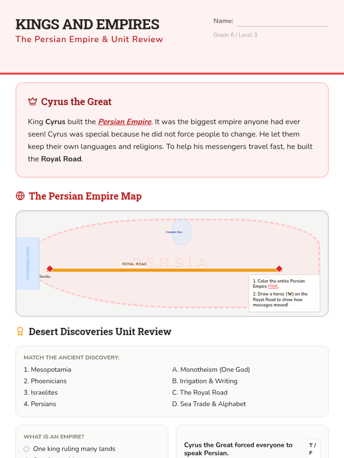 Examines the rise of the Persian Empire and its influence on the region, concluding with a unit review.