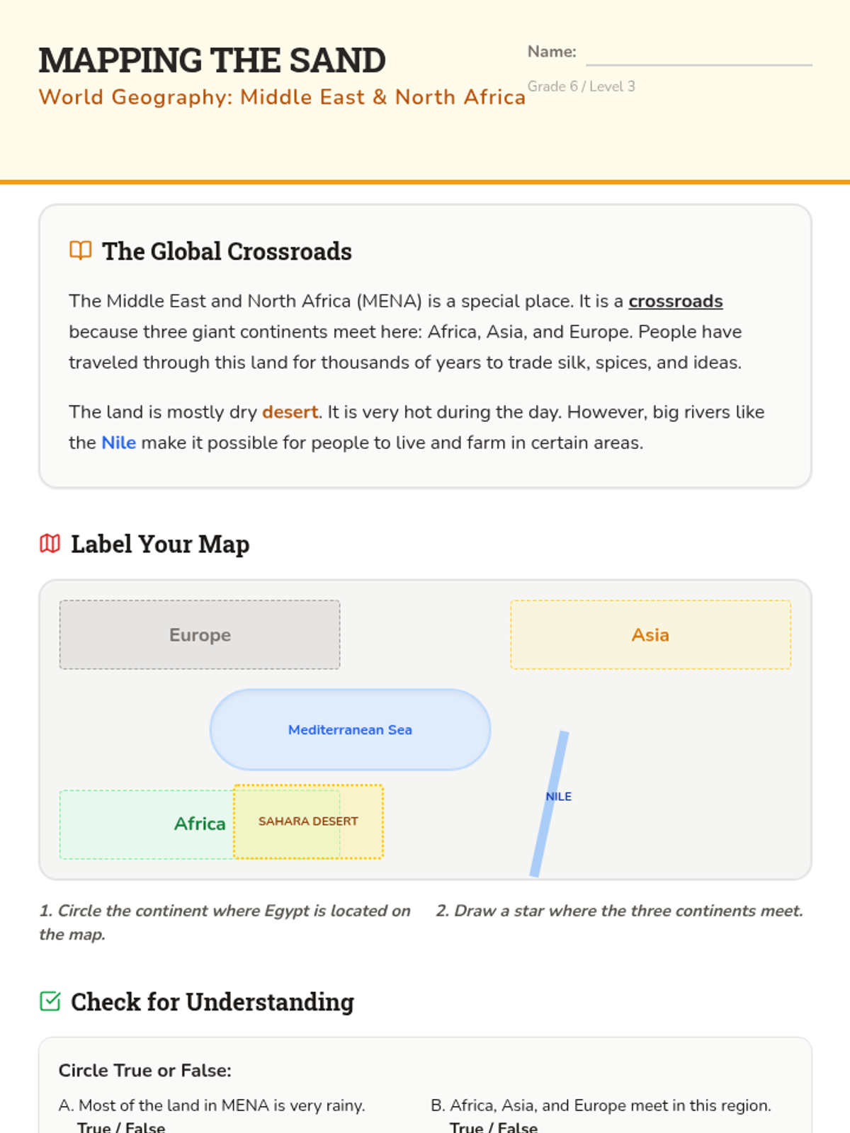 An introduction to the physical geography of the Middle East and North Africa, focusing on the impact of deserts and rivers on human settlement.