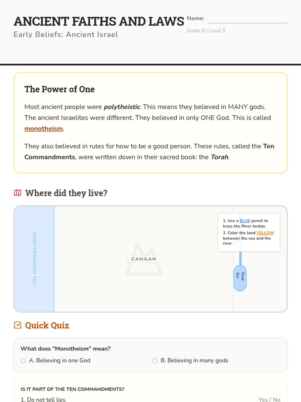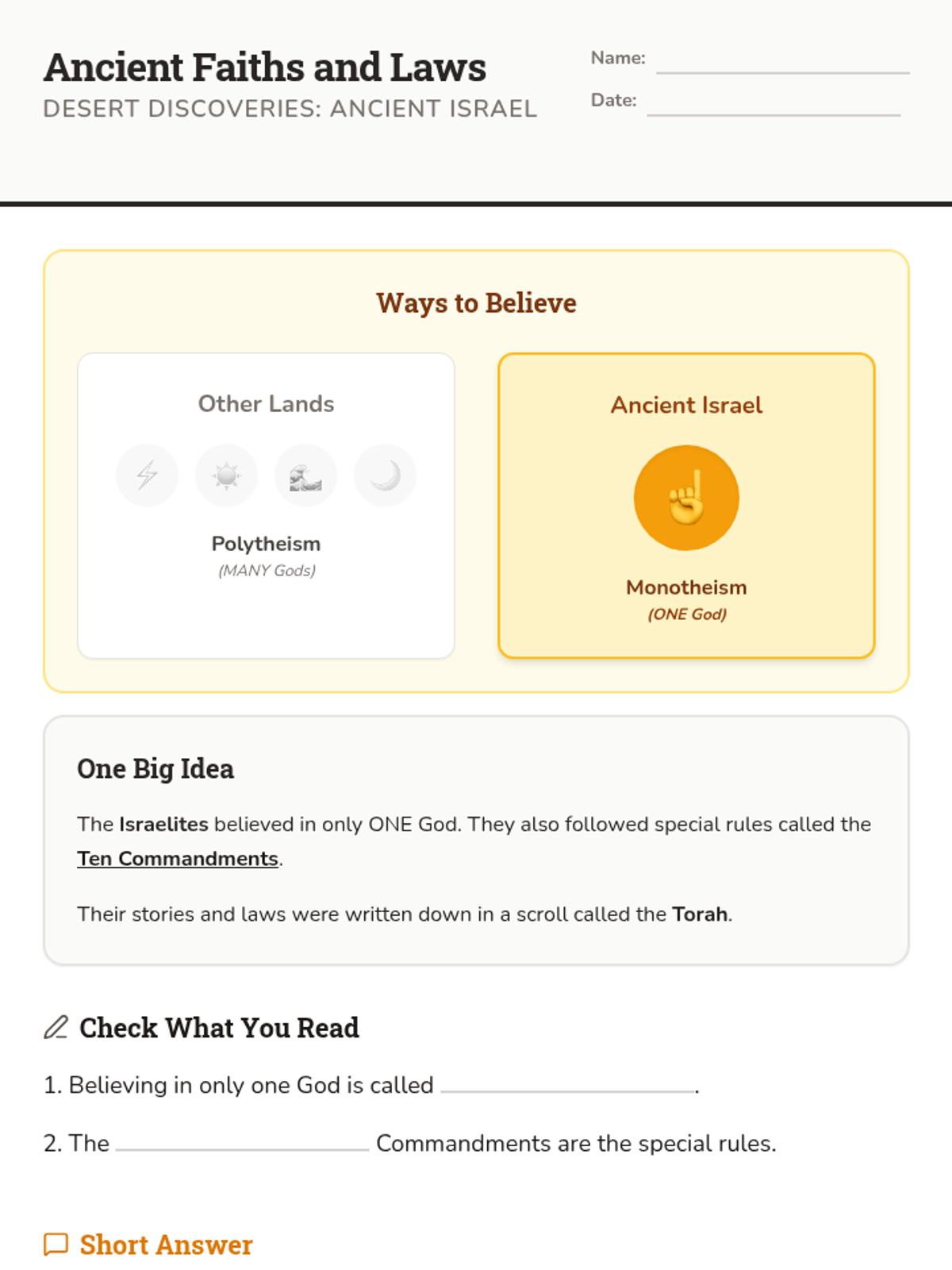 Introduces the ancient Israelites, their beliefs, and the concept of monotheism.