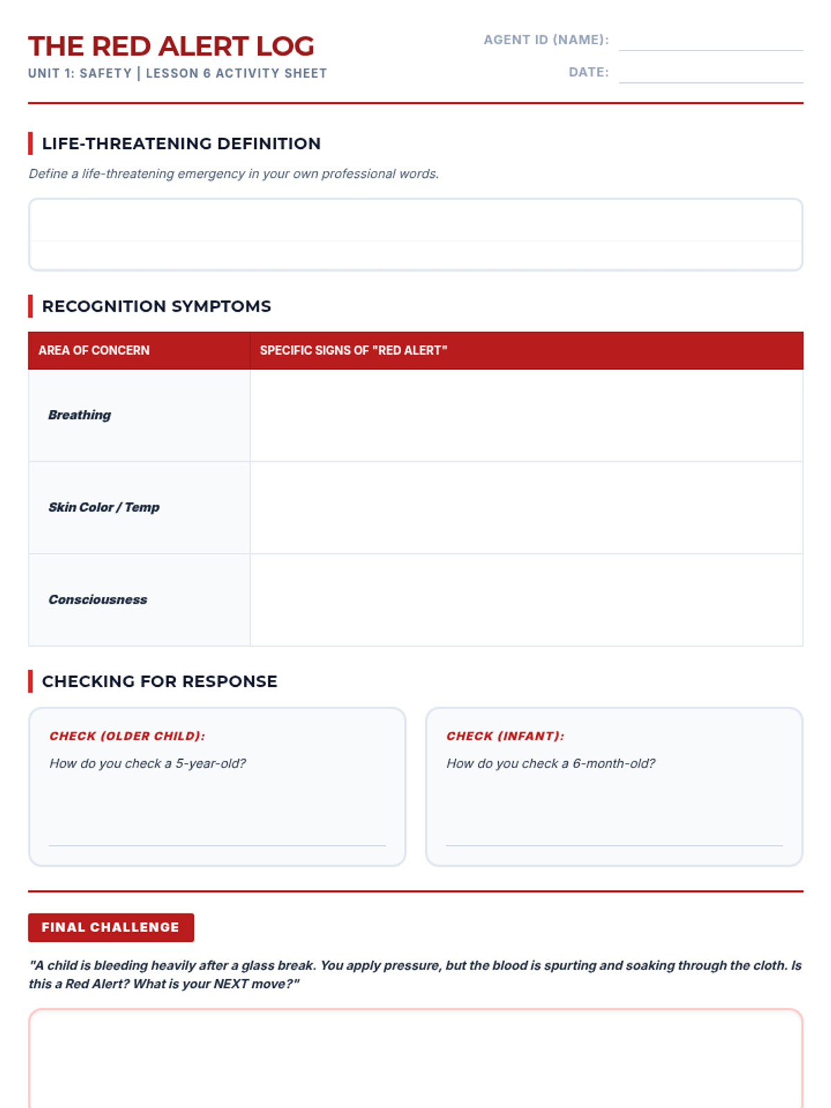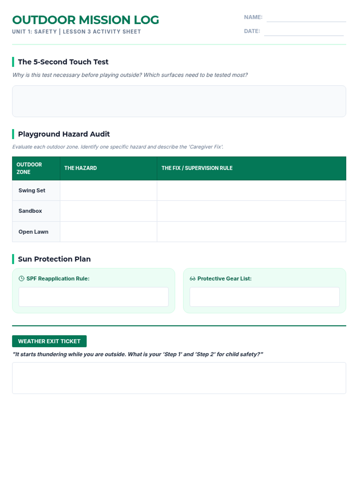 Students learn to identify common safety hazards in indoor and outdoor childcare environments and develop comprehensive safety plans to keep children safe.