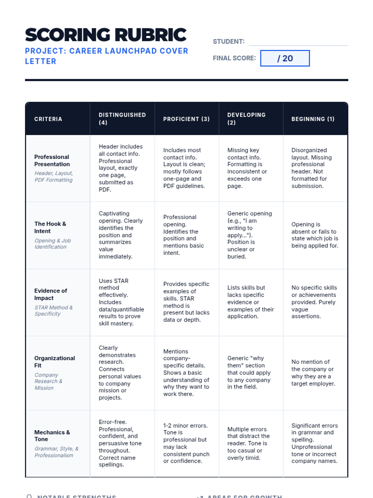 Students will research a dream career and draft a professional cover letter using a guided, step-by-step approach. The lesson covers the structural components of a cover letter and professional tone.