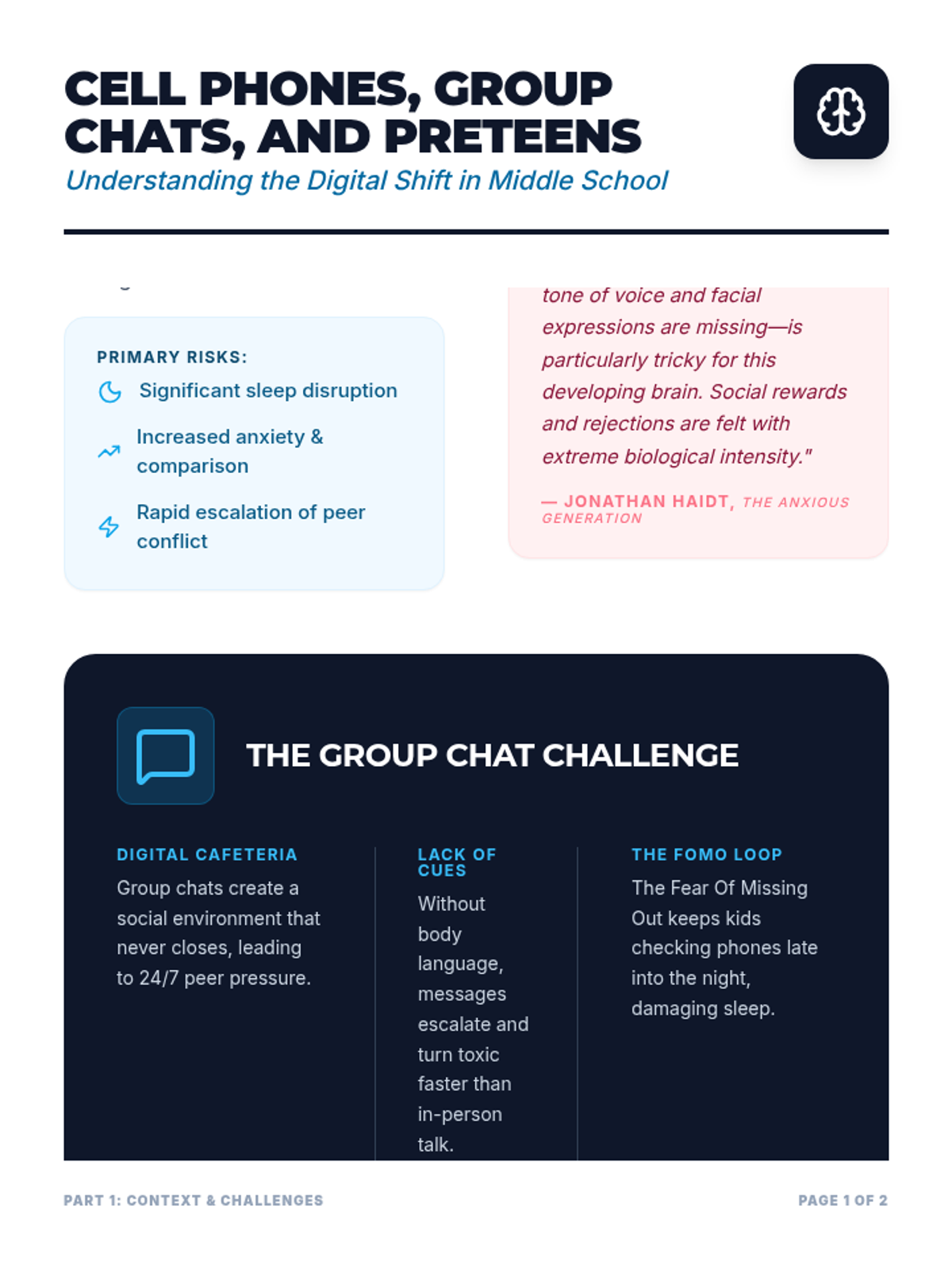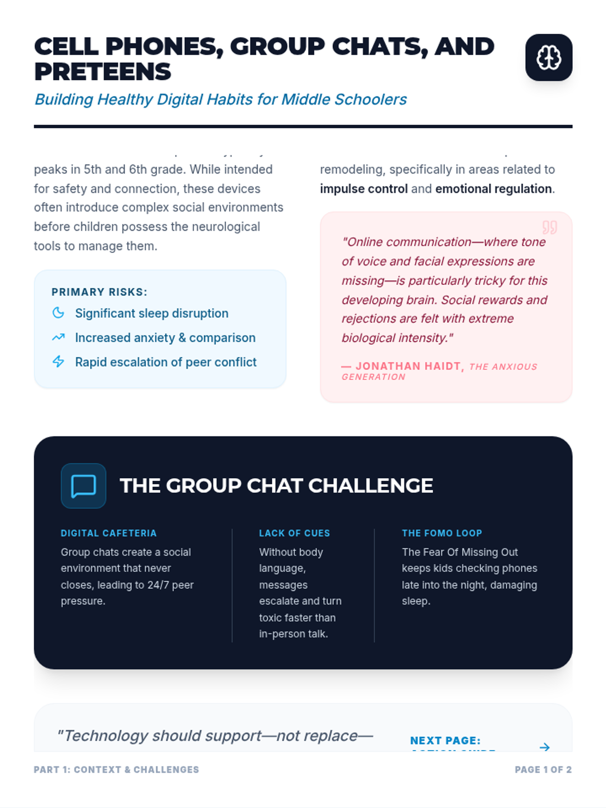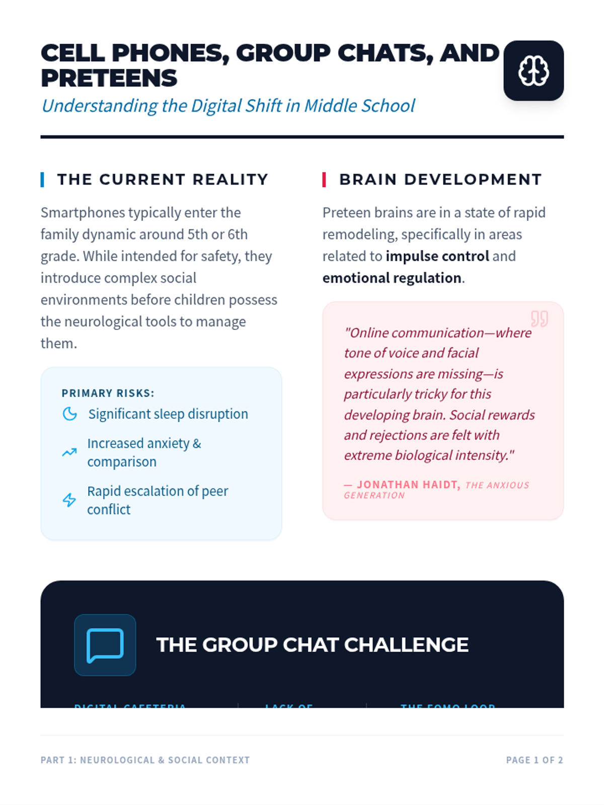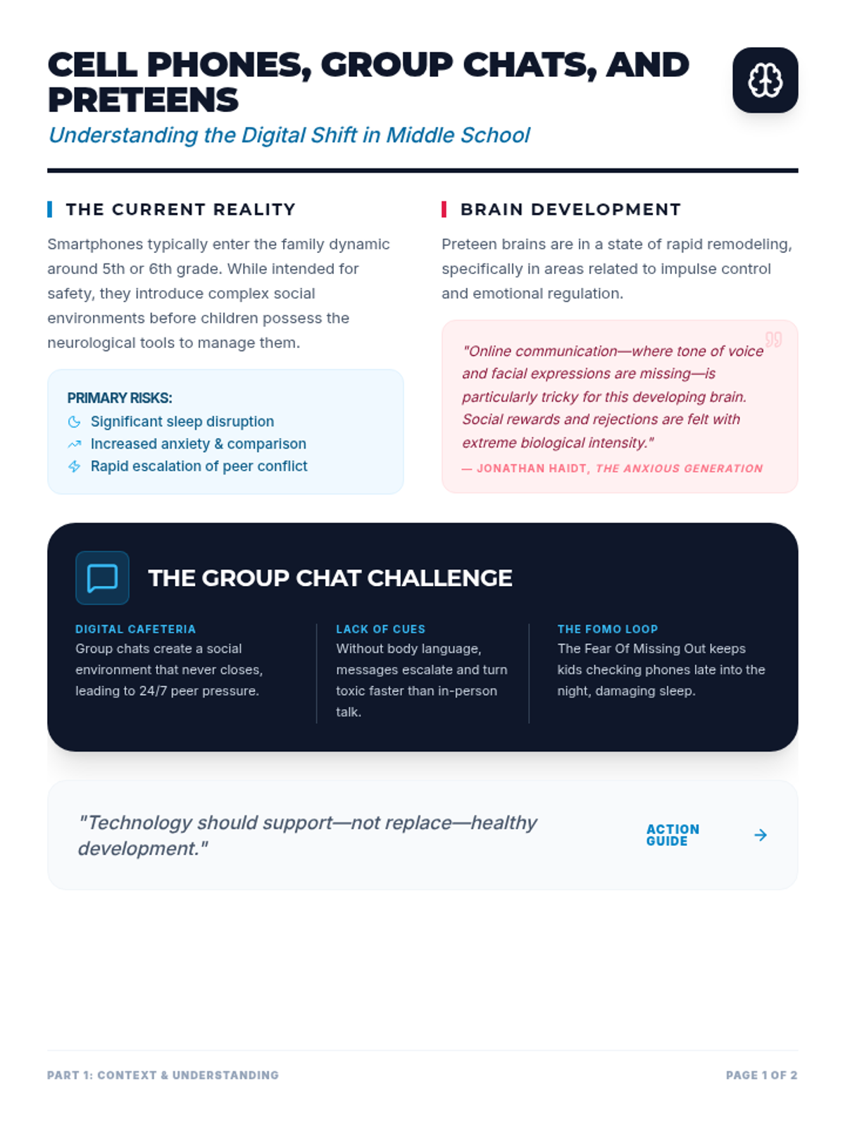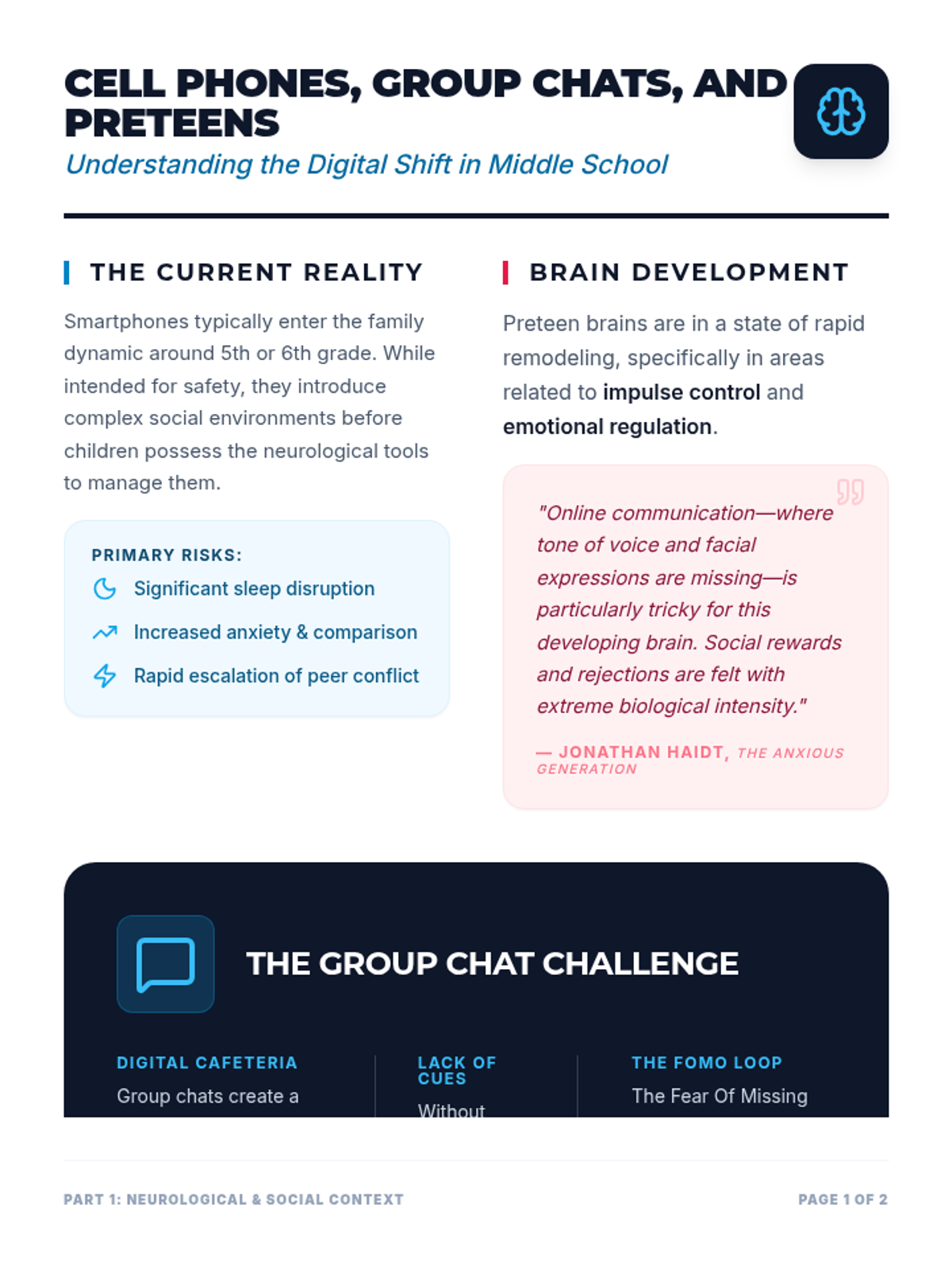 A comprehensive guide for parents of preteens focused on navigating the challenges of cell phones, group chats, and digital social life while fostering healthy development.
