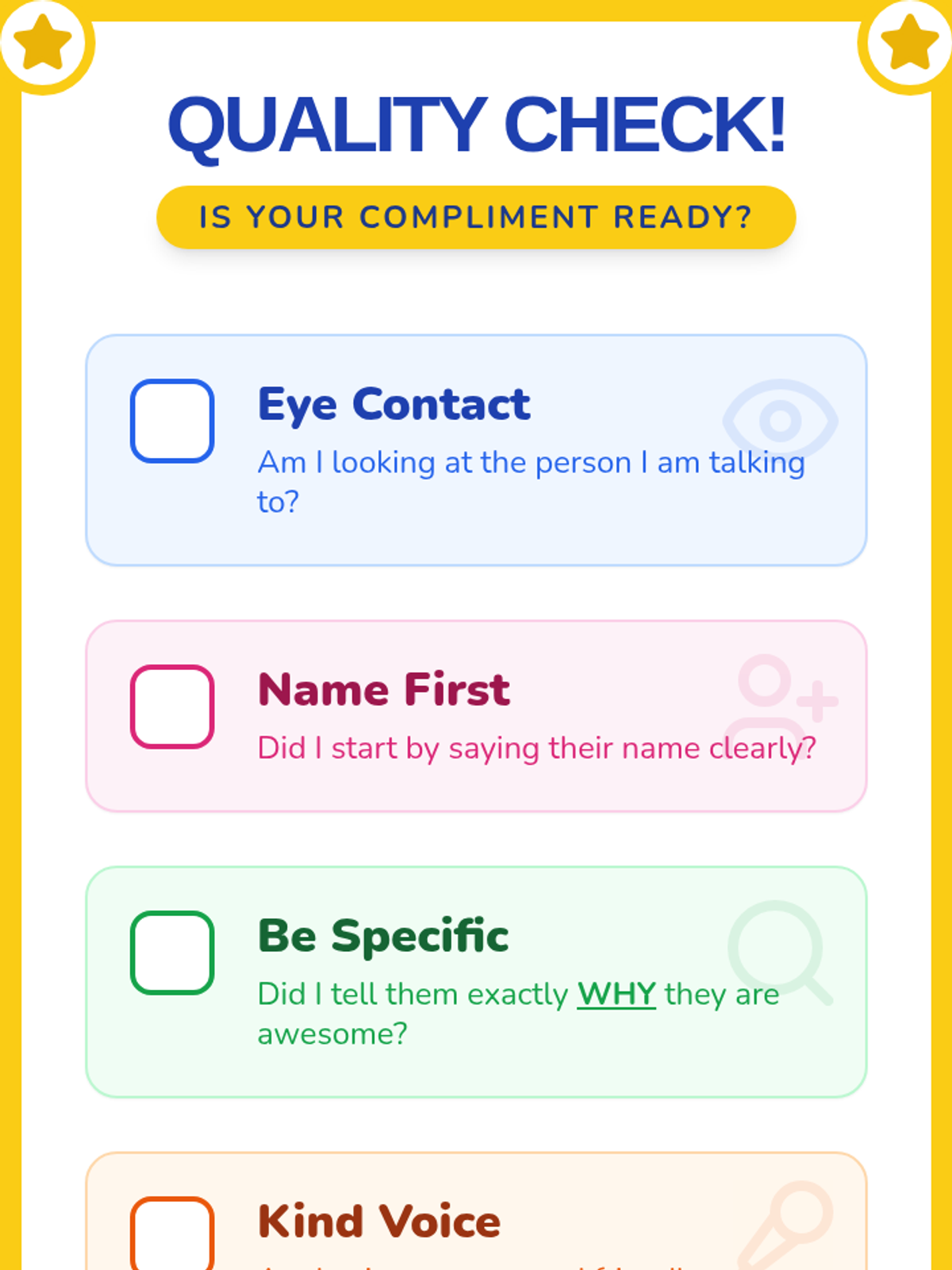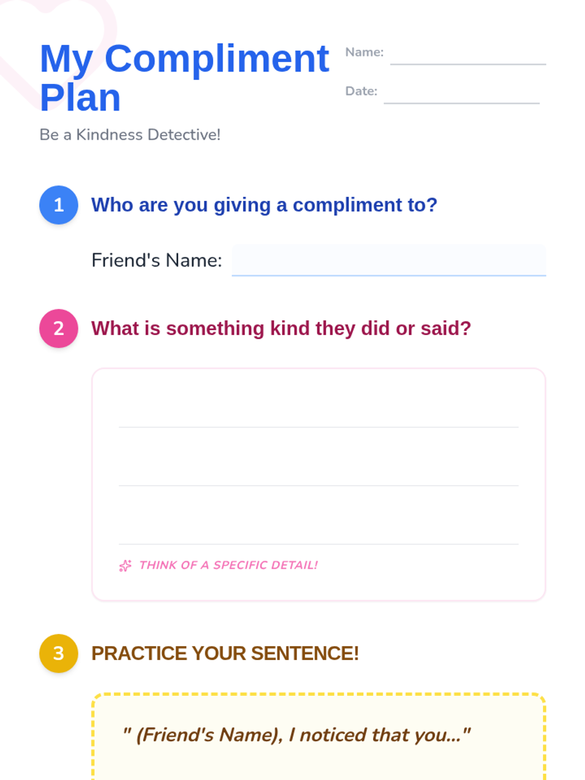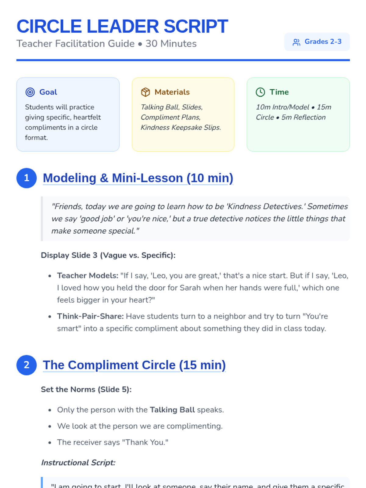 A social-emotional learning lesson focused on teaching 2nd graders how to give and receive specific, meaningful compliments to build a positive classroom culture.