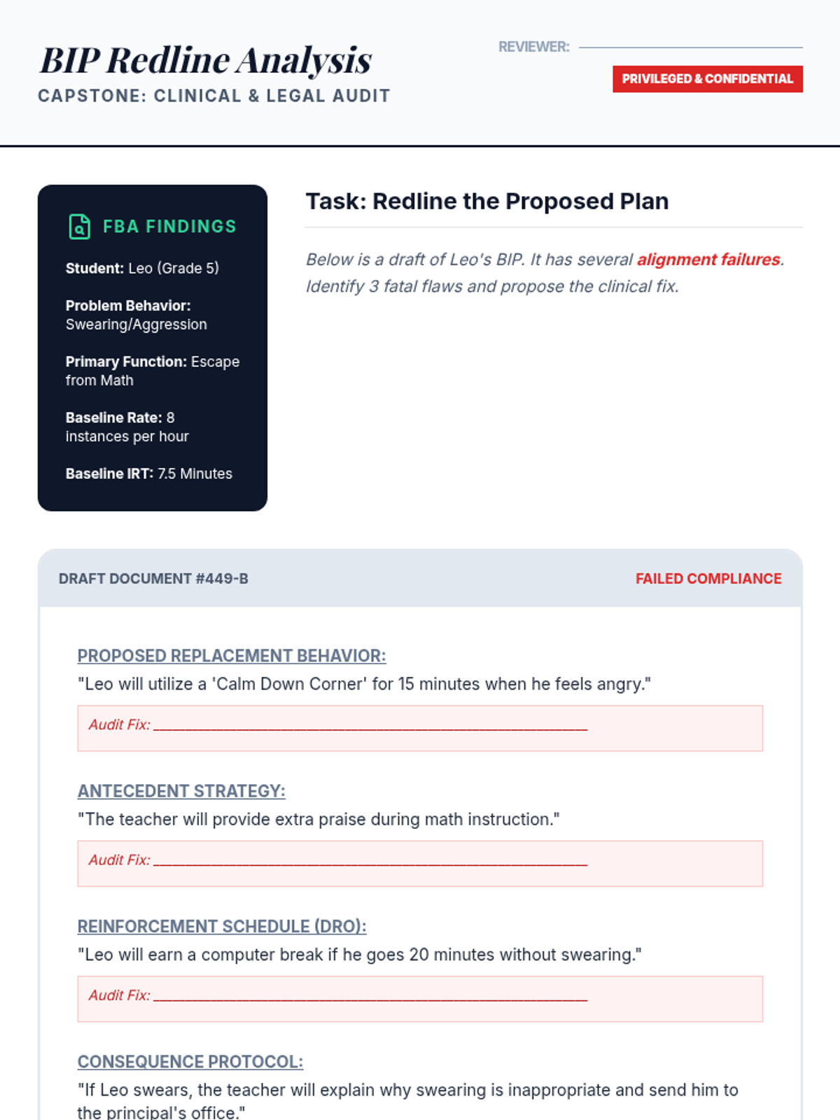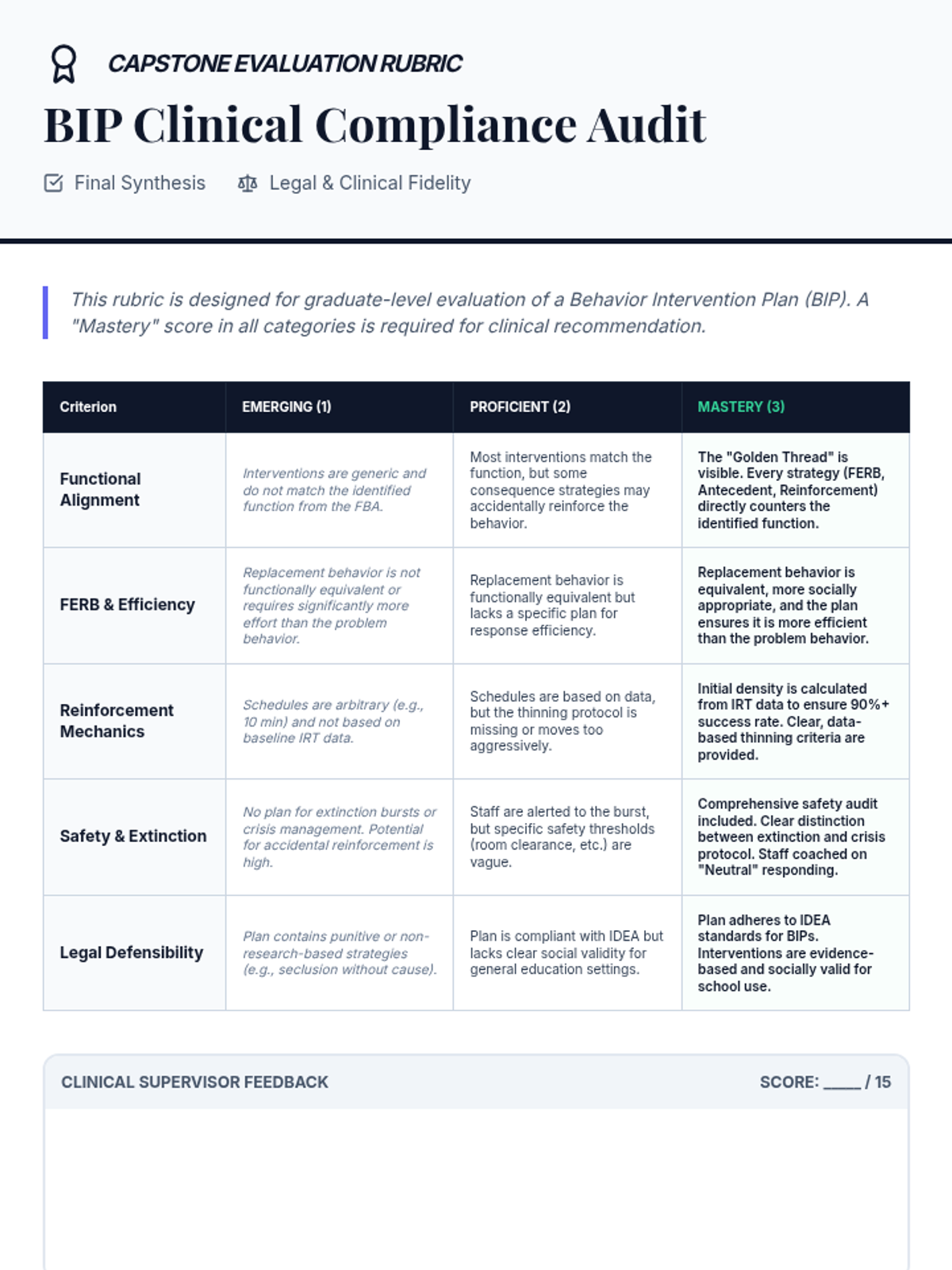 The capstone lesson where students synthesize all components into a comprehensive, legally defensible, and clinically aligned Behavior Intervention Plan.