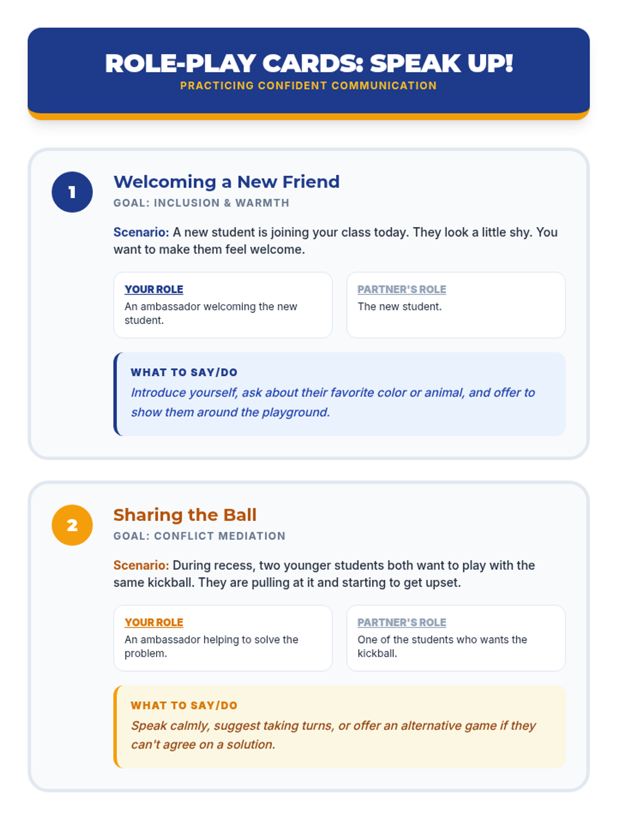 The final session focuses on speaking clearly and confidently to represent the school and help peers.