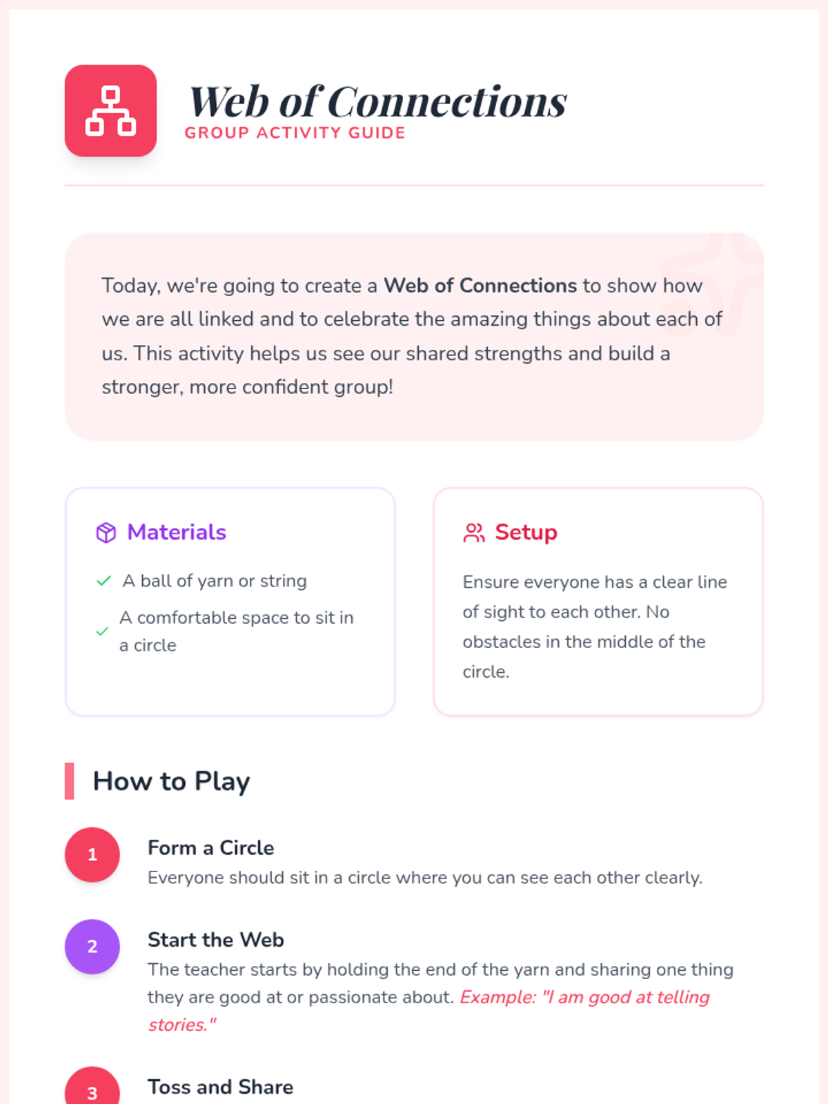 Practical team-based synergy challenges to apply collaborative problem-solving skills.