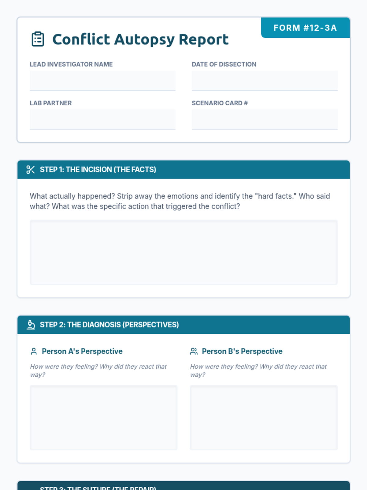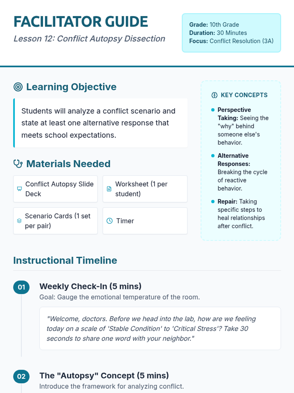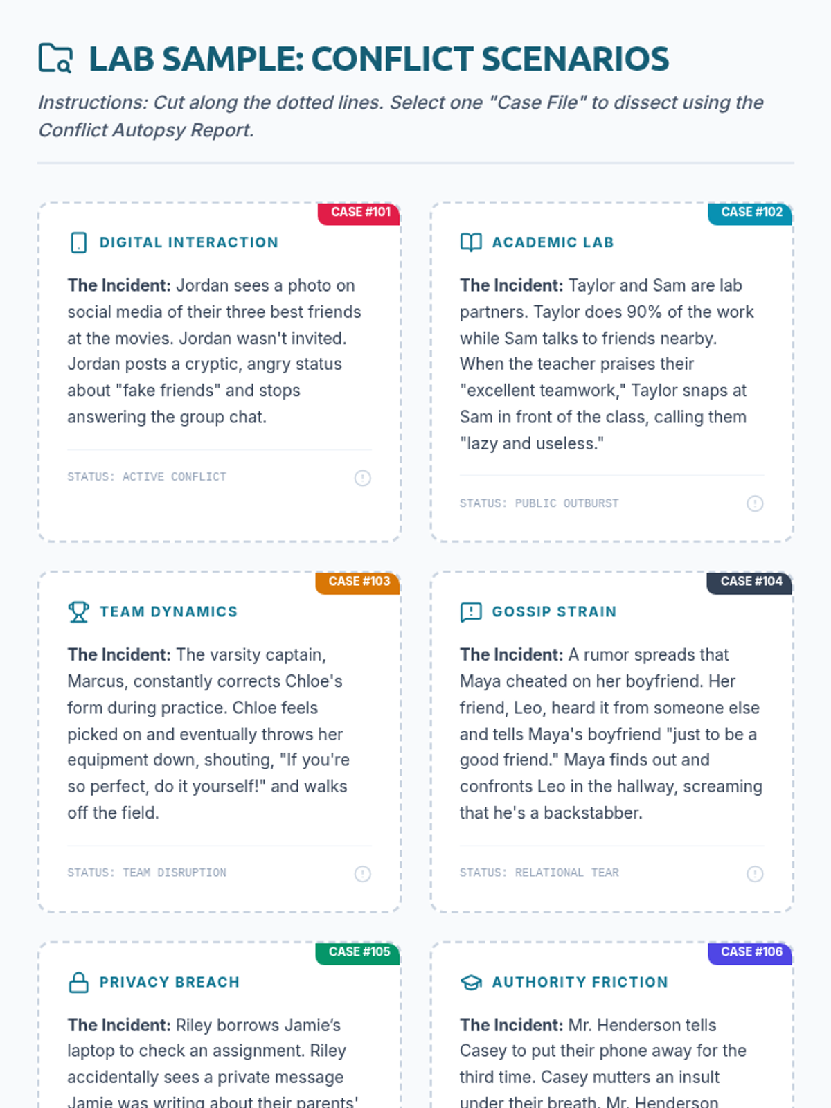 Students will perform a 'Conflict Autopsy' to dissect disagreements, understand perspectives, and identify healthier alternative responses that align with school expectations.