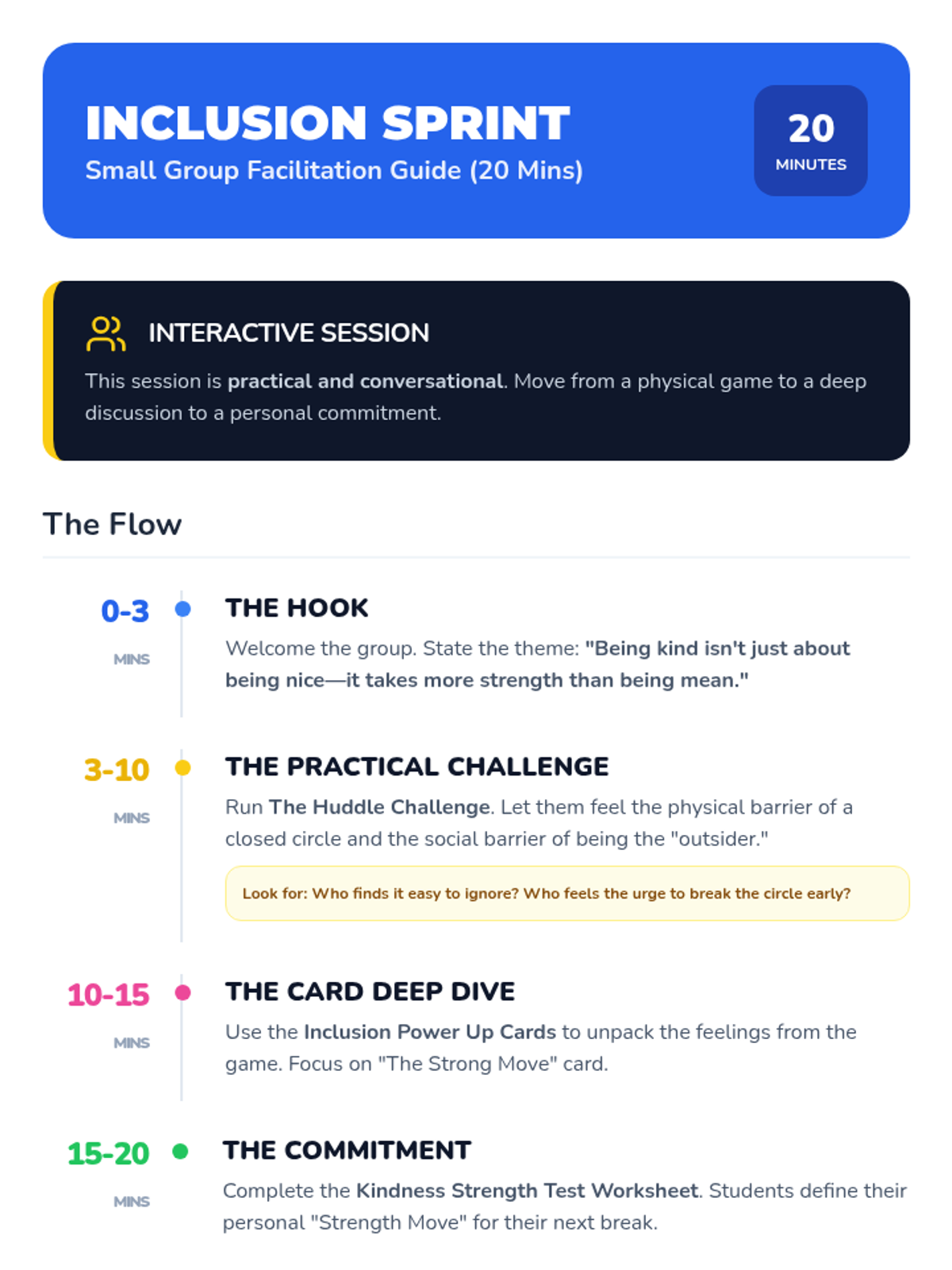 A high-impact 20-minute session focusing on the social and emotional effects of exclusion in games, framing kindness and inclusion as a form of personal strength.