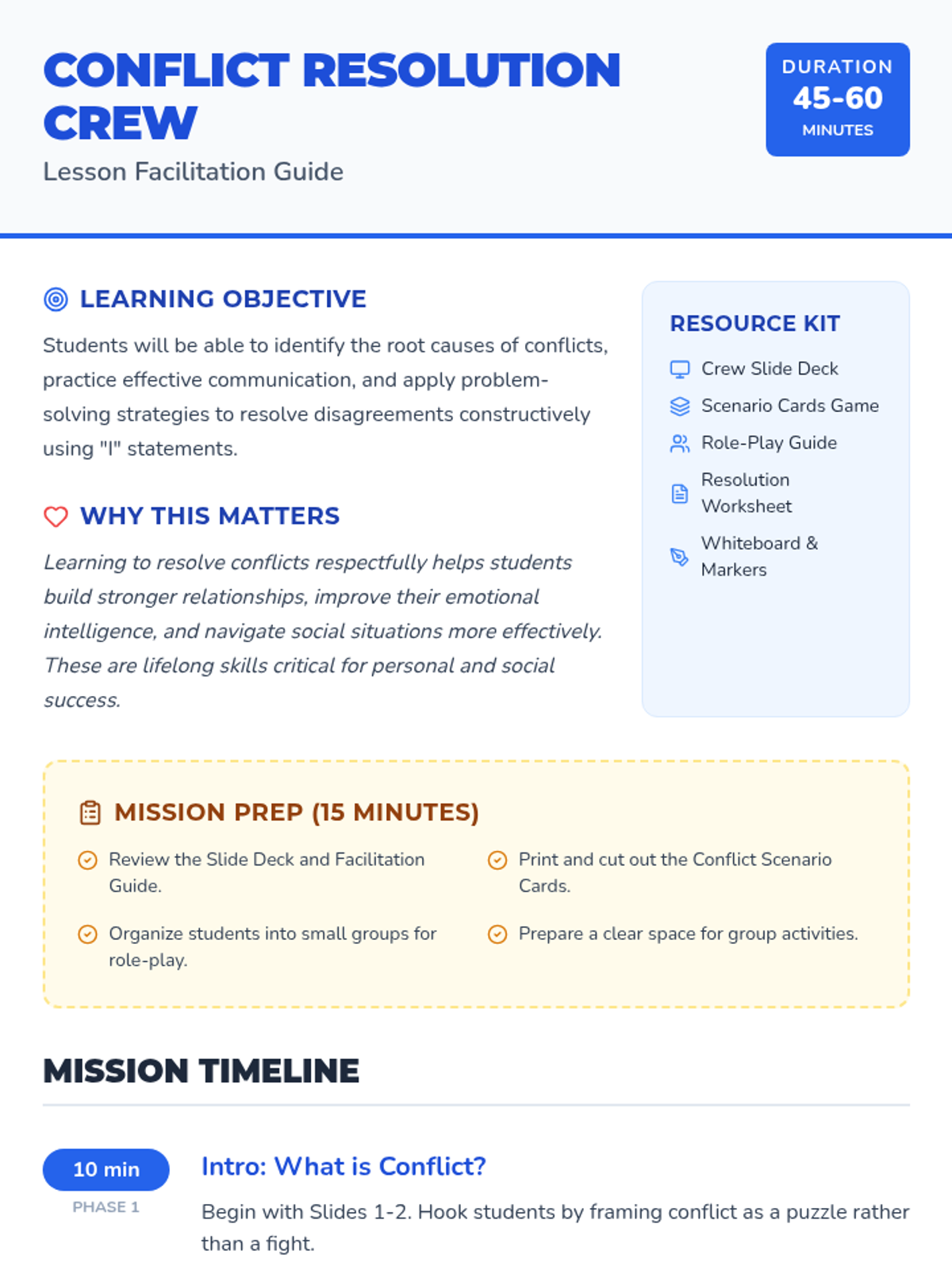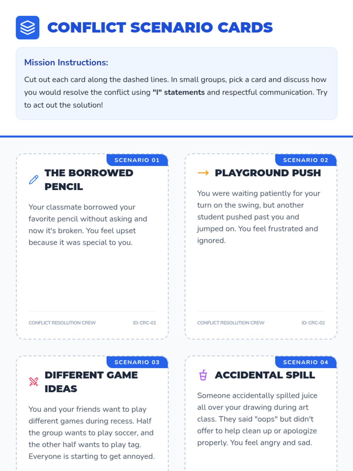 This resource empowers students to approach conflicts constructively, developing essential problem-solving and negotiation skills through collaborative activities and "I" statements.