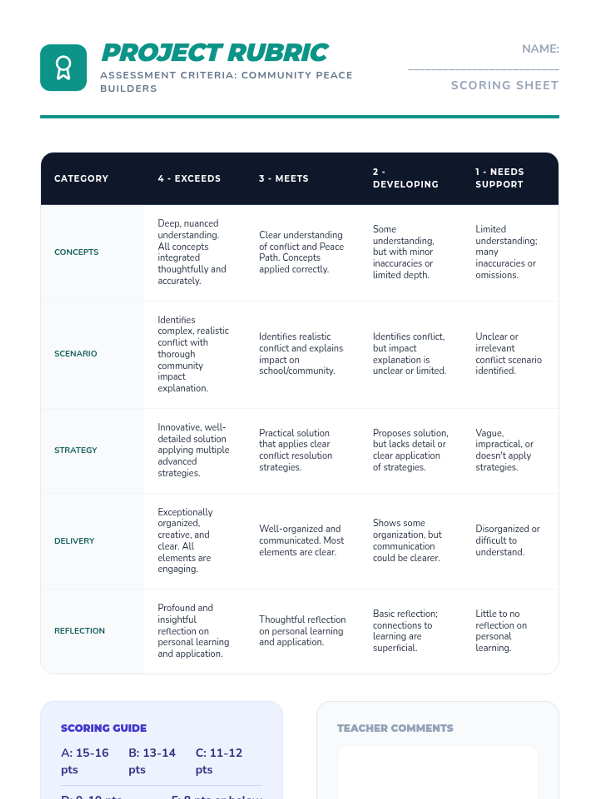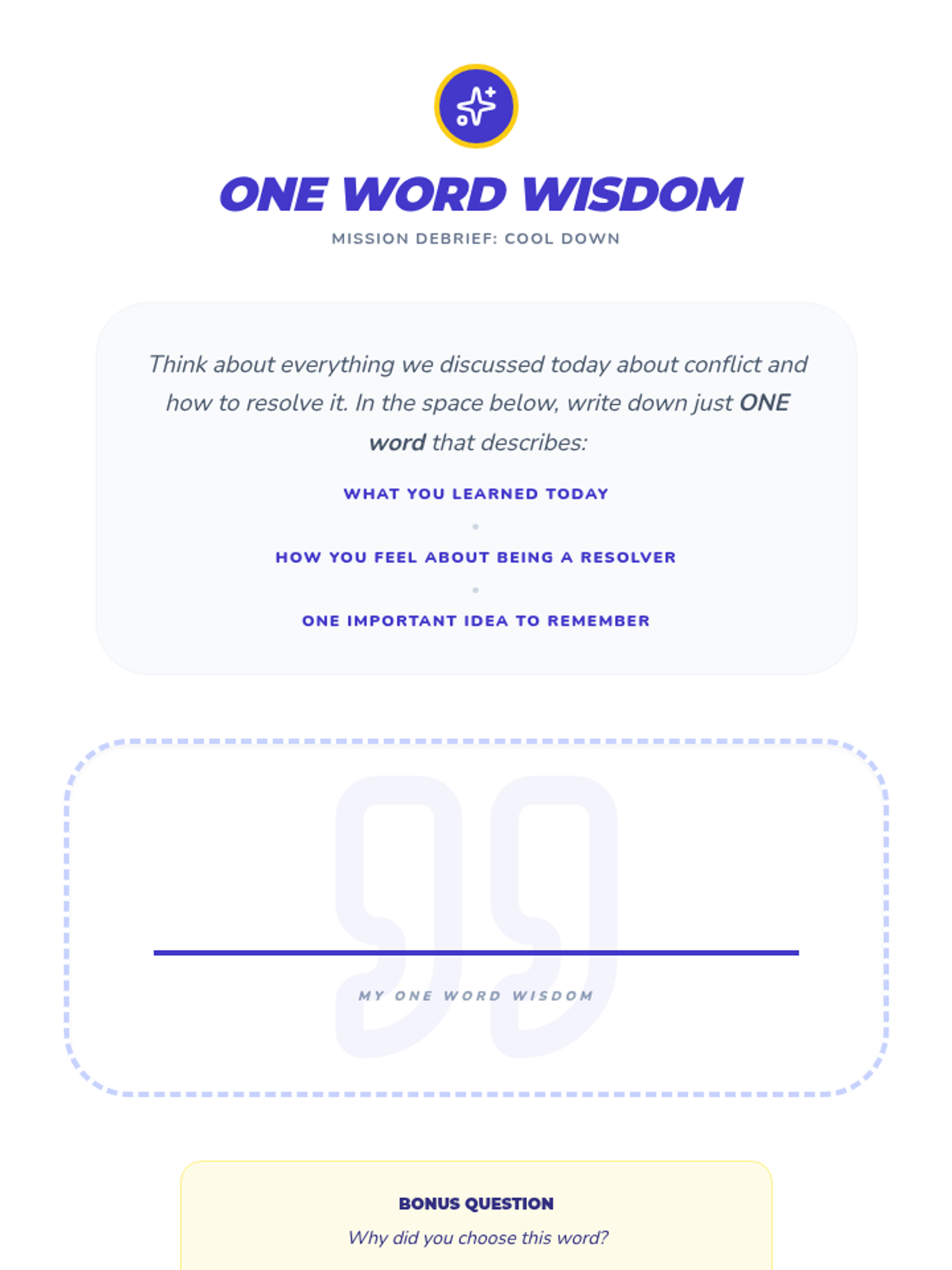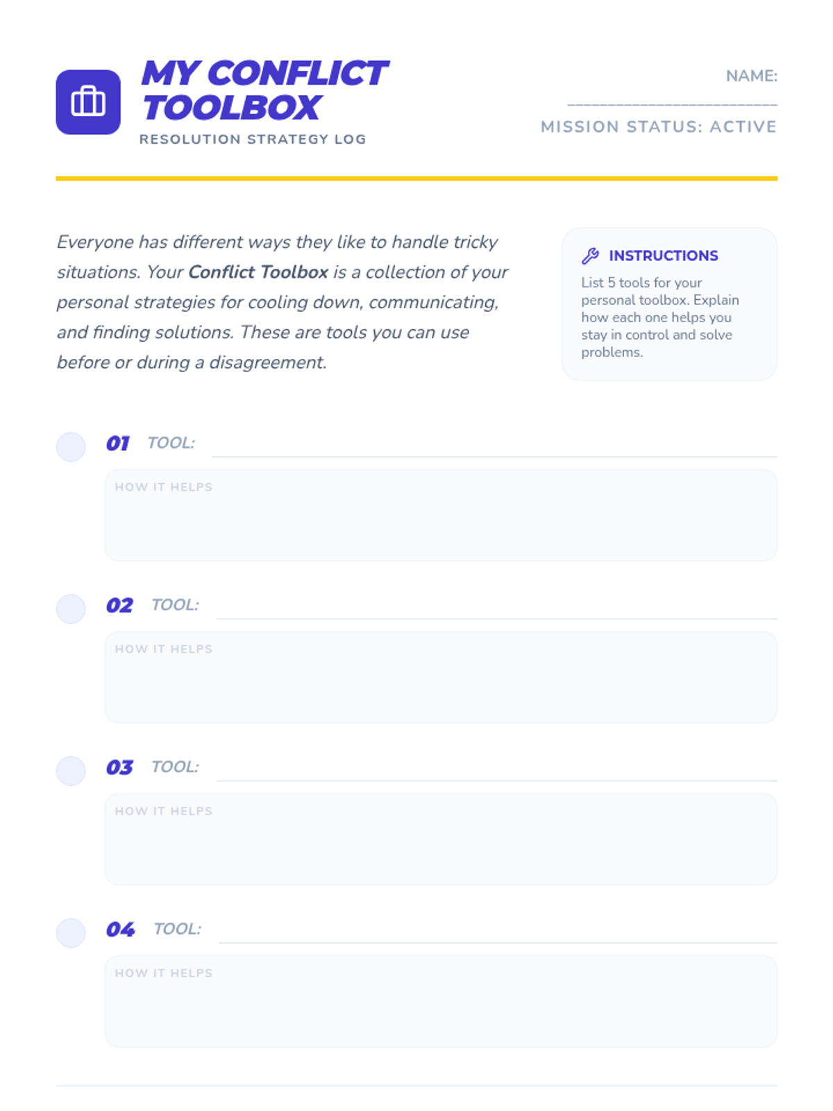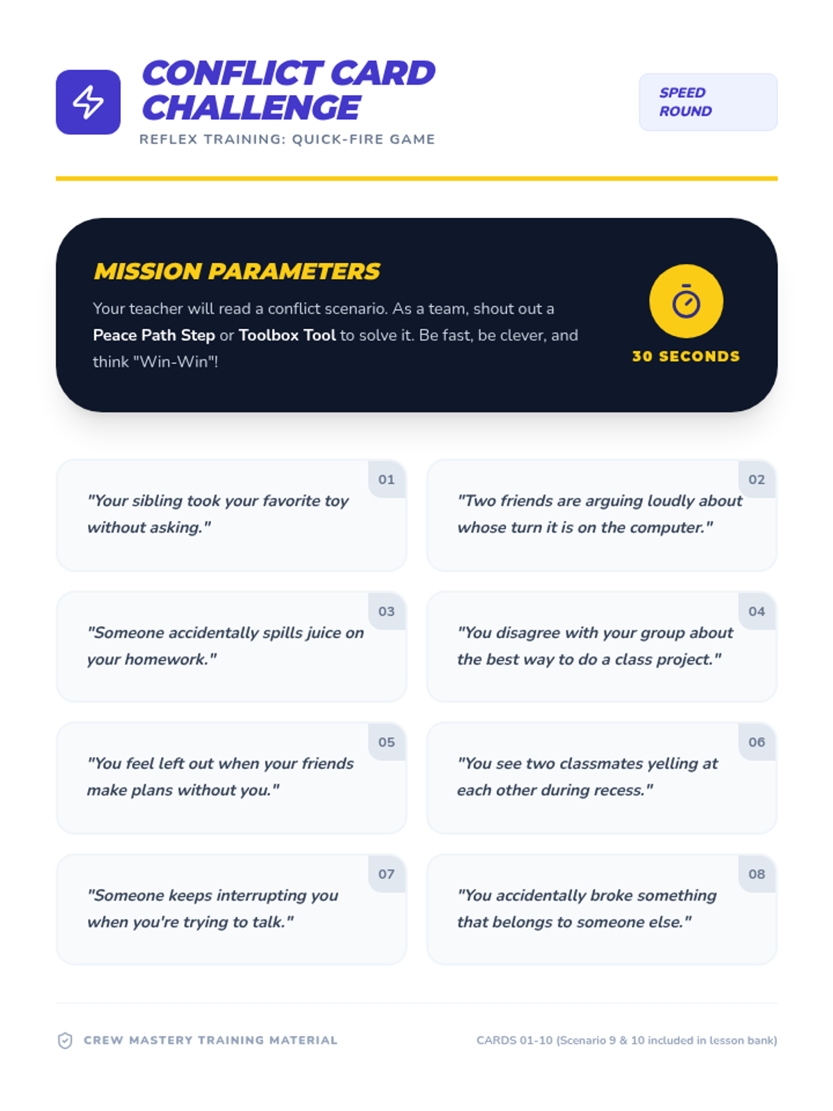 A comprehensive one-hour lesson for 5th and 6th graders that teaches the 'Peace Path' framework and provides a 'Conflict Toolbox' of practical strategies for resolving disagreements peacefully and effectively.