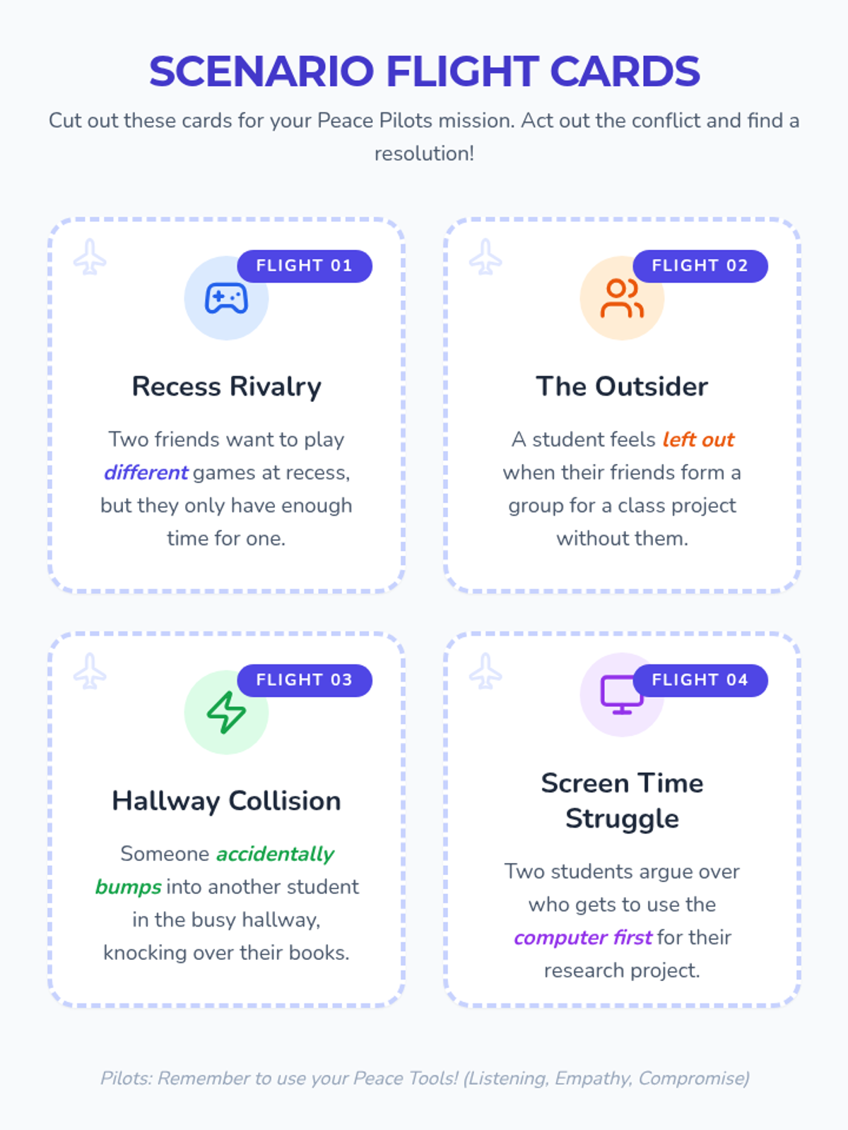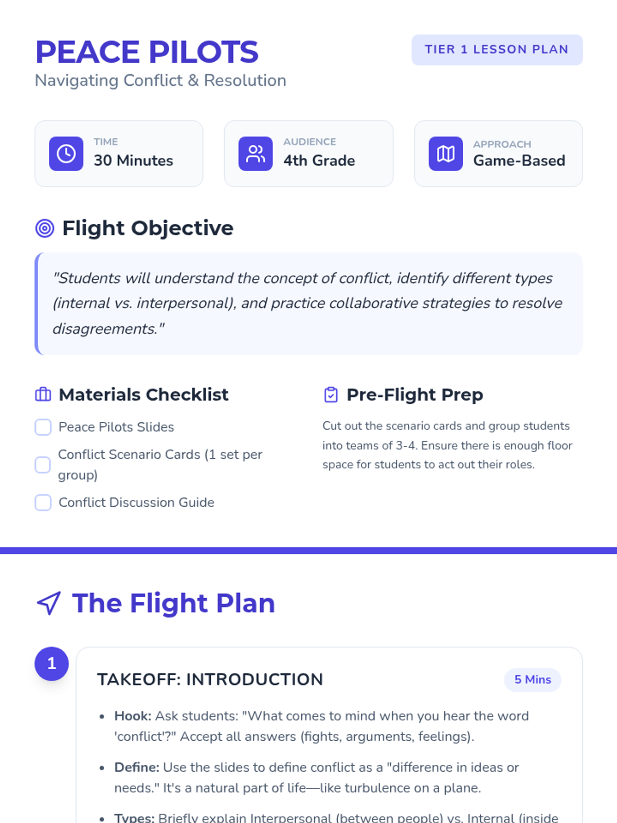 A game-based lesson where 4th graders learn to navigate and resolve conflicts through role-play and reflection. Students practice communication and empathy while tackling real-world scenarios.