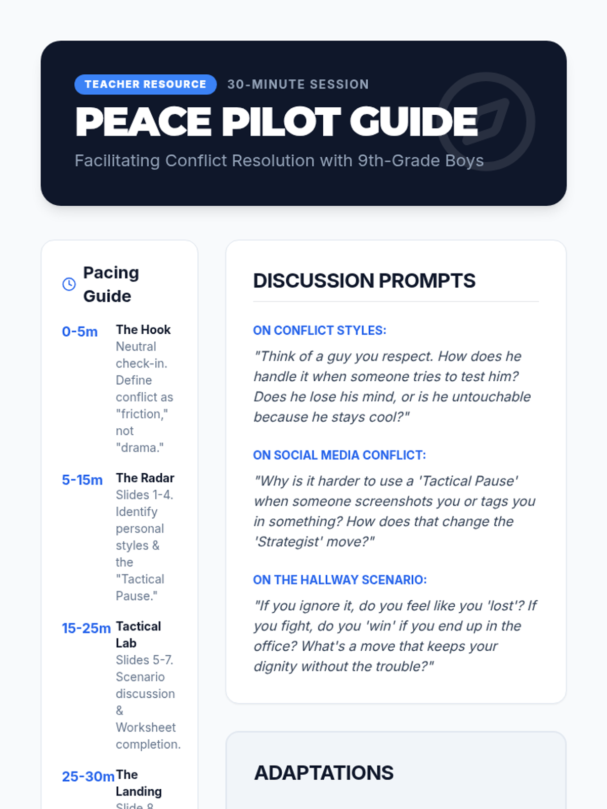 A 30-minute counseling session focused on helping a 9th-grade boy identify and practice healthy conflict resolution strategies through scenarios and discussion.