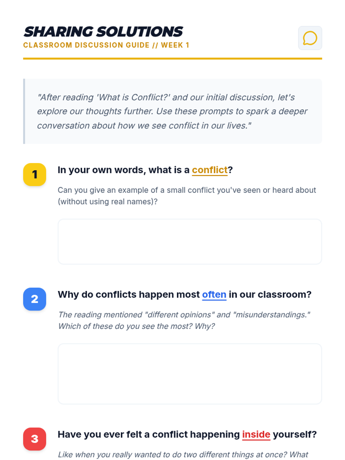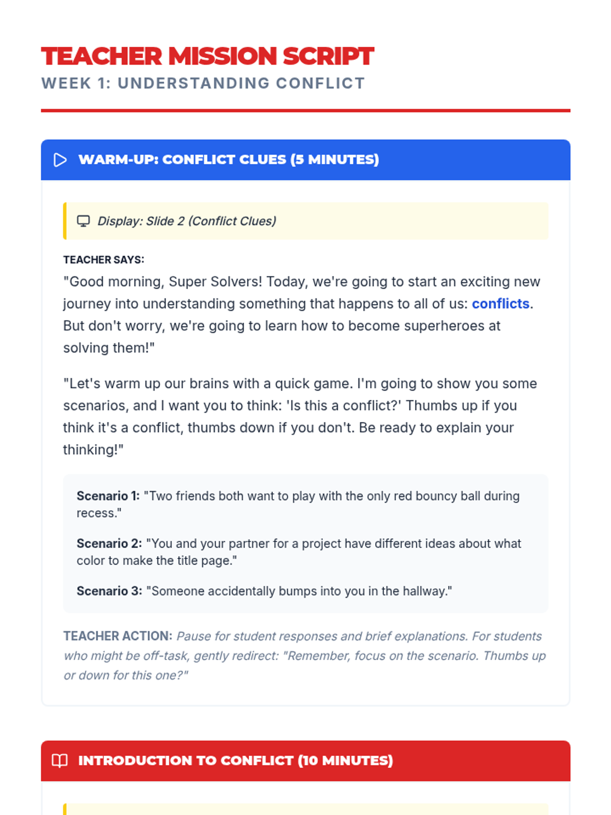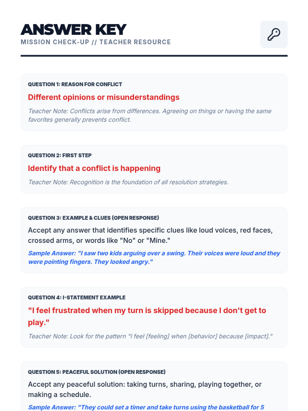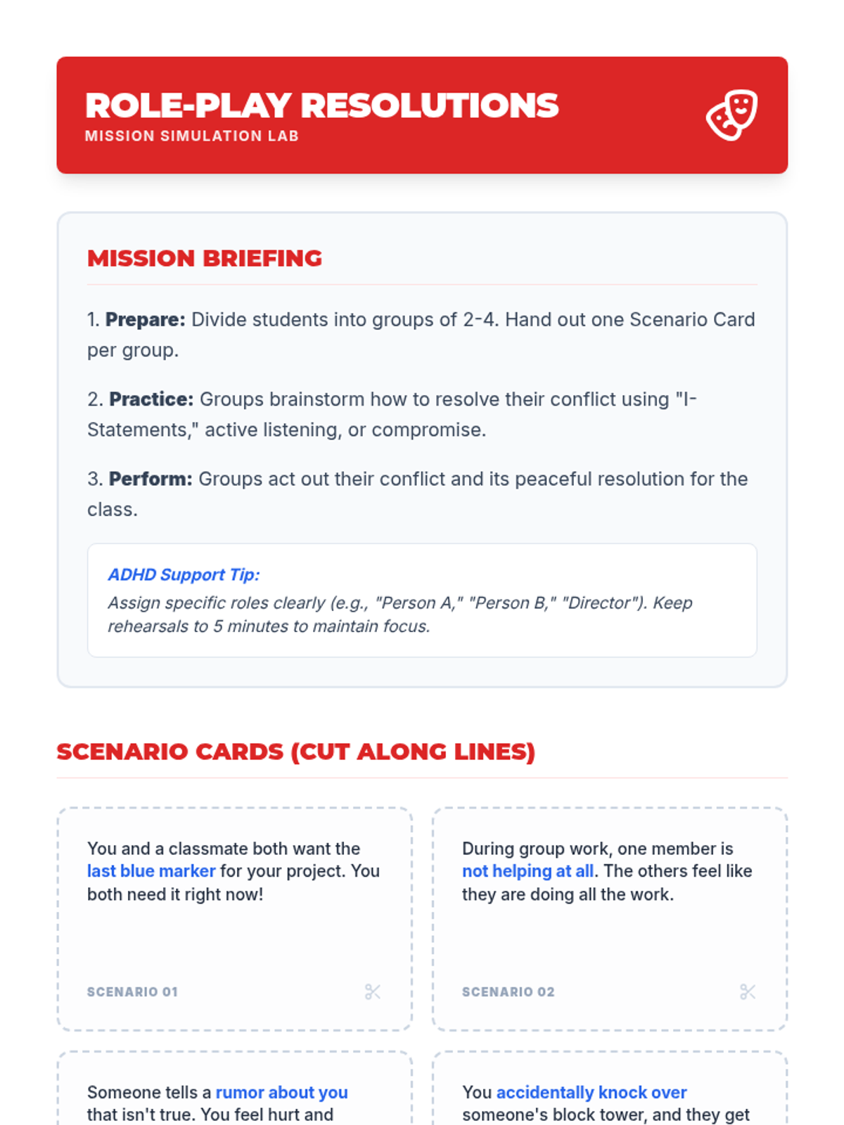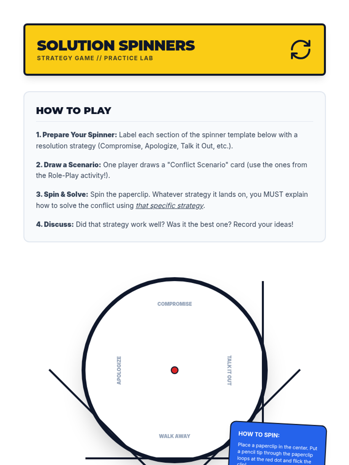 This 8-week unit helps 4th-grade students develop essential interpersonal, social, and academic coping skills by focusing on conflict resolution. Students will learn to identify conflicts, understand their causes, and practice peaceful resolution strategies through engaging activities and role-plays.
