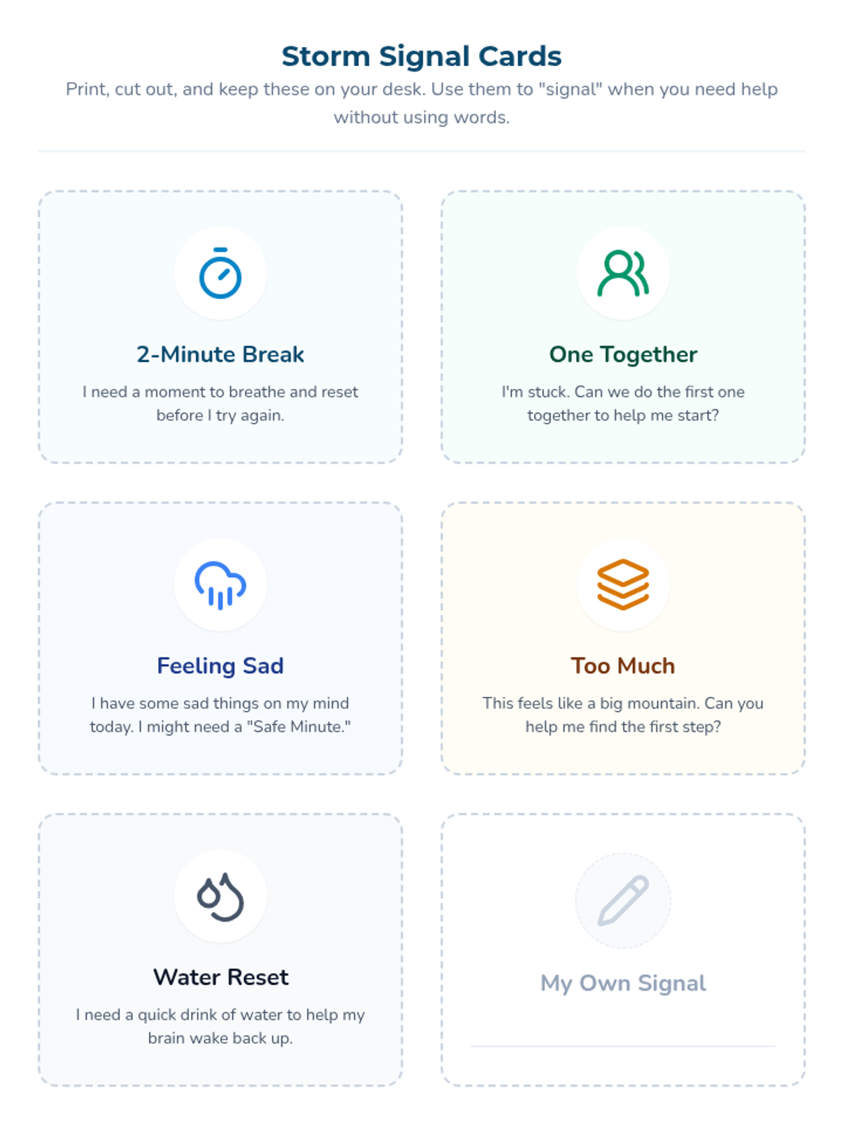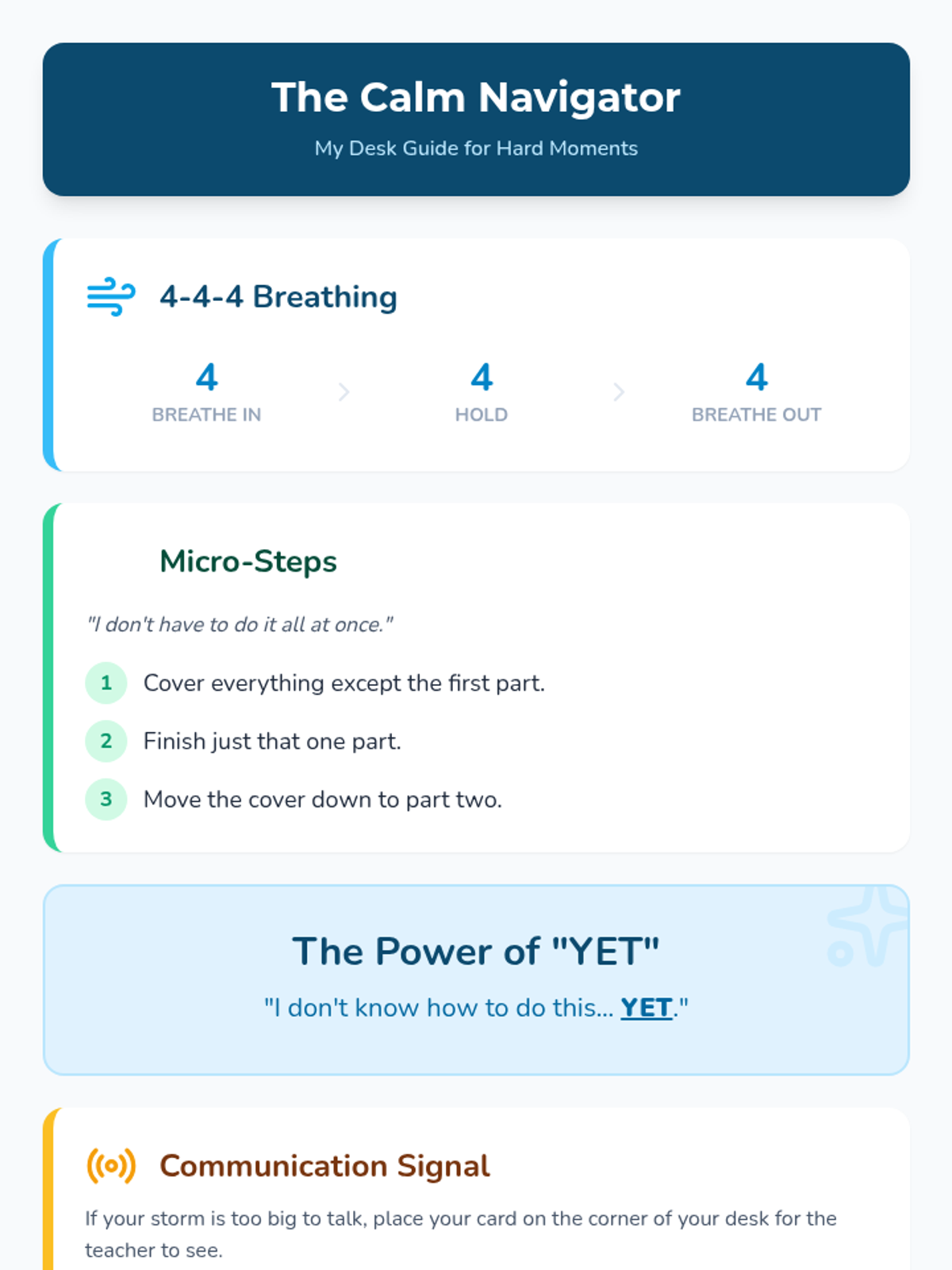 A social-emotional learning lesson designed to help students recognize emotional triggers, communicate their needs during difficult tasks, and use self-regulation strategies to persevere.