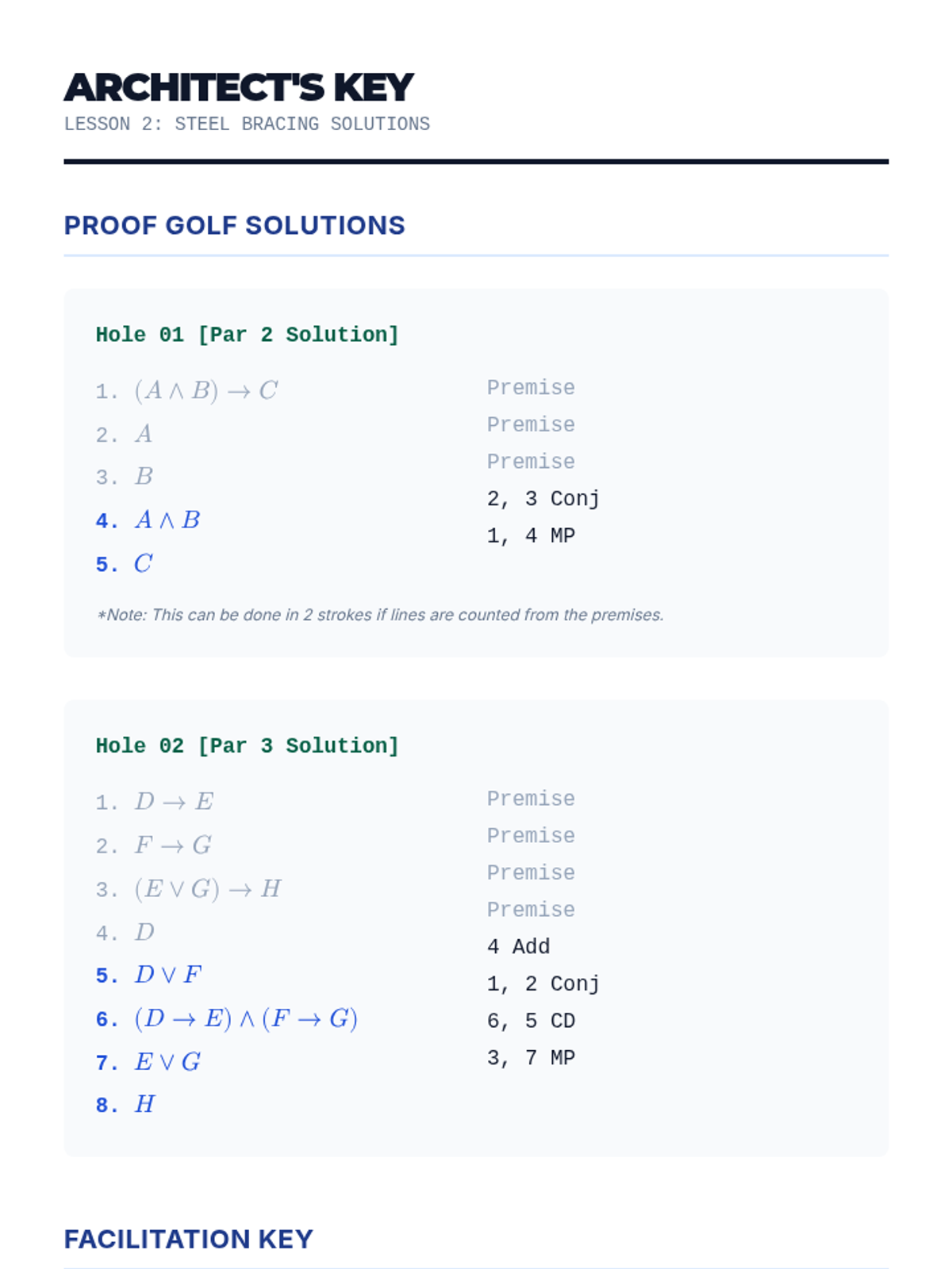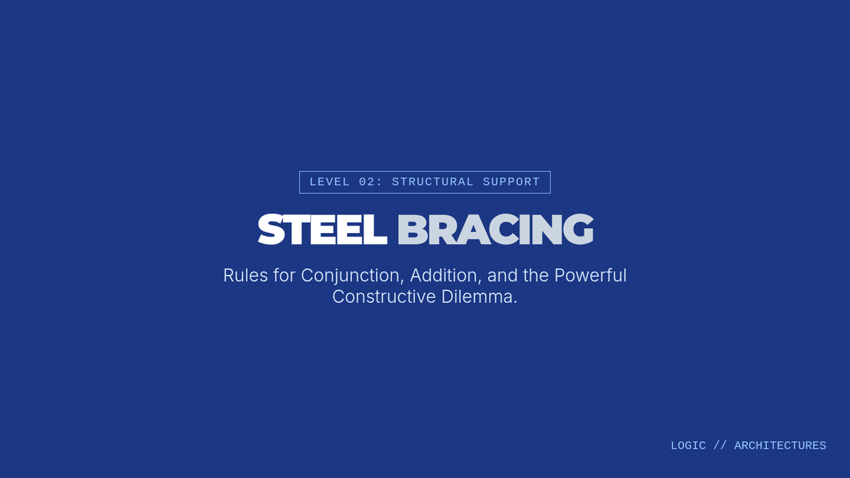 The lesson expands the toolkit with rules for Conjunction, Simplification, Addition, and Constructive Dilemma. Students solve mid-level proofs that require combining these with implication rules.