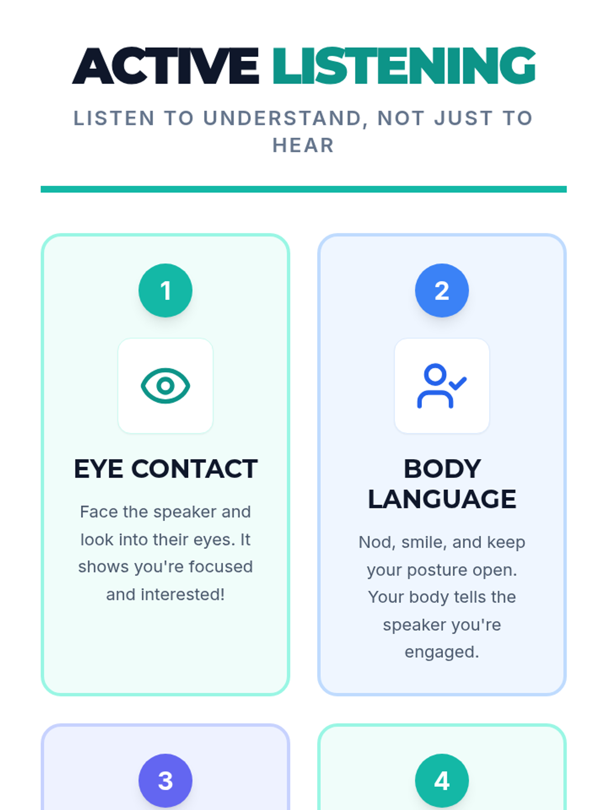 Developing advanced listening skills, including paraphrasing and validating others' perspectives in English.