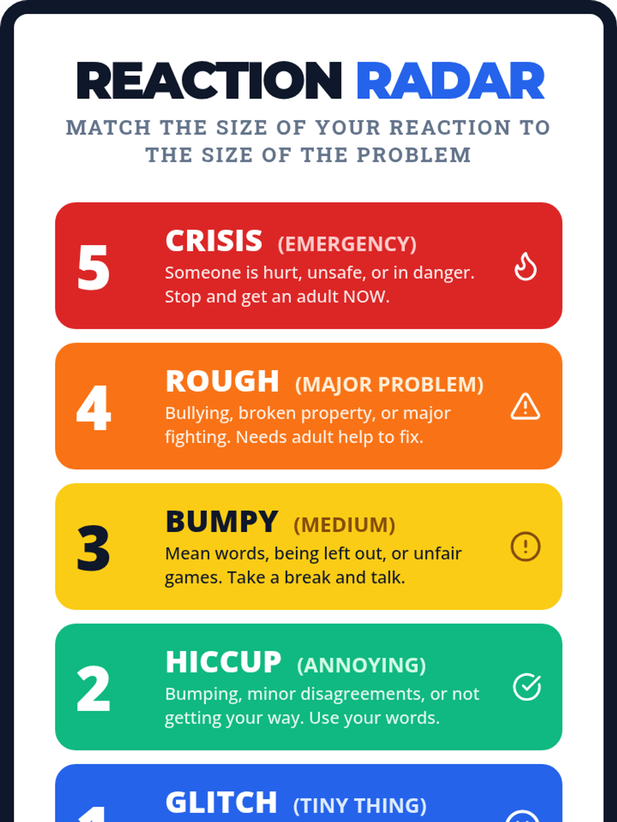 Develop strategies for seeking adult support when struggling with anger, social pressure, or the impulse to tease.