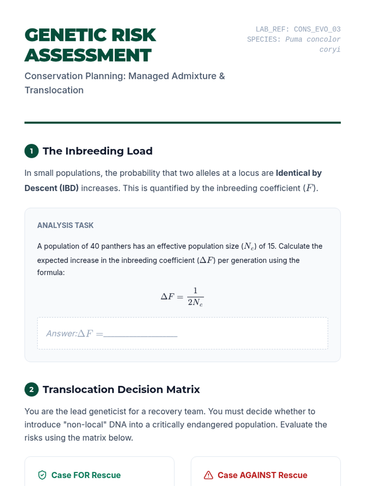 Investigate how small populations adapt to rapid environmental changes and assess the risks and benefits of genetic rescue through translocation.