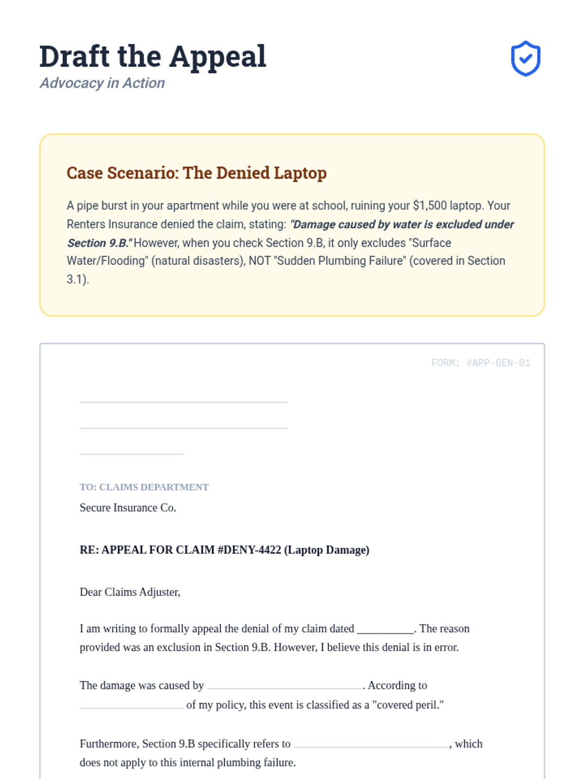Students investigate consumer protection laws and the role of insurance commissioners, concluding with drafting a formal appeal letter for a denied claim.