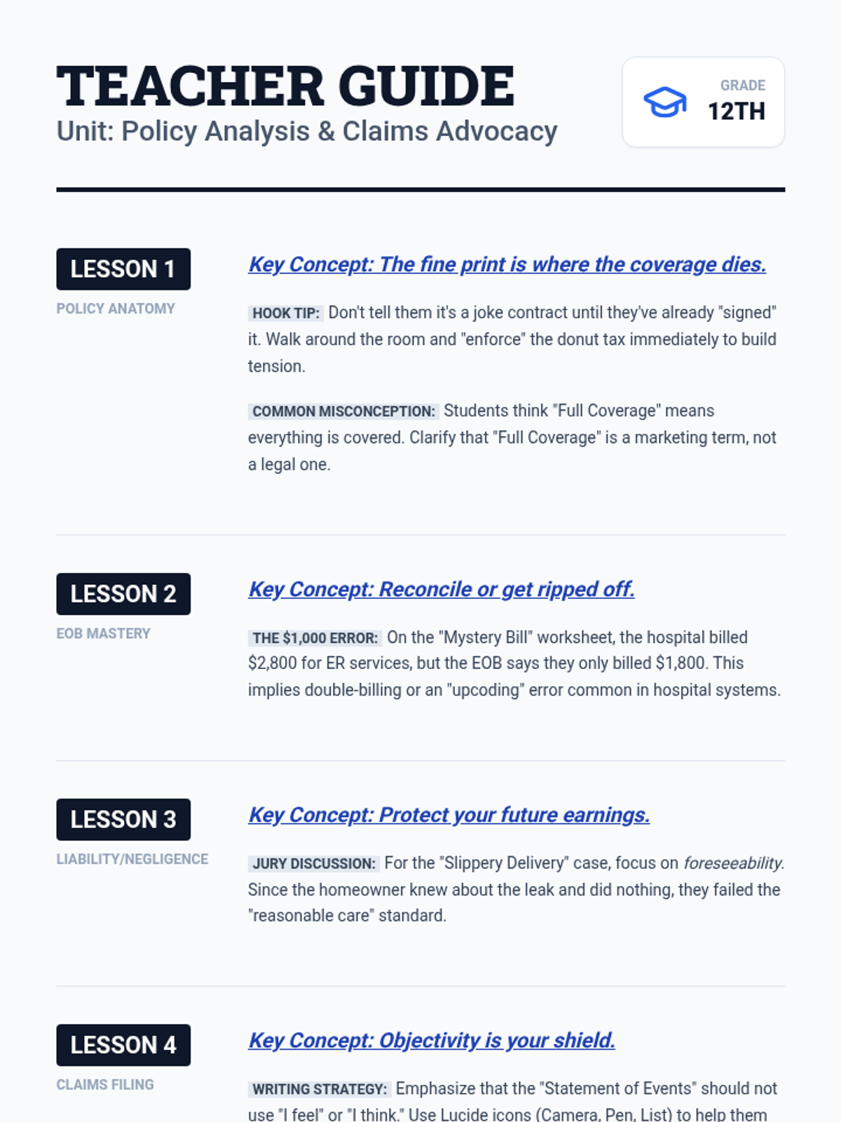 Focuses on social intelligence and 'code-switching' as tools for success. Students practice navigating conflict with peers and authority figures to protect their progress and 'own the room' professionally.
