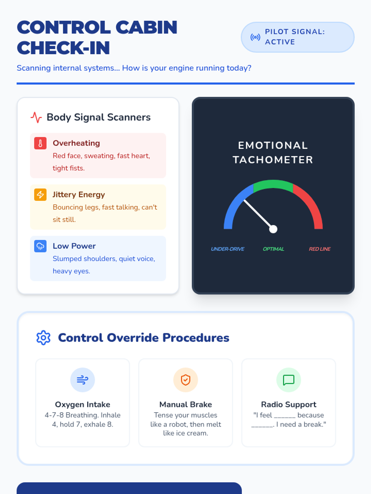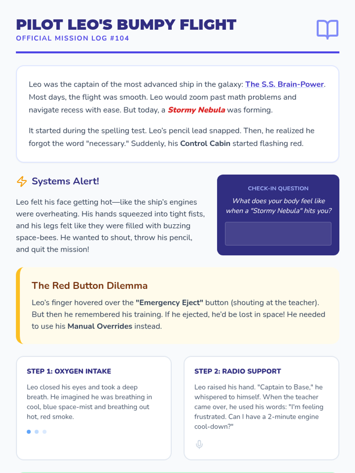 A comprehensive set of counseling resources for 4th graders with ADHD to manage big emotions through the metaphor of a 'Control Cabin', focusing on body signals, impulse control, and calming strategies.
