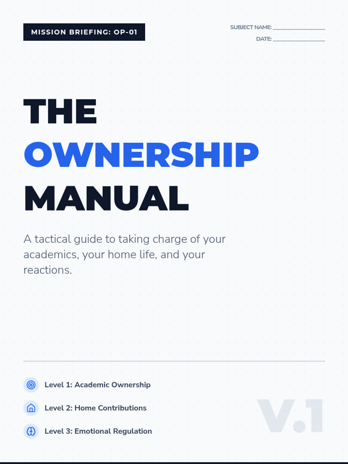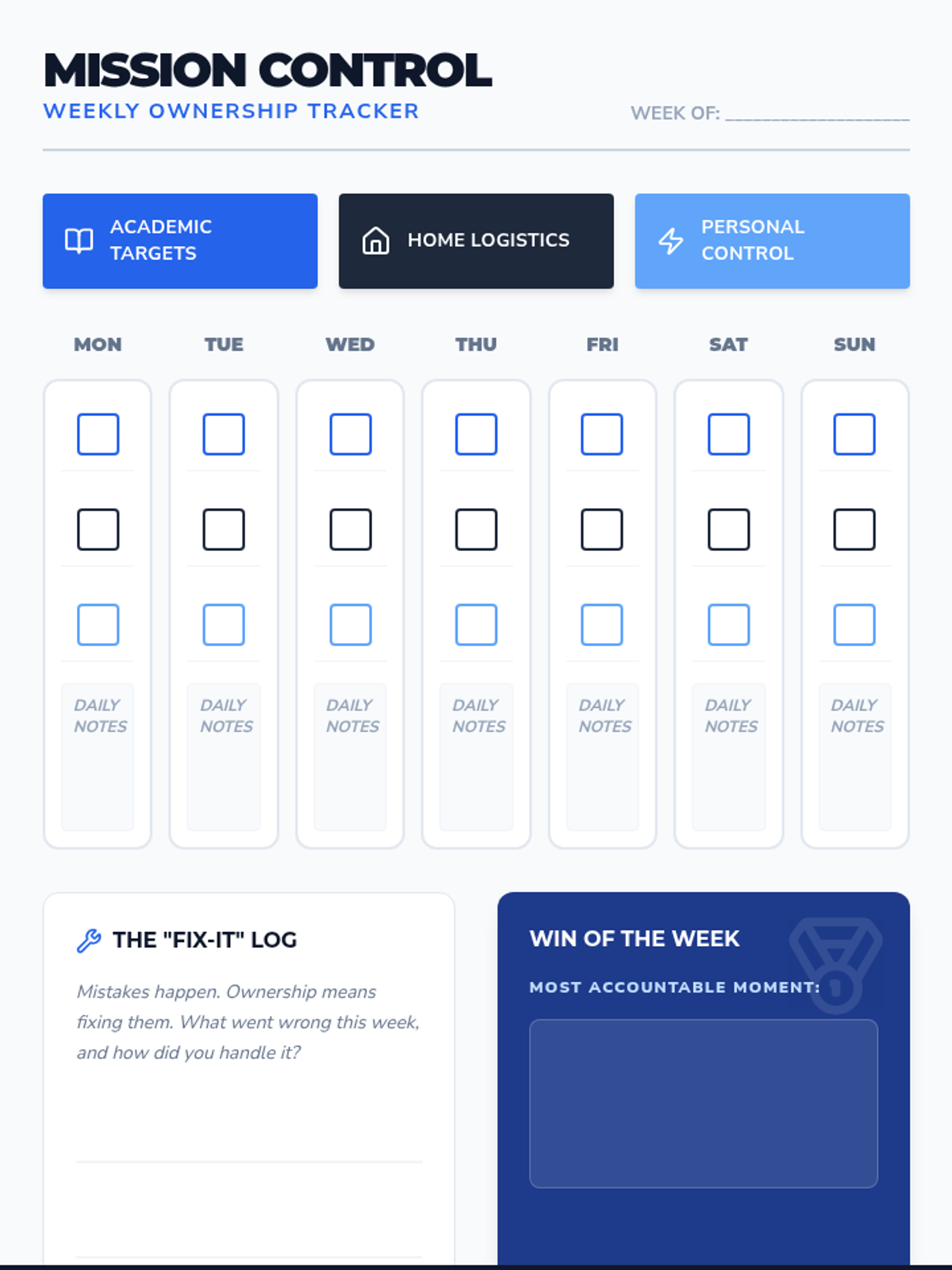 A workbook and tracker focused on building accountability in academic, domestic, and personal spheres for teenage boys. Use scenarios to explore the consequences of choices and a structured tracker to build consistent habits.