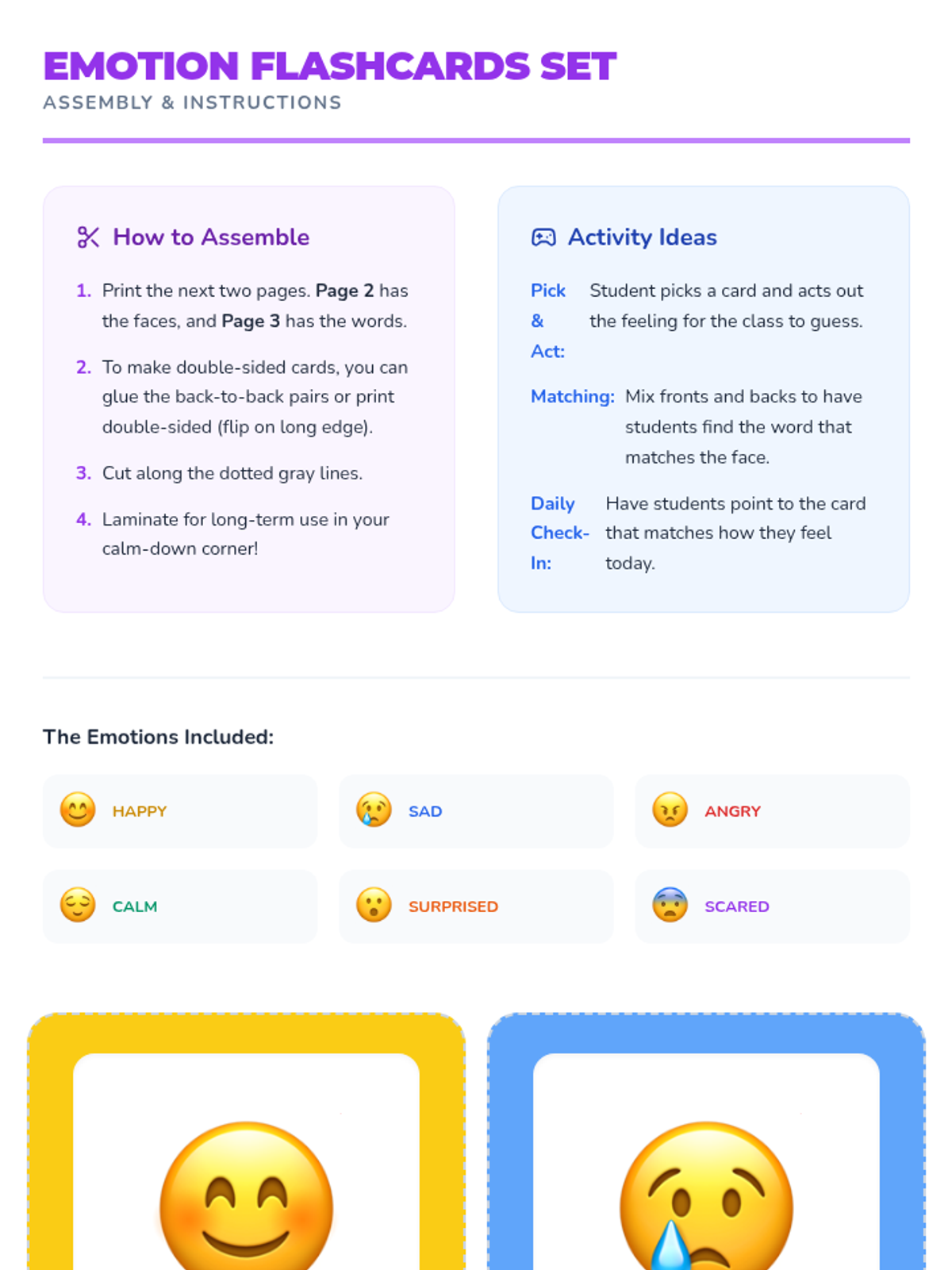 A set of practical, visual resources designed to help students identify their emotional state and select appropriate self-regulation strategies based on the Zones of Regulation framework.