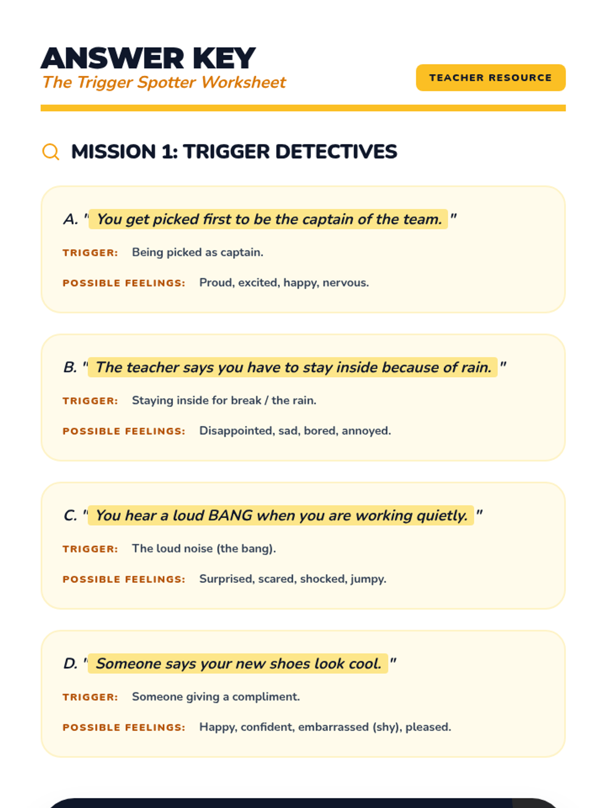 Introduces specific calming techniques and reinforces the connection between choices and school-wide consequences.