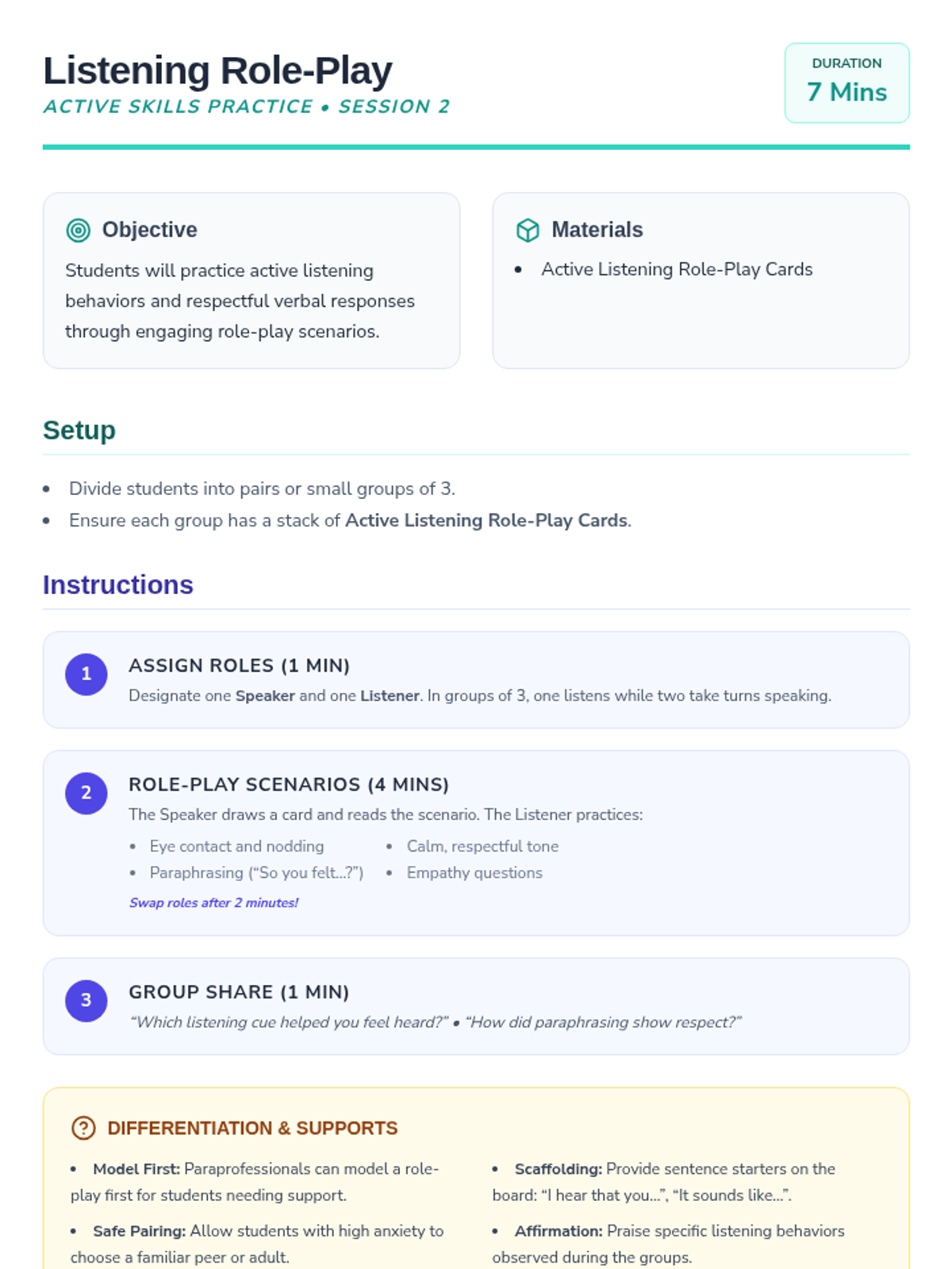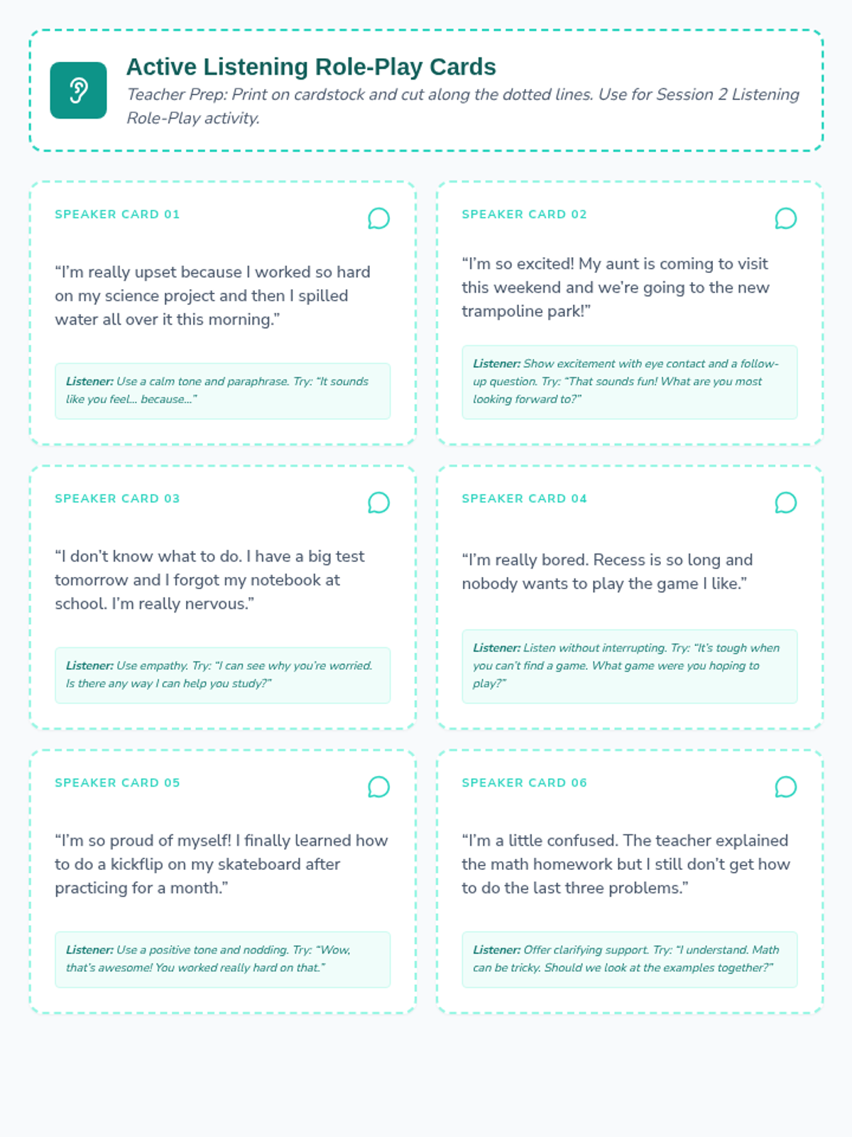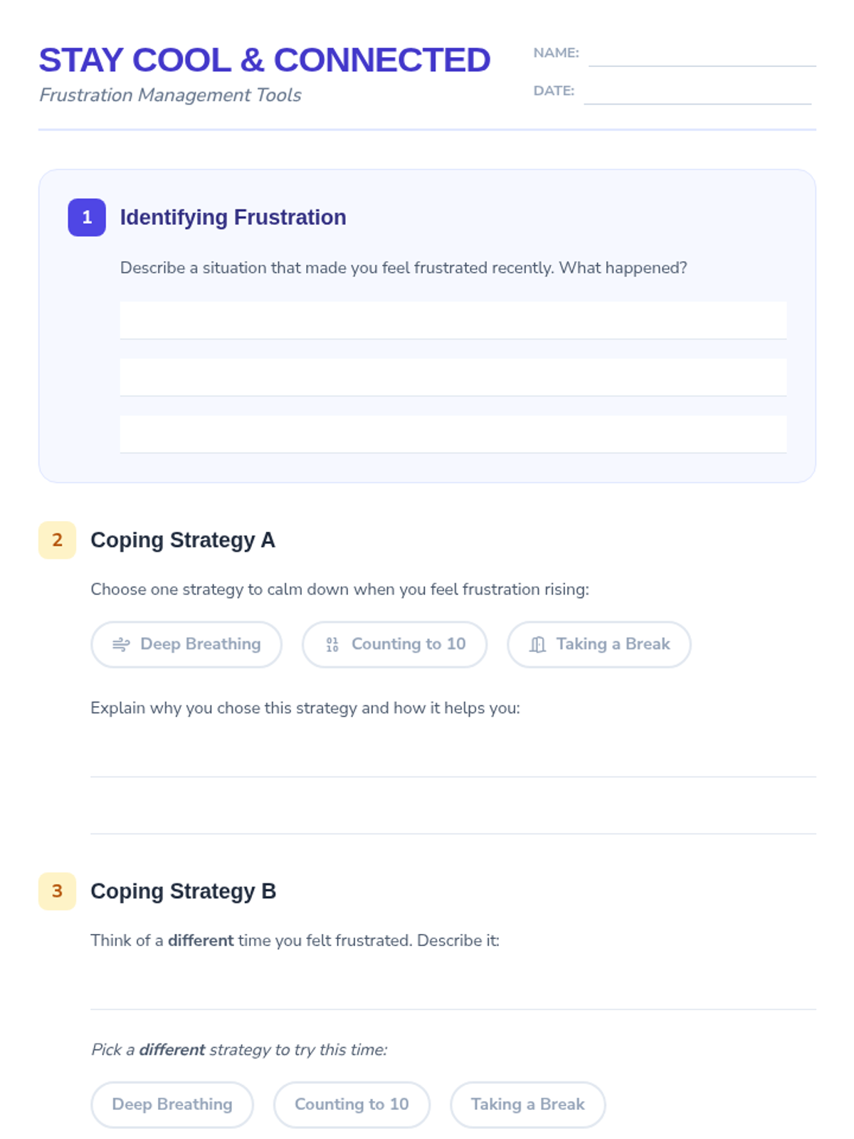 Students practice active listening and frustration management strategies to maintain respectful peer relationships.