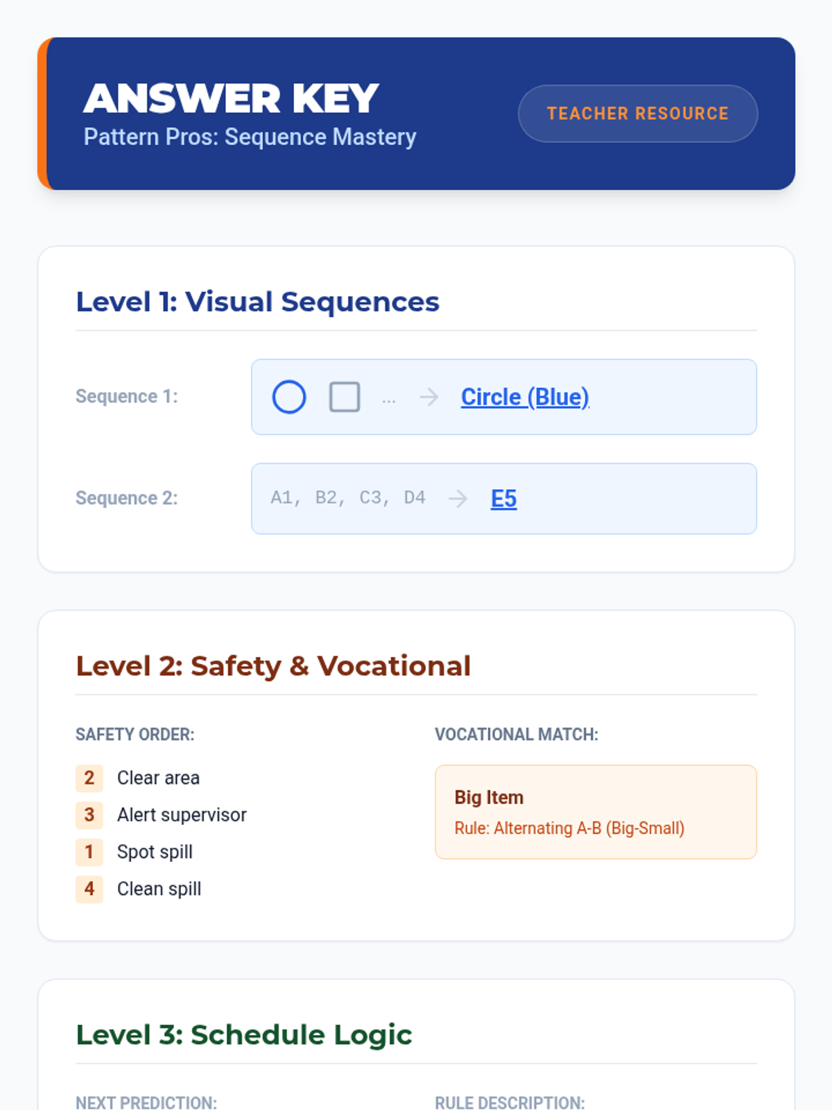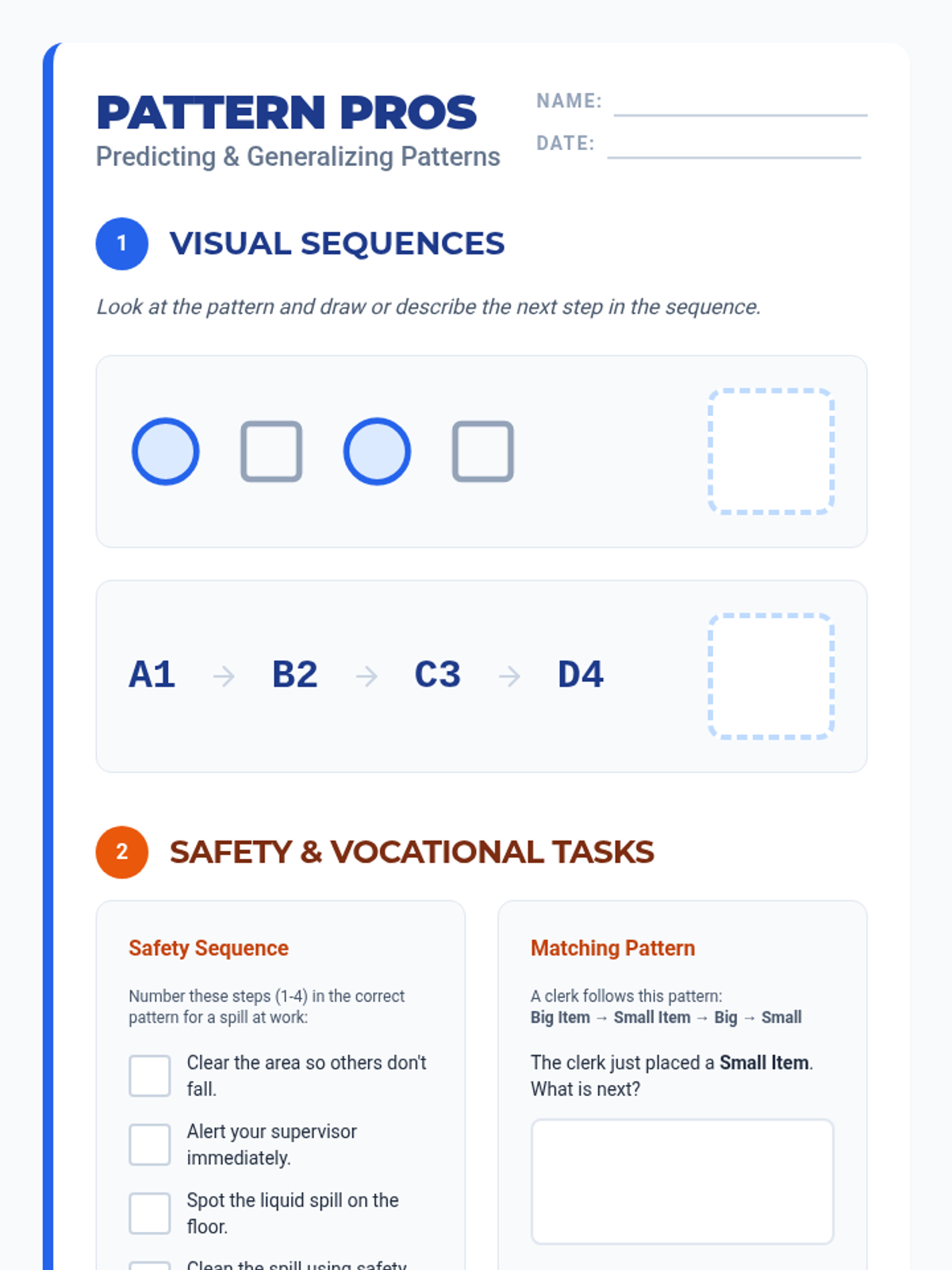 A comprehensive lesson on identifying and predicting patterns across visual, vocational, and social contexts to build critical thinking and life skills.