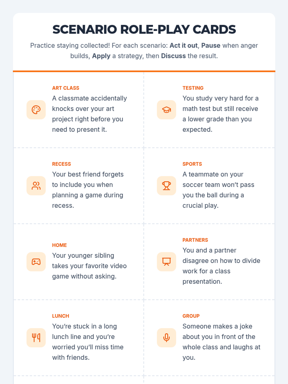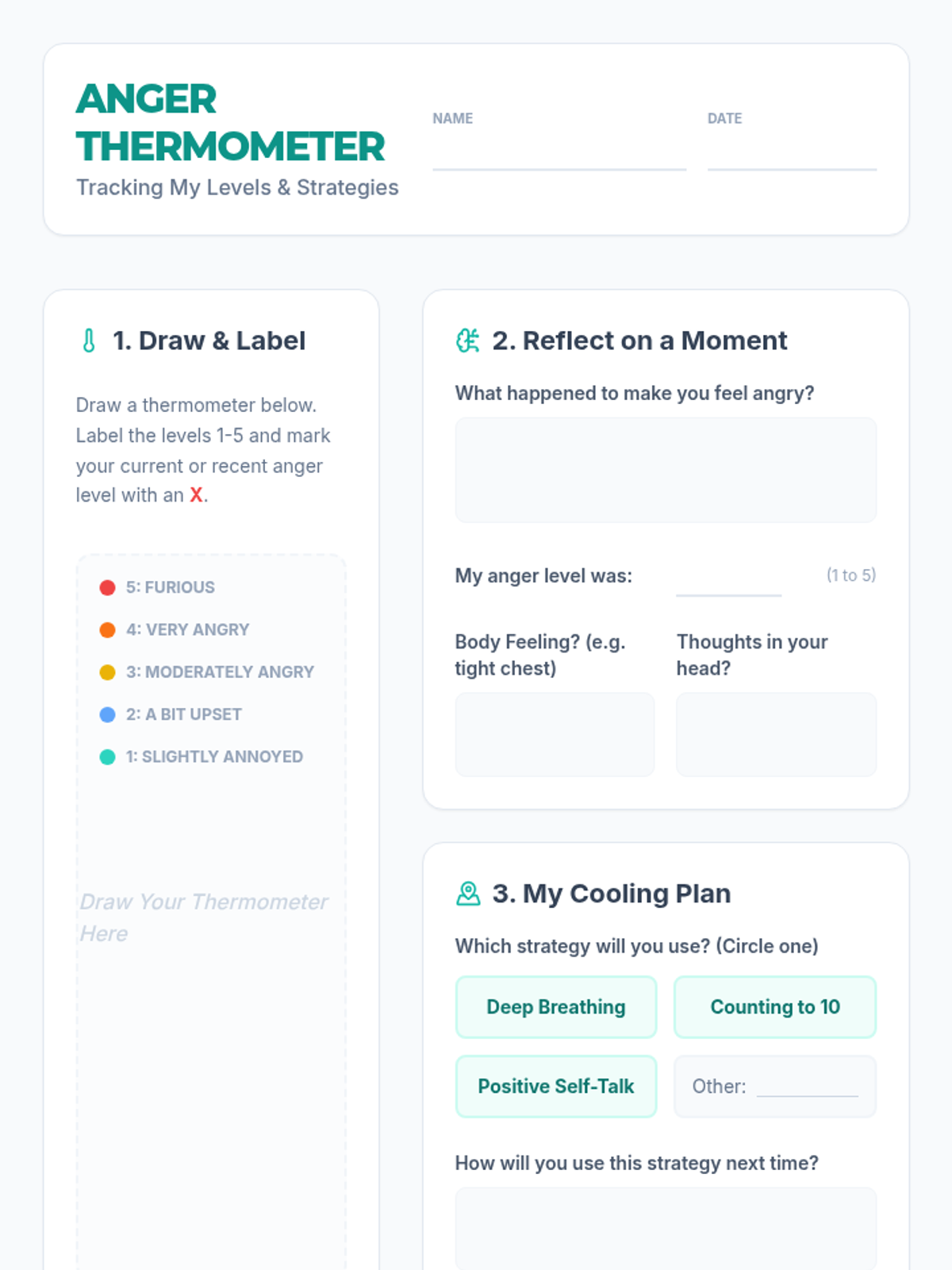 Students identify the physical sensations of frustration and learn to recognize their personal 'early warning signs' before they reach a boiling point.