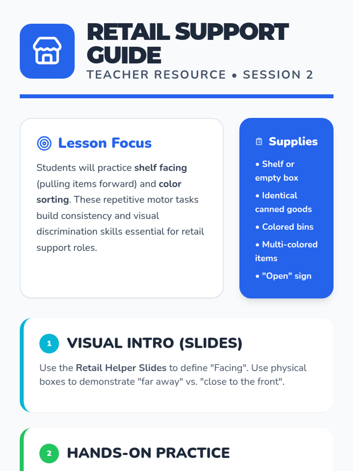 Focuses on retail support tasks like shelf facing and product sorting using visual matching skills.