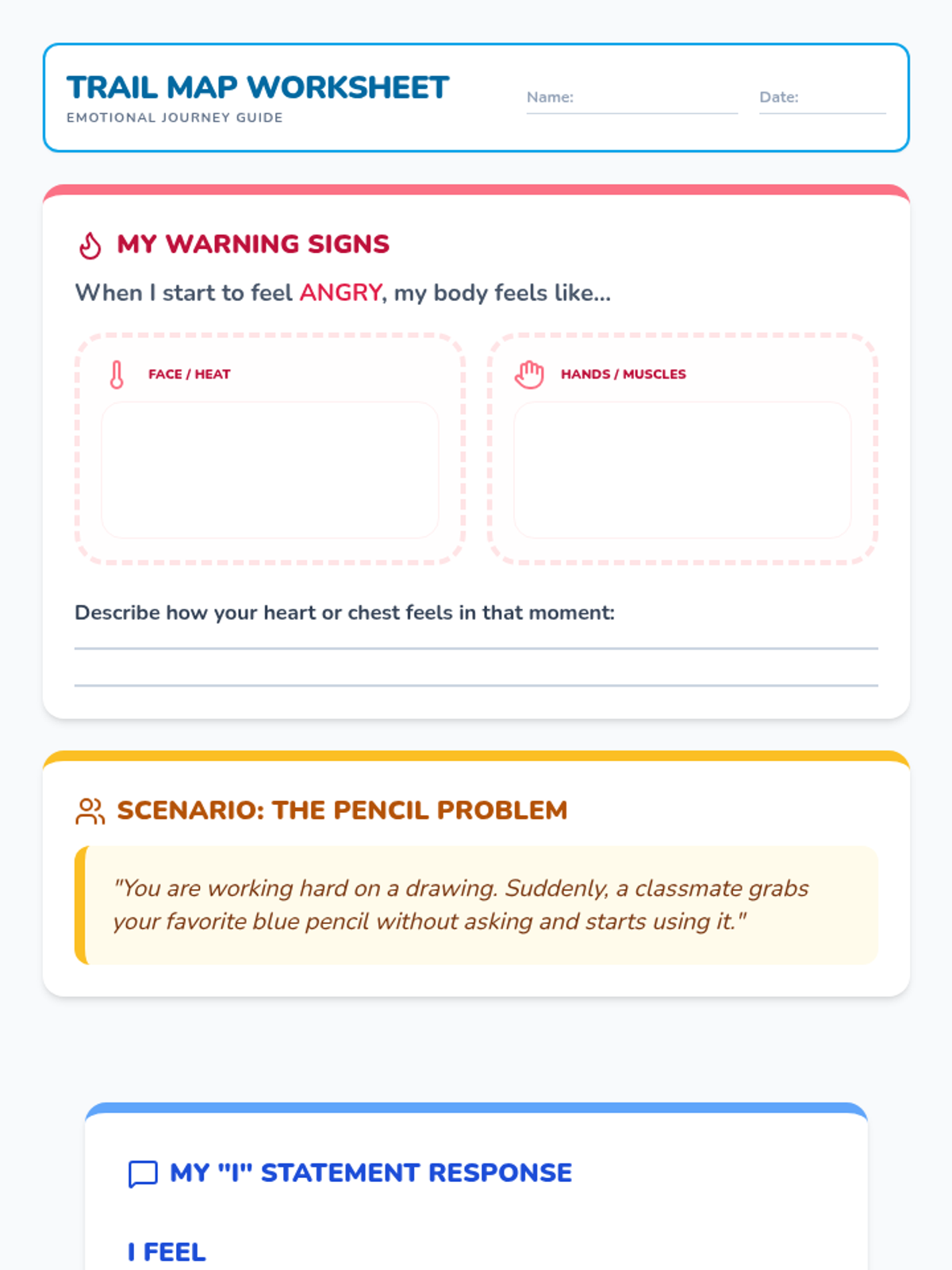 A collection of visual tools and worksheets designed to help students identify their emotional zones and practice cognitive restructuring through thought bubbles. Includes age-appropriate templates for K-2 and 3-5 students.