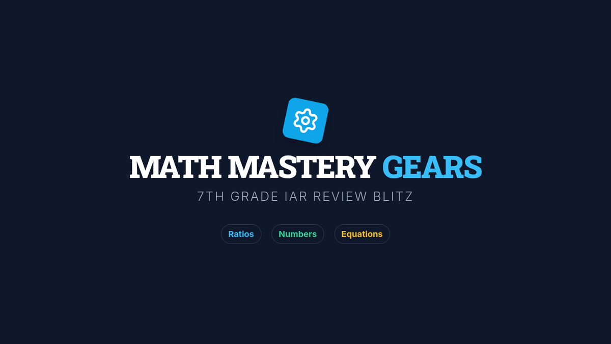 A comprehensive review session for 7th grade math standards focusing on Ratios, The Number System, and Expressions & Equations, designed for IAR assessment preparation.