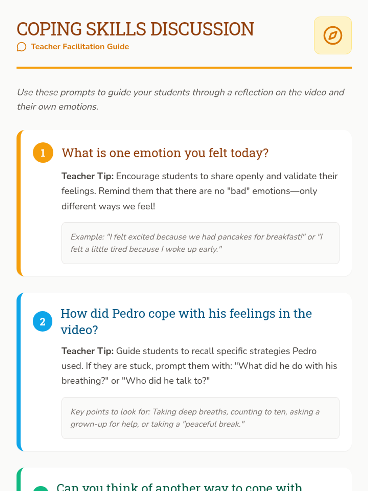 A social-emotional learning lesson using a compass metaphor to help K-5 students re-establish empathy, kindness, and community after time away from school. Students explore the four 'cardinal points' of connection: Notice Needs, Speak Kindness, Everyone's Invited, and Work Together.