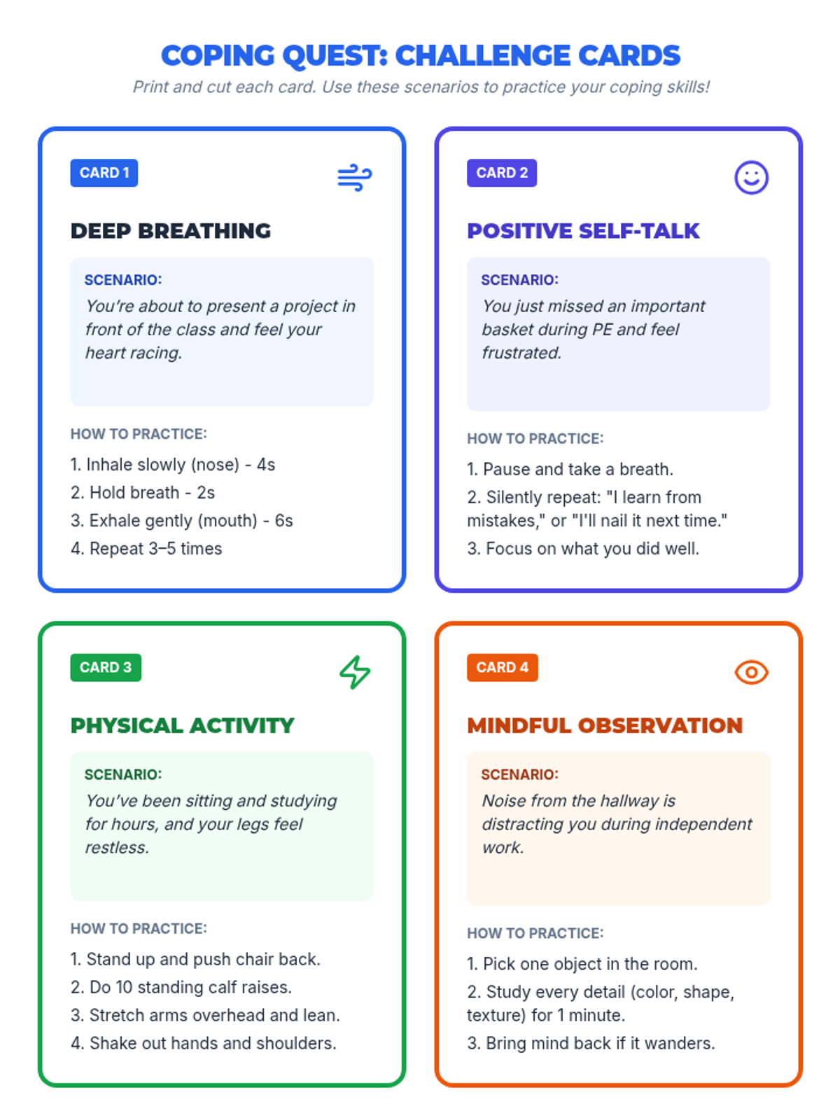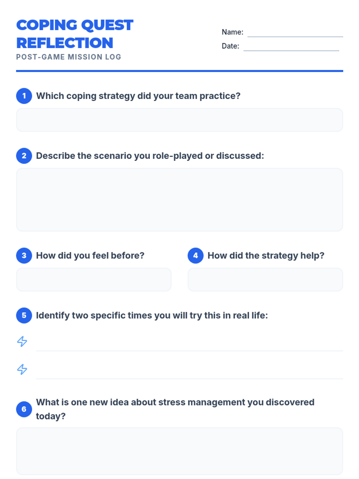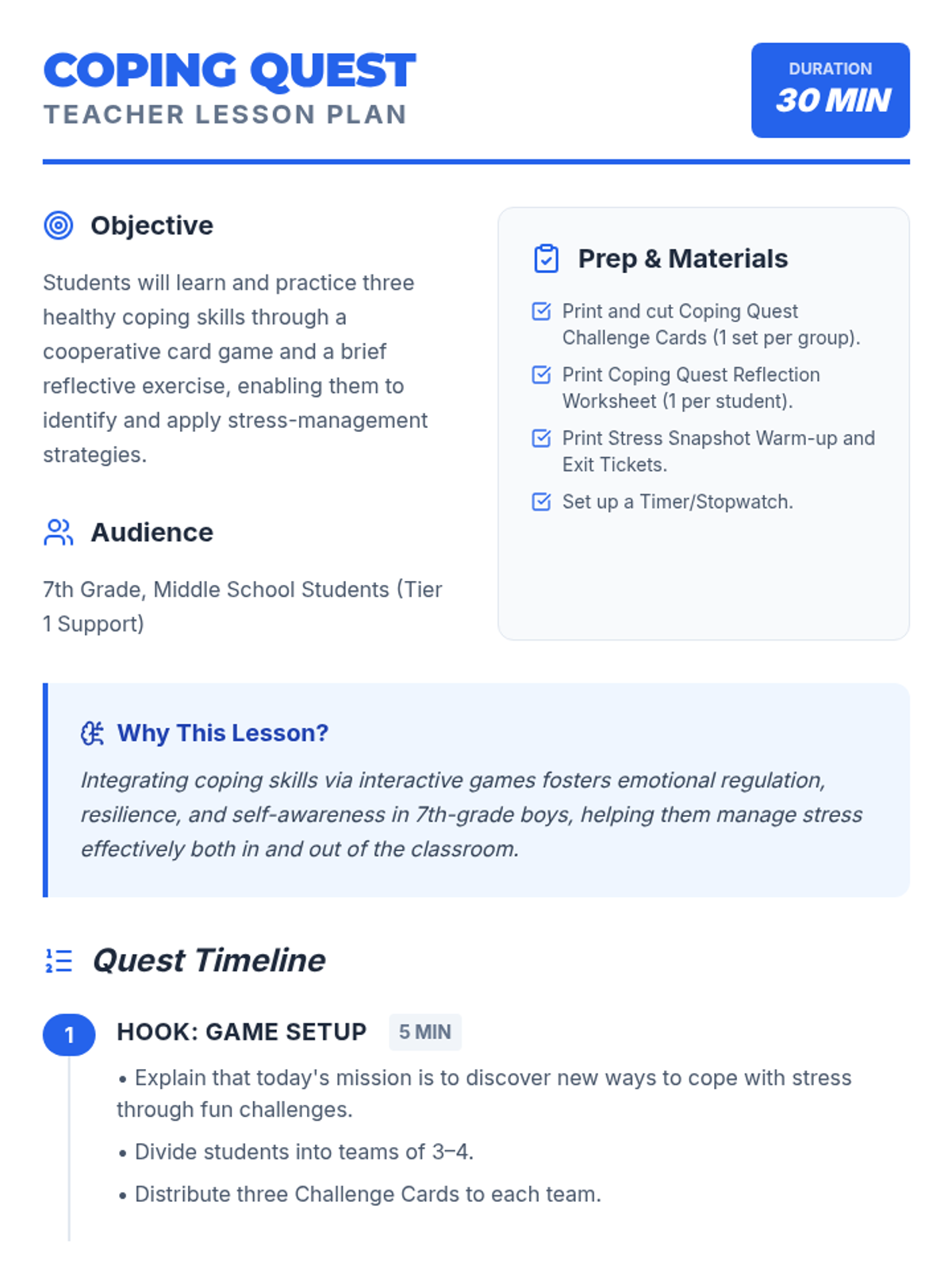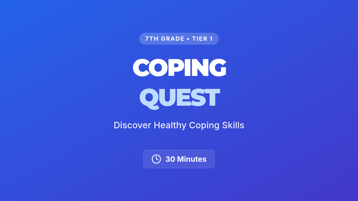 In this 30-minute Tier 1 session, 7th-grade students will explore and practice healthy coping skills through interactive games and challenges. By gamifying stress-management techniques, this lesson empowers students to build resilience, self-awareness, and emotional regulation in a fun and supportive environment.