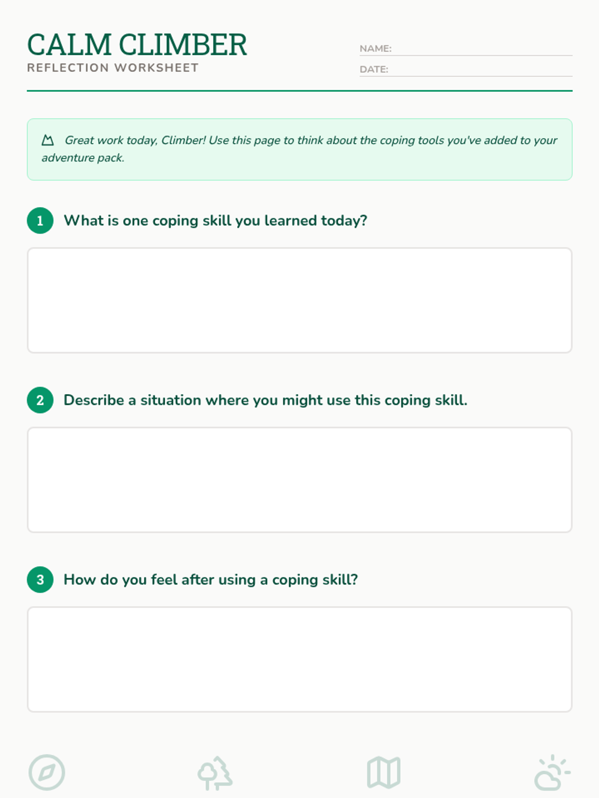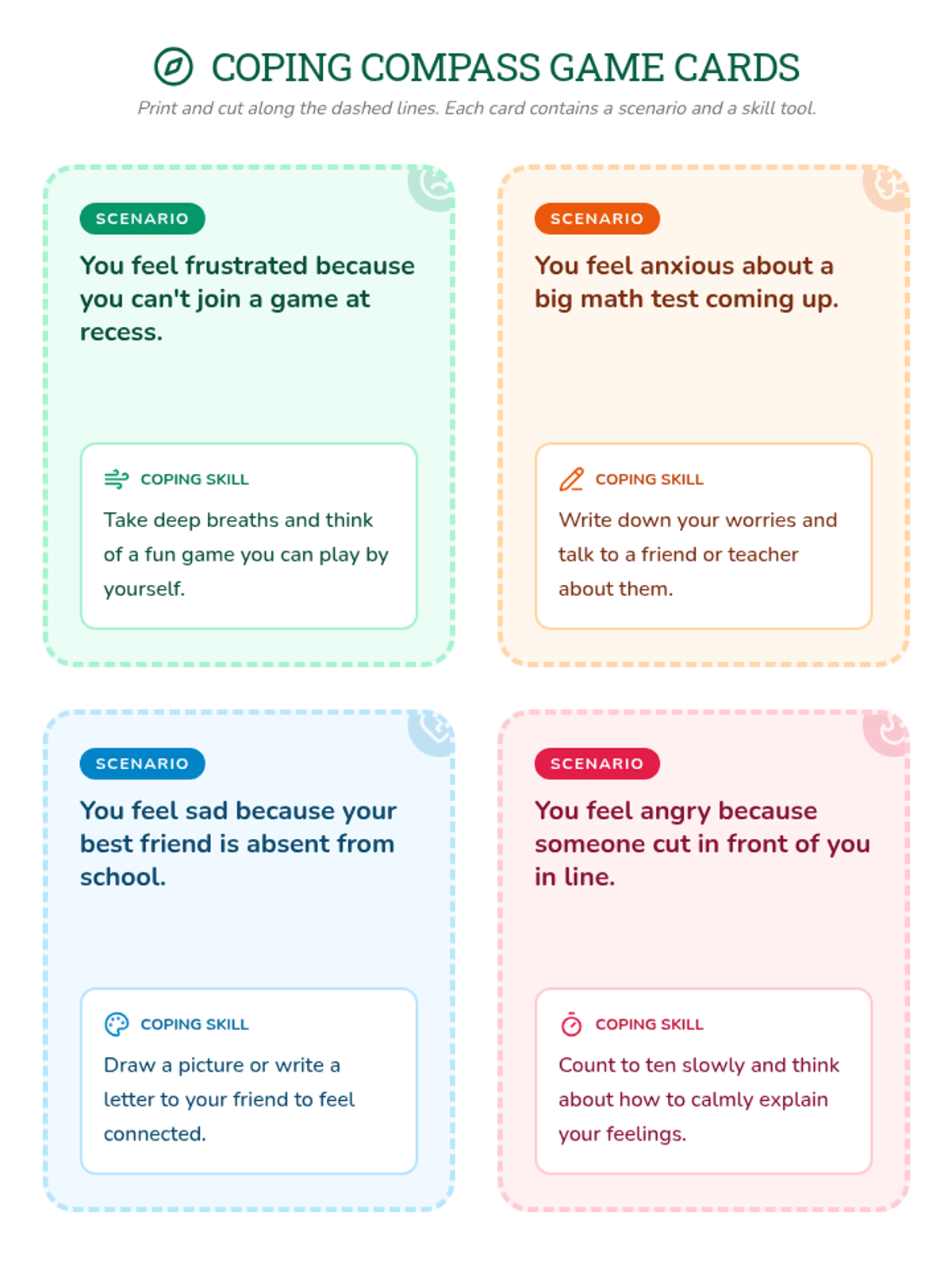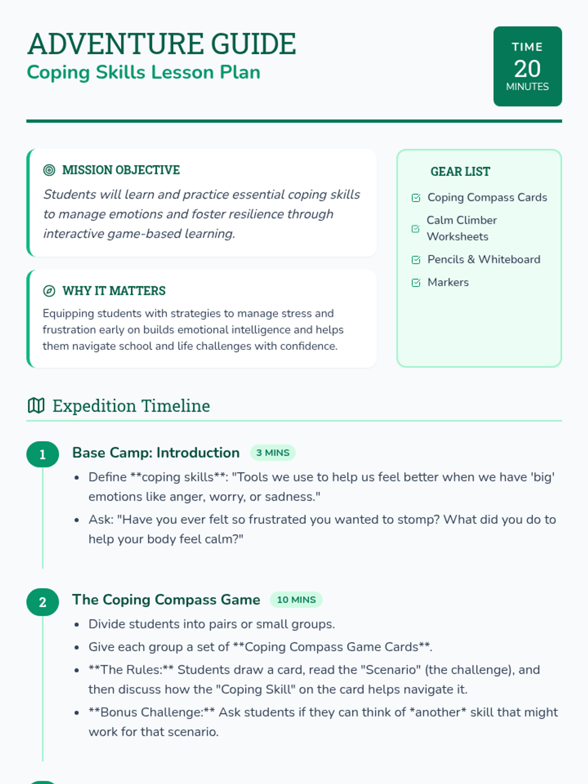 A 20-minute small-group lesson for 3rd graders to learn and practice essential coping skills through an adventure-themed game and reflection.