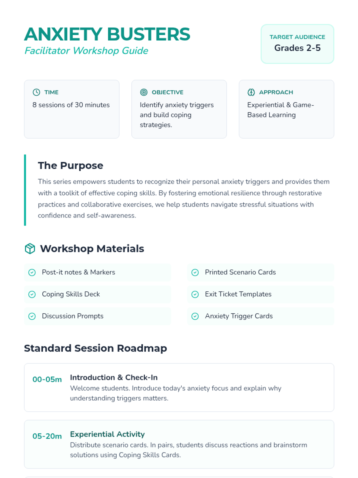 An 8-session workshop designed to empower students with tools to manage anxiety, promote emotional resilience, and identify personal triggers.