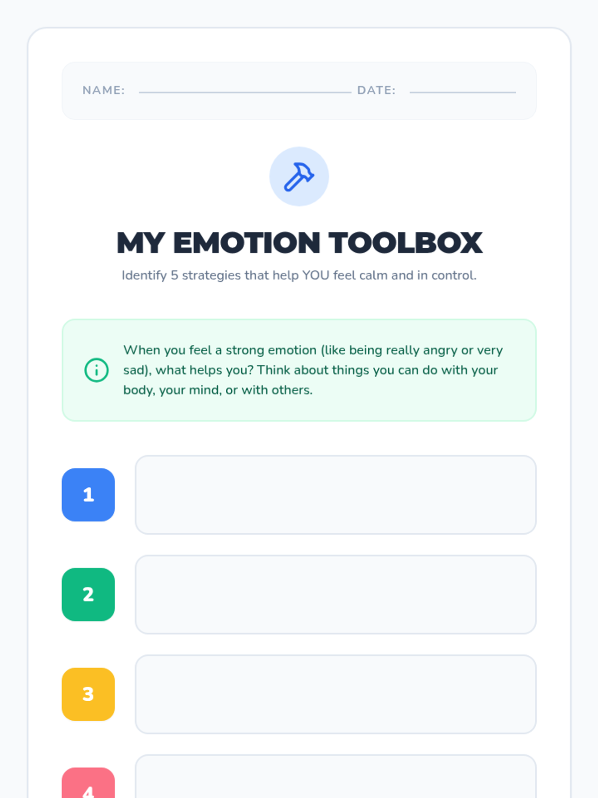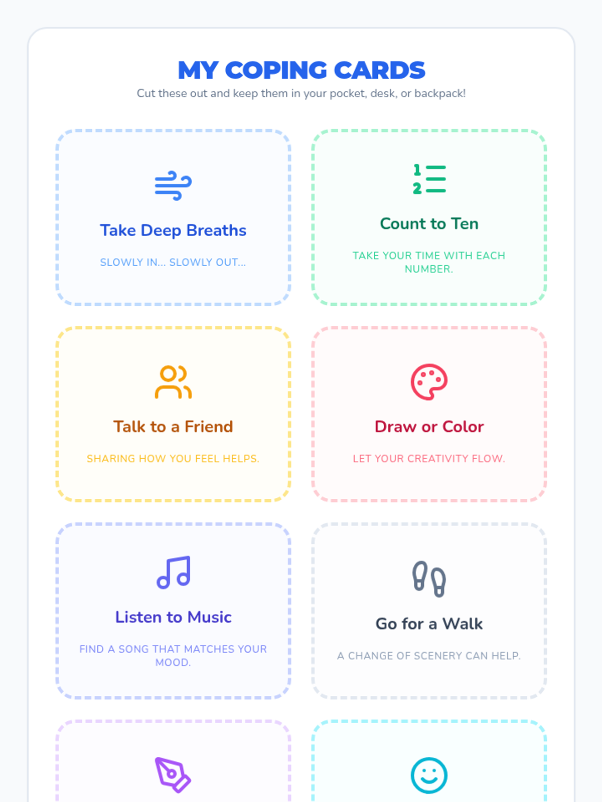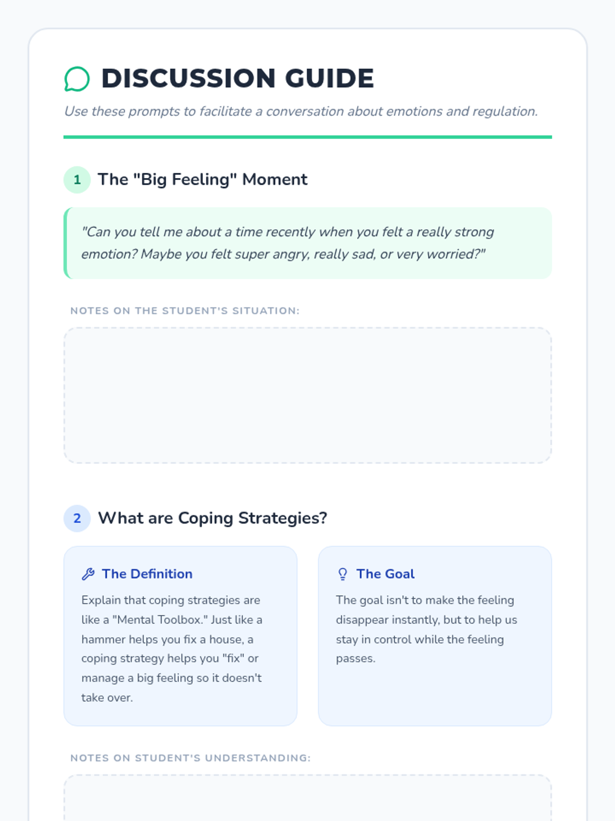 A set of resources designed to help students identify stress triggers and build a personalized toolkit of healthy coping strategies. Includes a visual anchor chart, a student reflection worksheet, and a teacher facilitation guide.