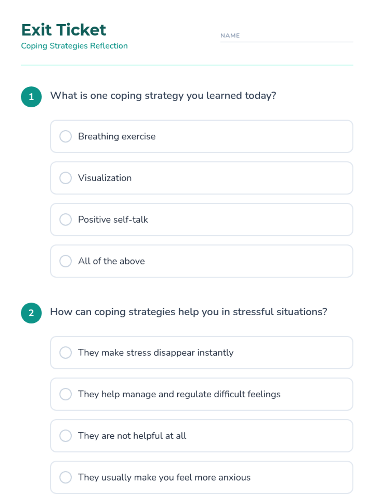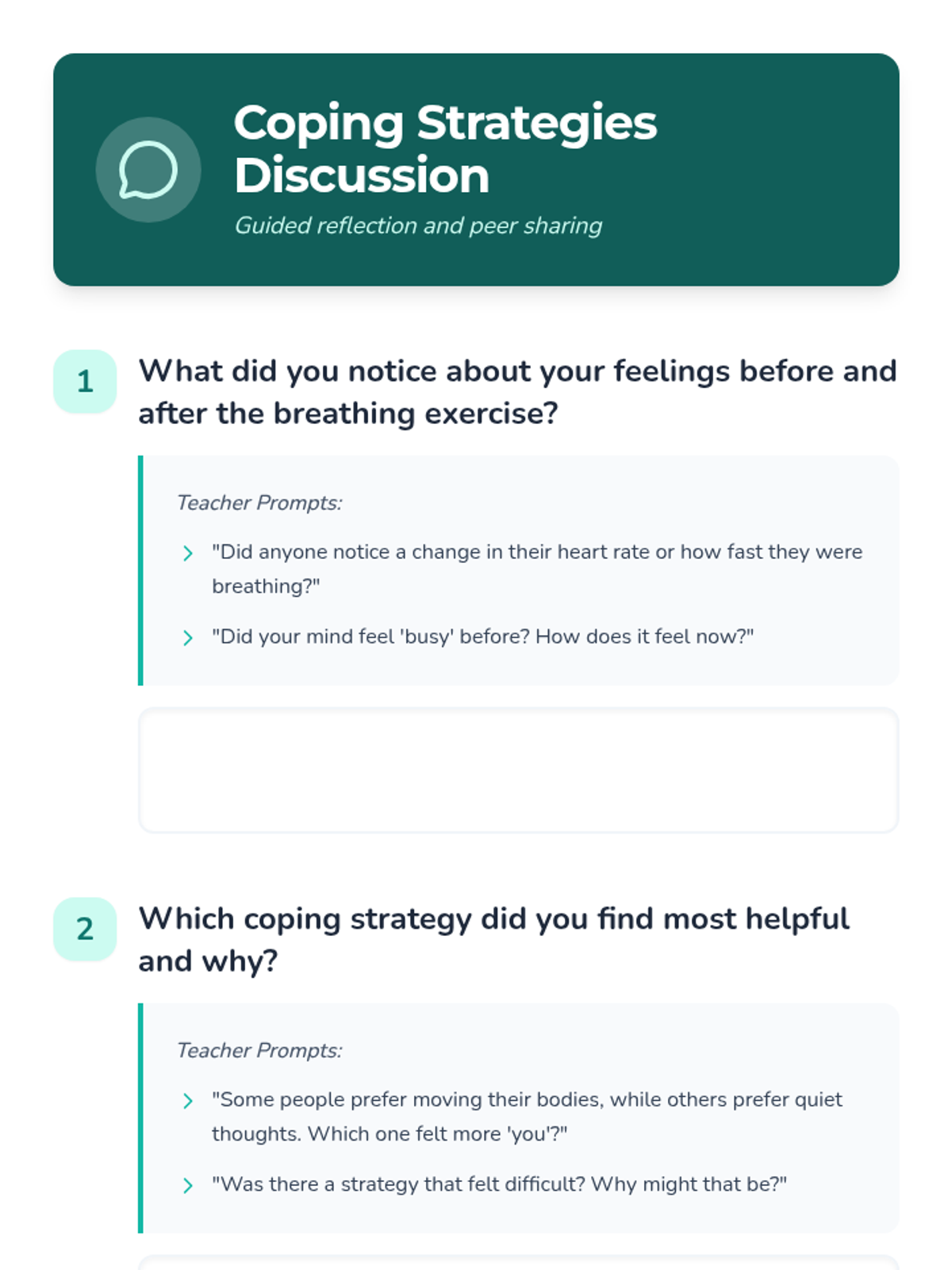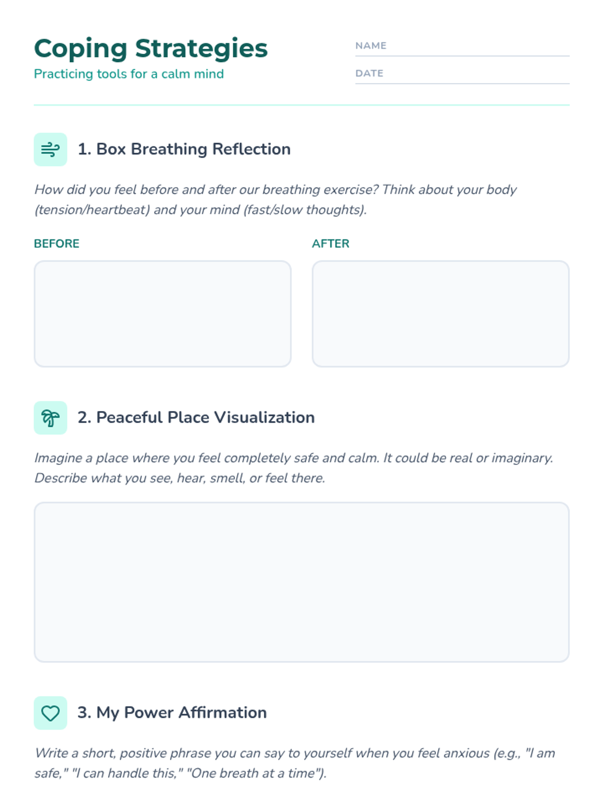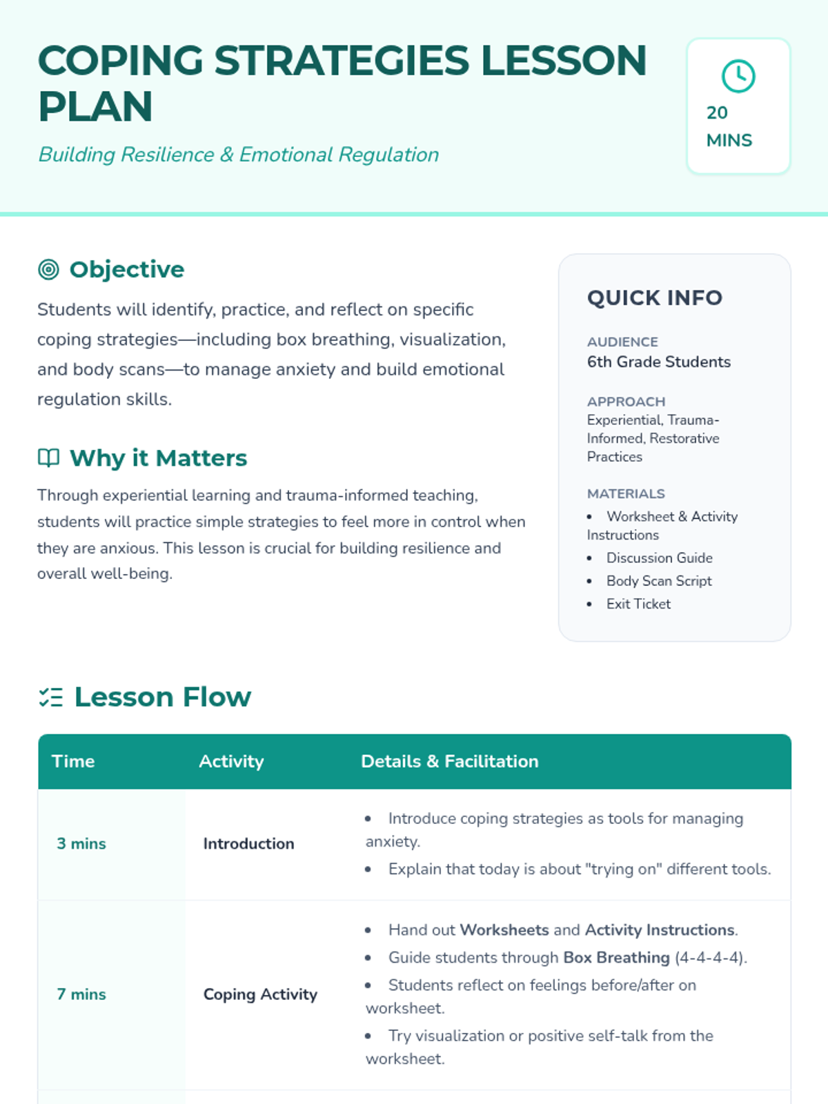 A 20-minute lesson for 6th graders to learn and practice effective coping strategies for managing anxiety through breathing exercises, visualization, and body scans.