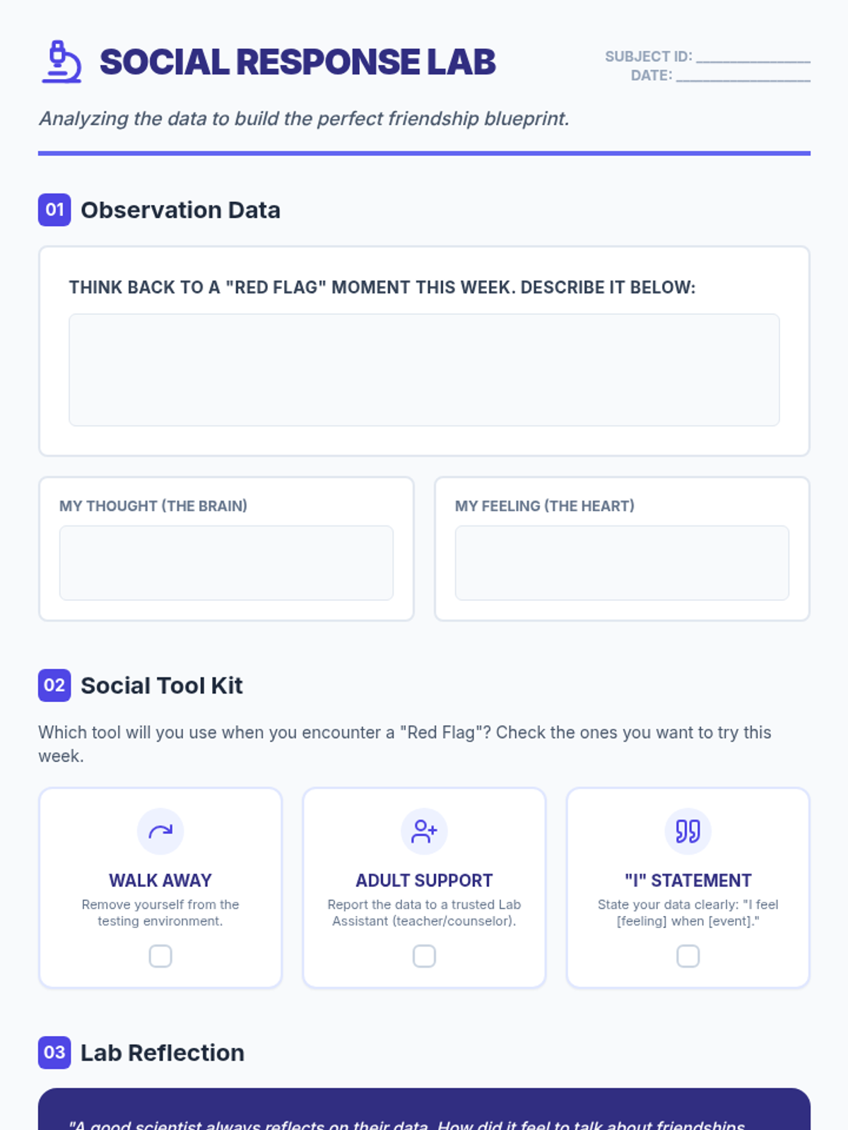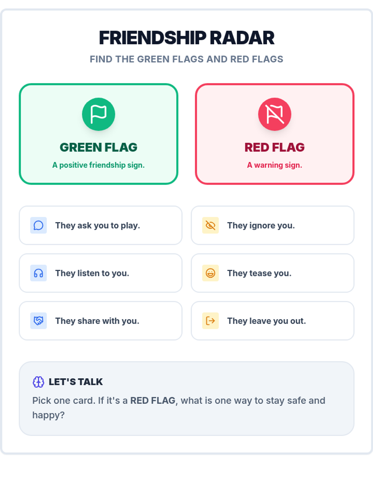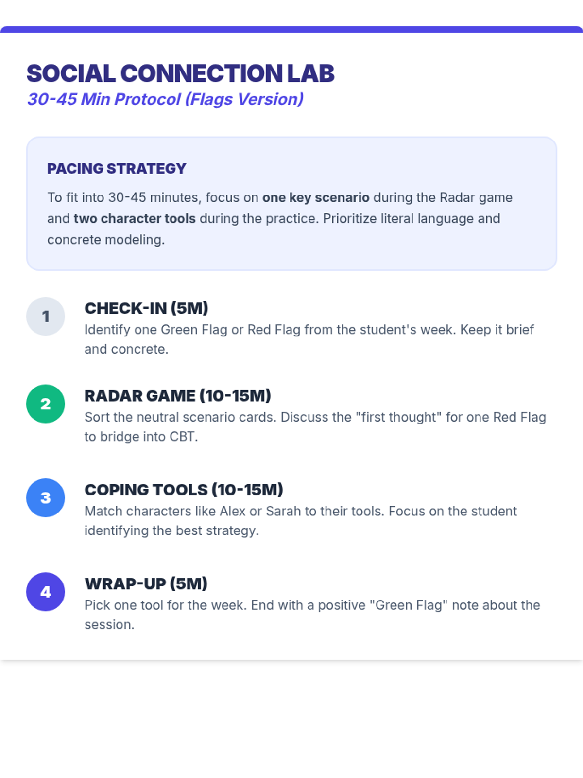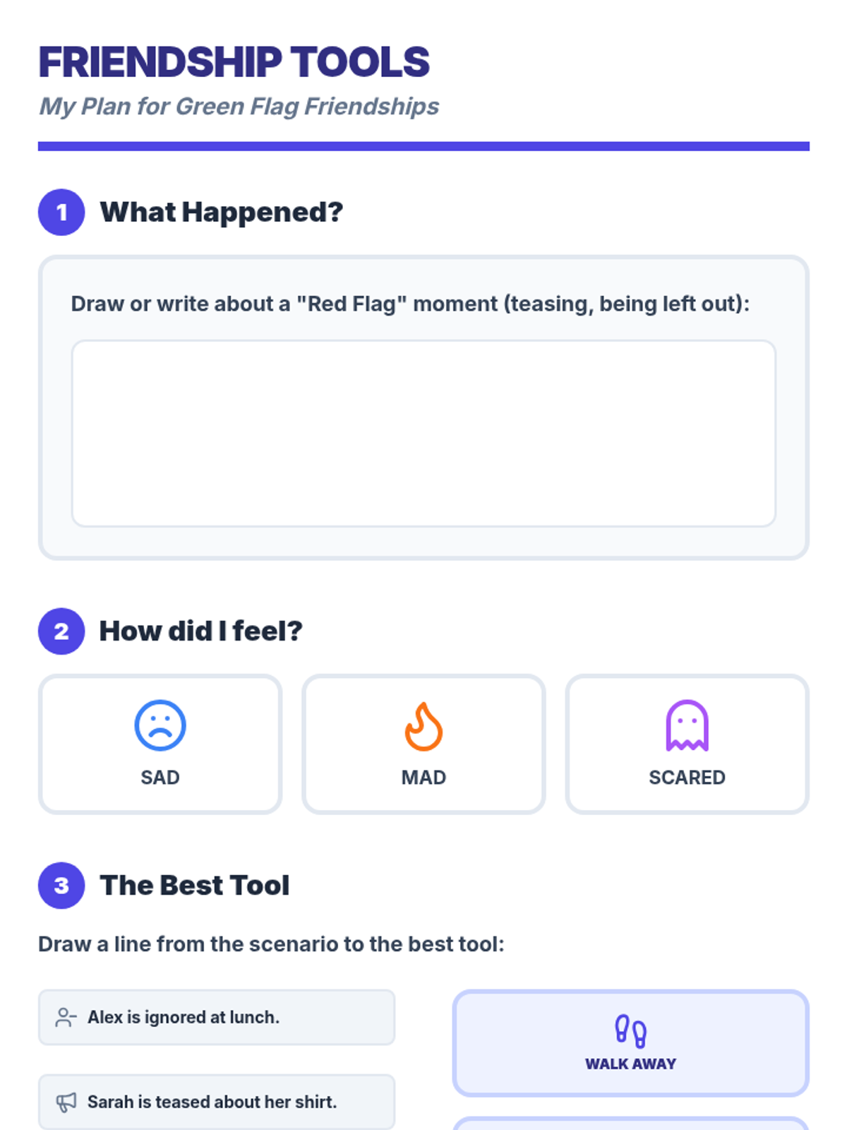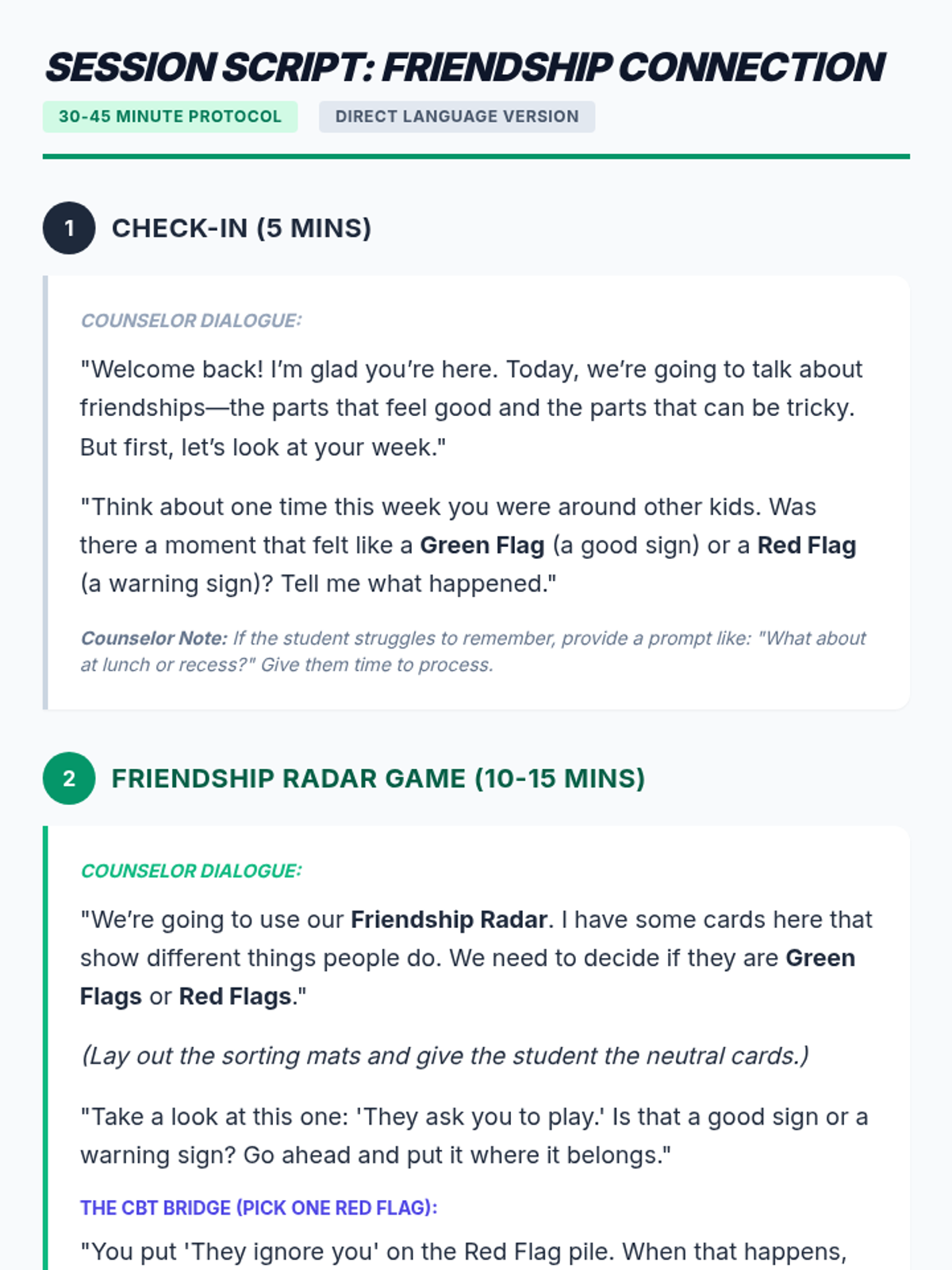 A CBT-based counseling session for high-functioning autistic students focused on identifying healthy friendship qualities, recognizing red flags, and developing coping strategies for social rejection.