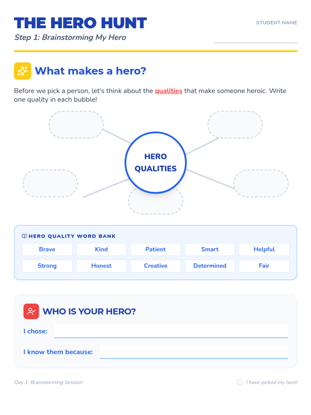 A multi-day writing project where 2nd and 3rd-grade students identify a personal hero, brainstorm their qualities, plan their narrative, and produce a final written tribute. The lesson is broken down into 15-20 minute daily segments covering brainstorming, planning, drafting, and publishing.