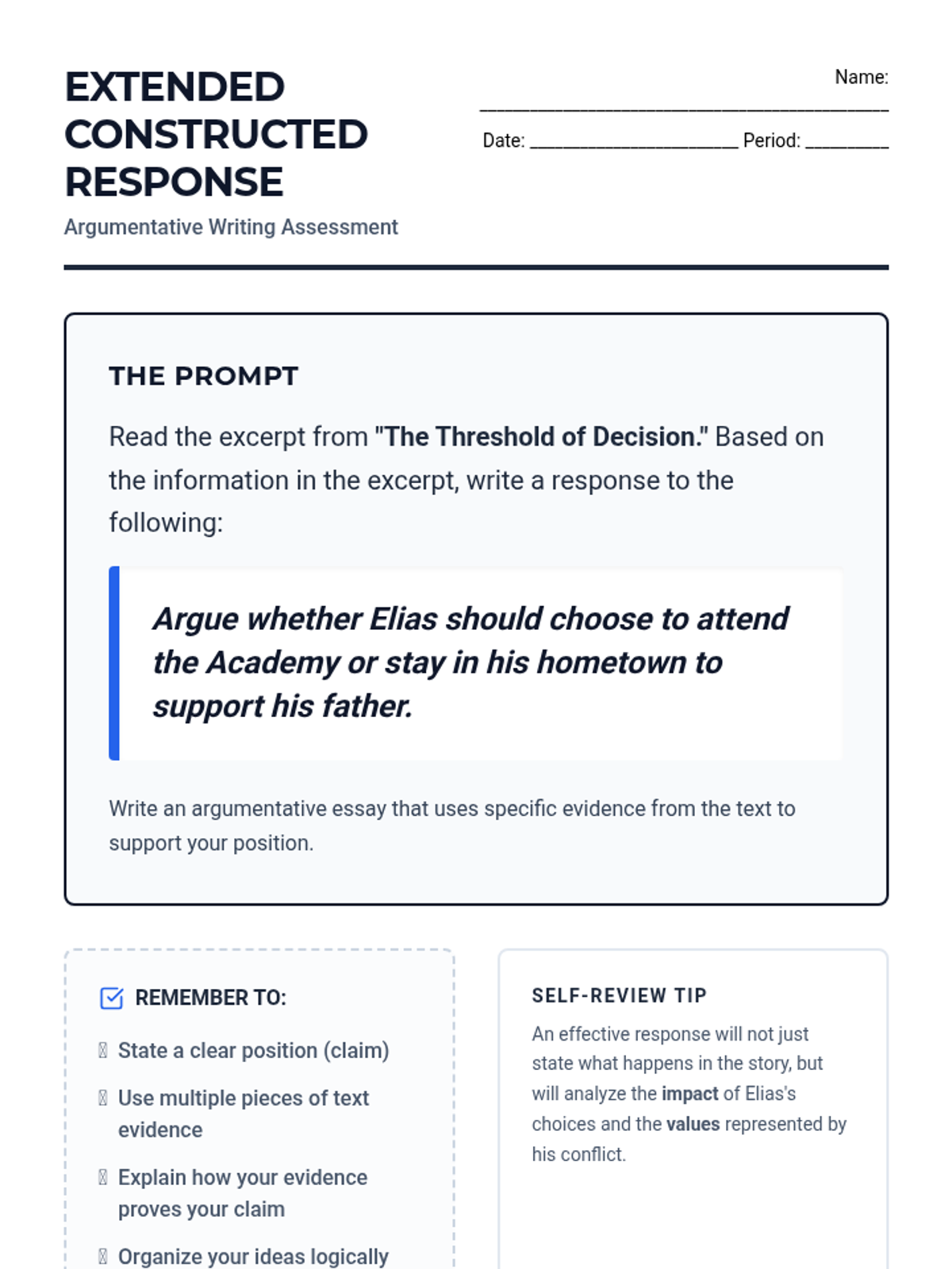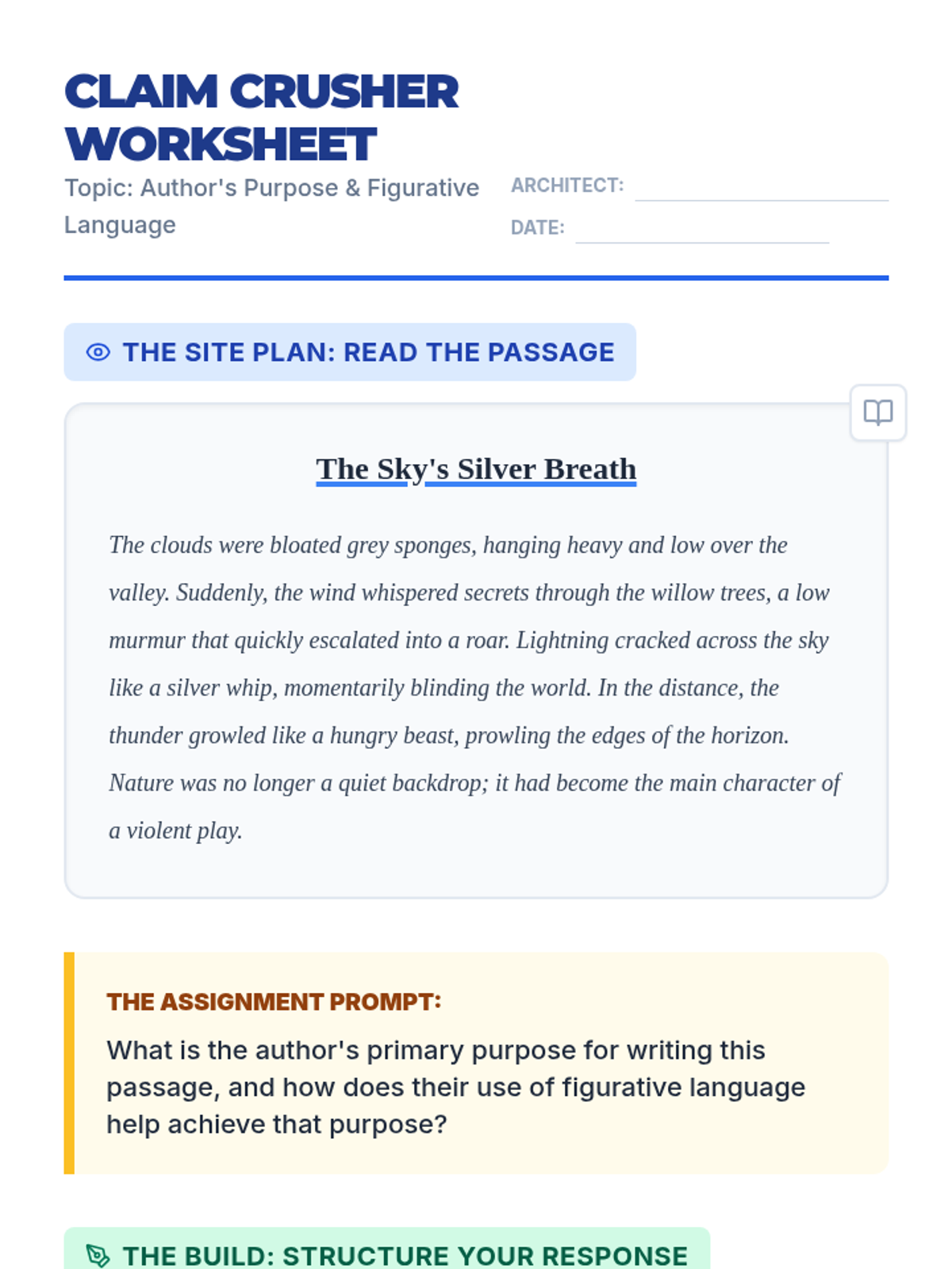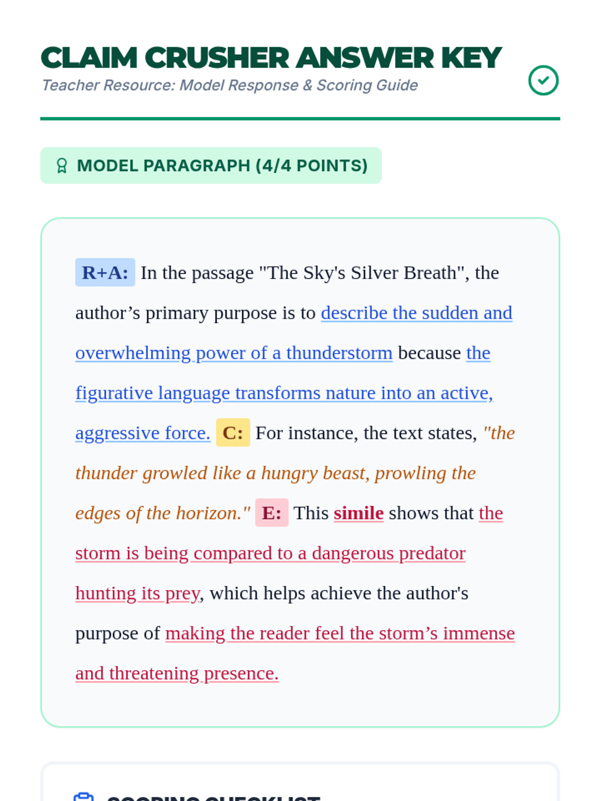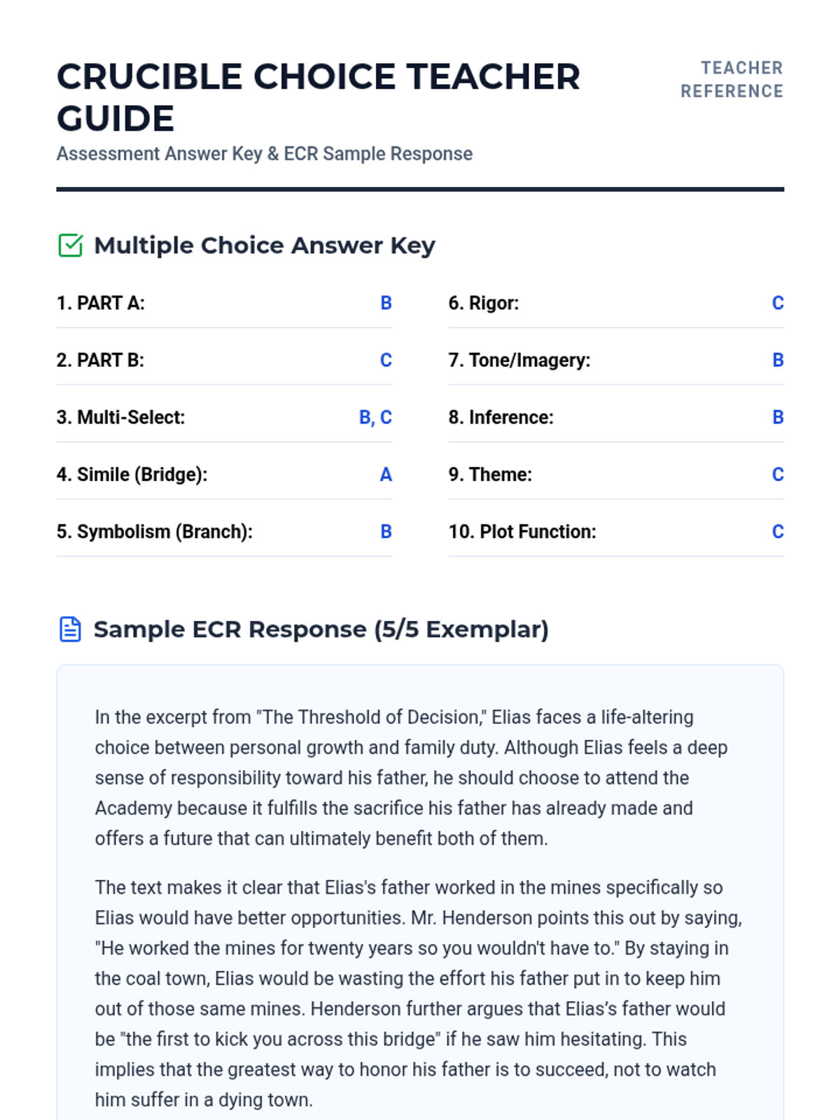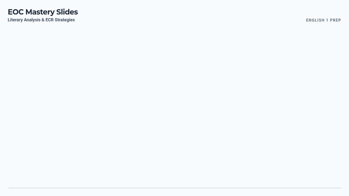 A comprehensive English 1 EOC-aligned lesson focusing on literary analysis, evidence-based questioning, and argumentative writing strategies. Students analyze a high-stakes literary excerpt and practice the specific question types found on the Texas state exam.