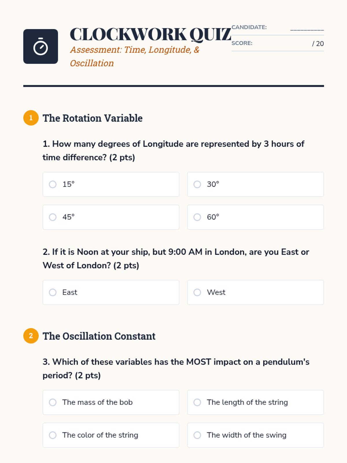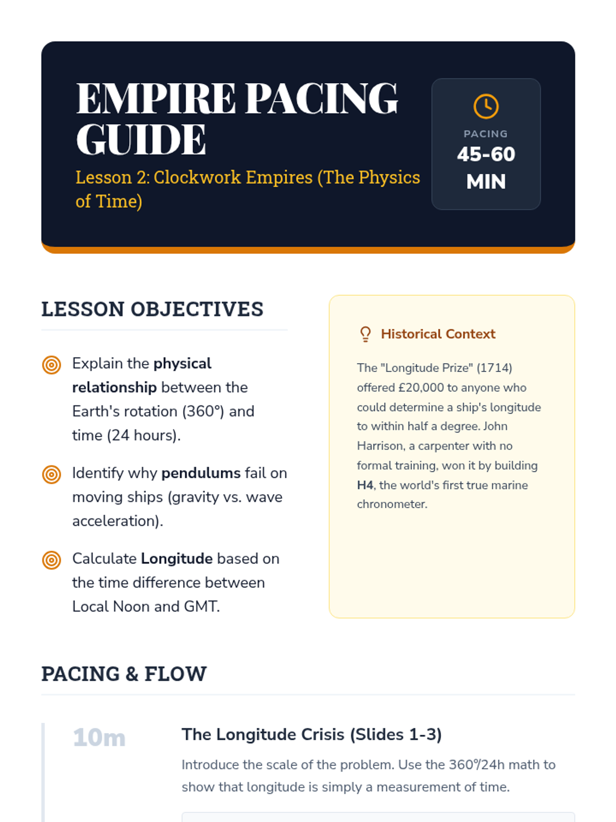Investigates the "Longitude Problem" and the scientific race to build the first accurate marine chronometers, focusing on the physics of oscillation, friction, and the relationship between time and space.