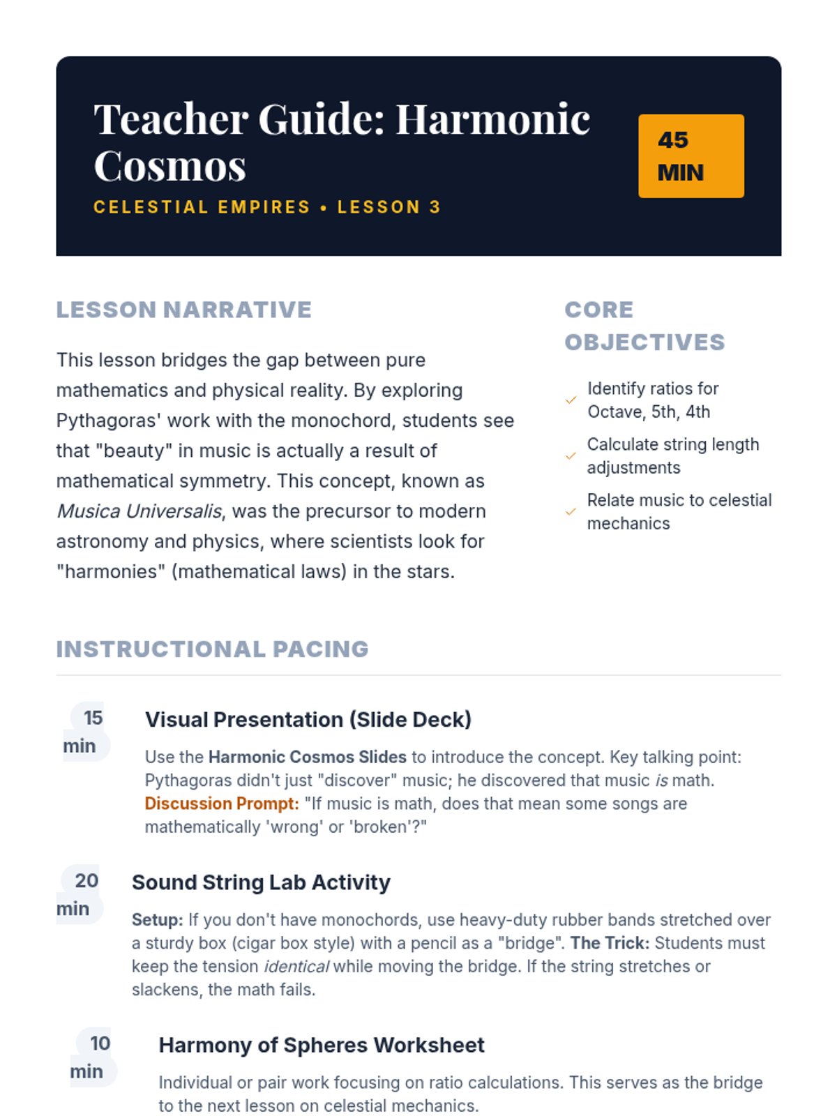 Explores Pythagoras' discovery of the mathematical foundations of music and how he extended this 'harmonic logic' to explain the order of the universe and the 'Music of the Spheres'.