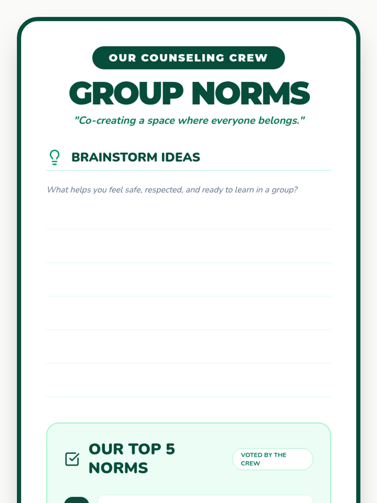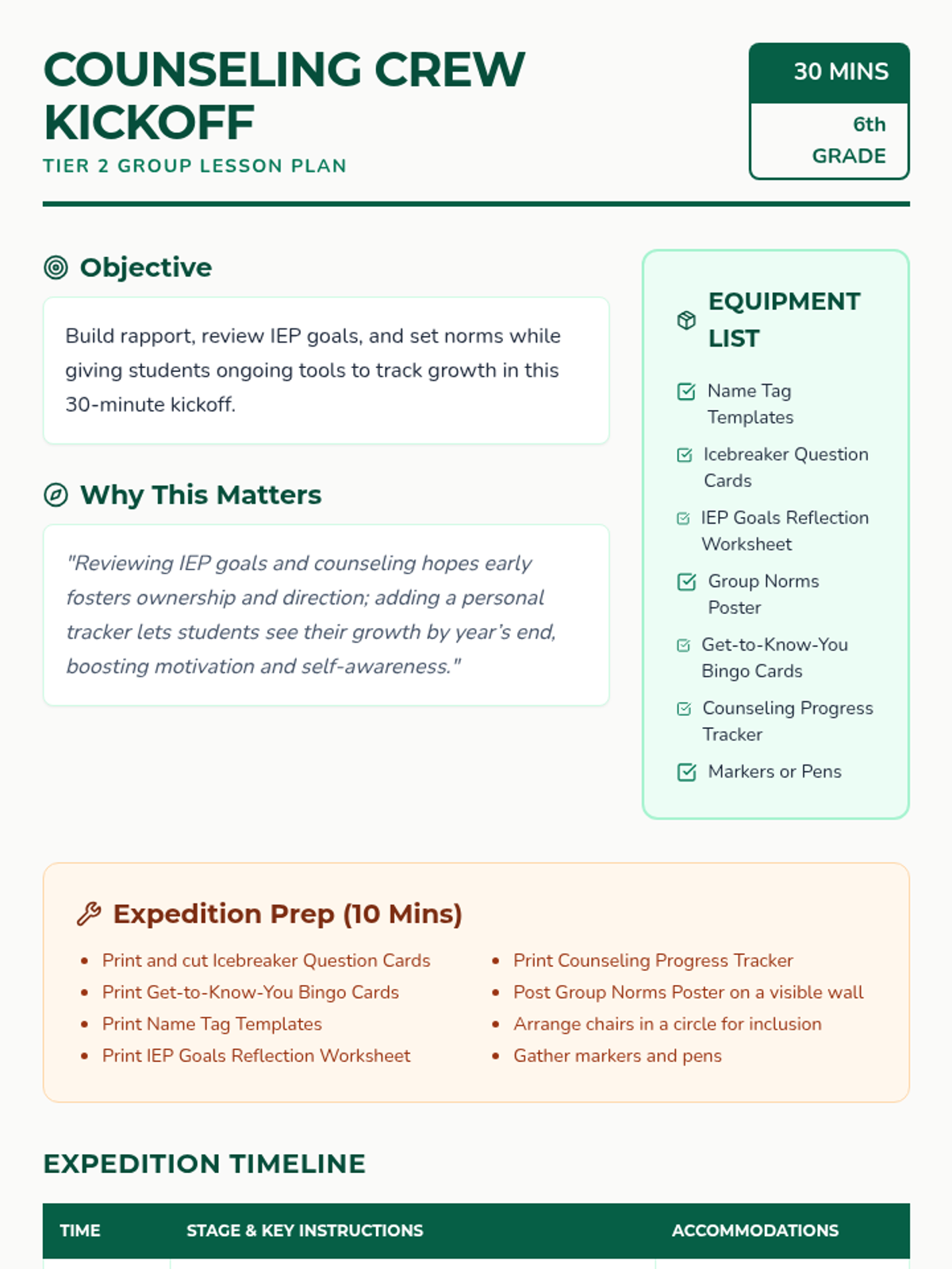 A fun, 30-minute Tier 2 group counseling session designed to welcome 6th-grade participants, build rapport, and establish group norms while reflecting on IEP goals.