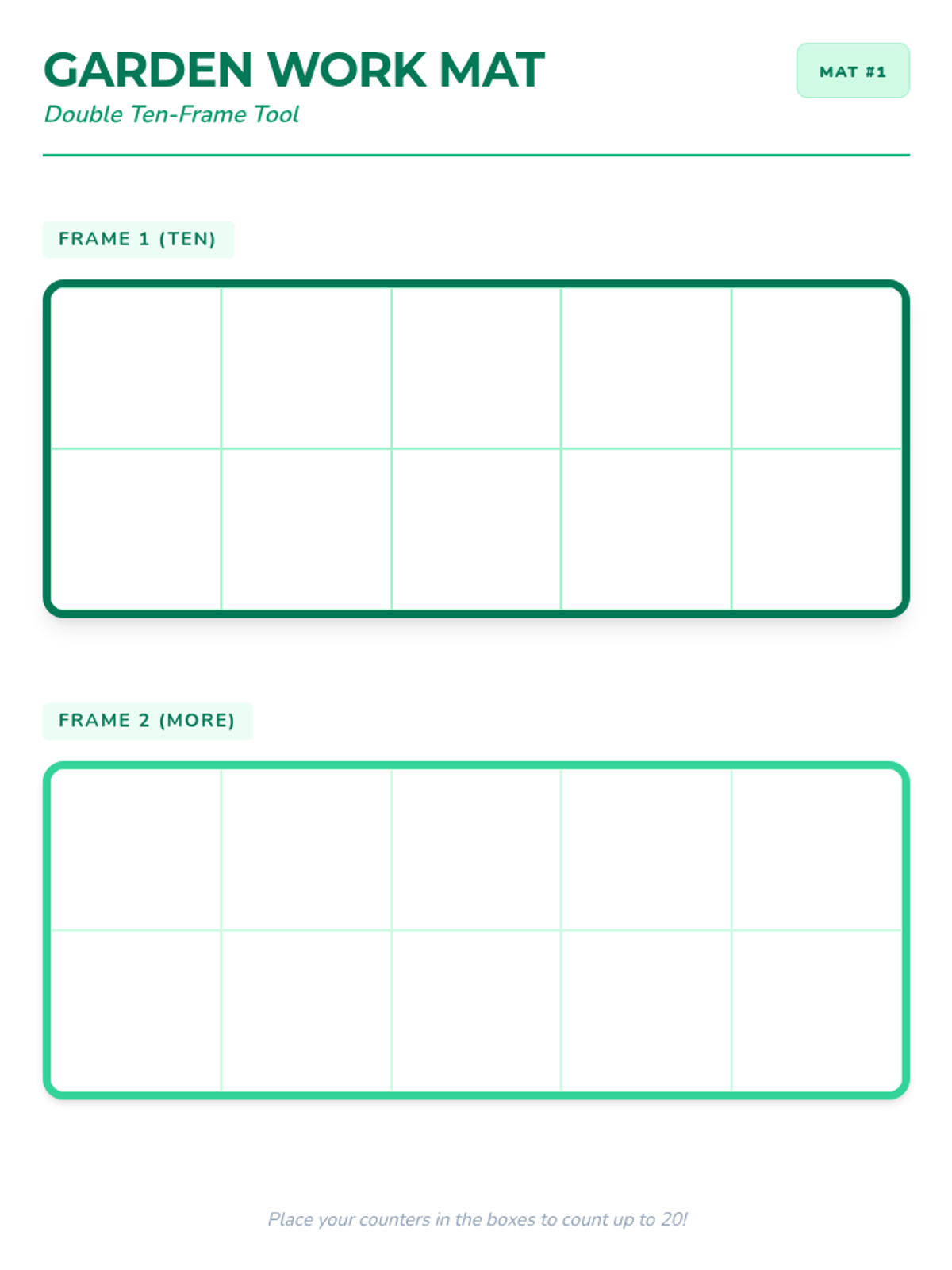 A set of addition task cards featuring ten frames to help first-grade students master sums up to 10 with a garden-themed aesthetic.
