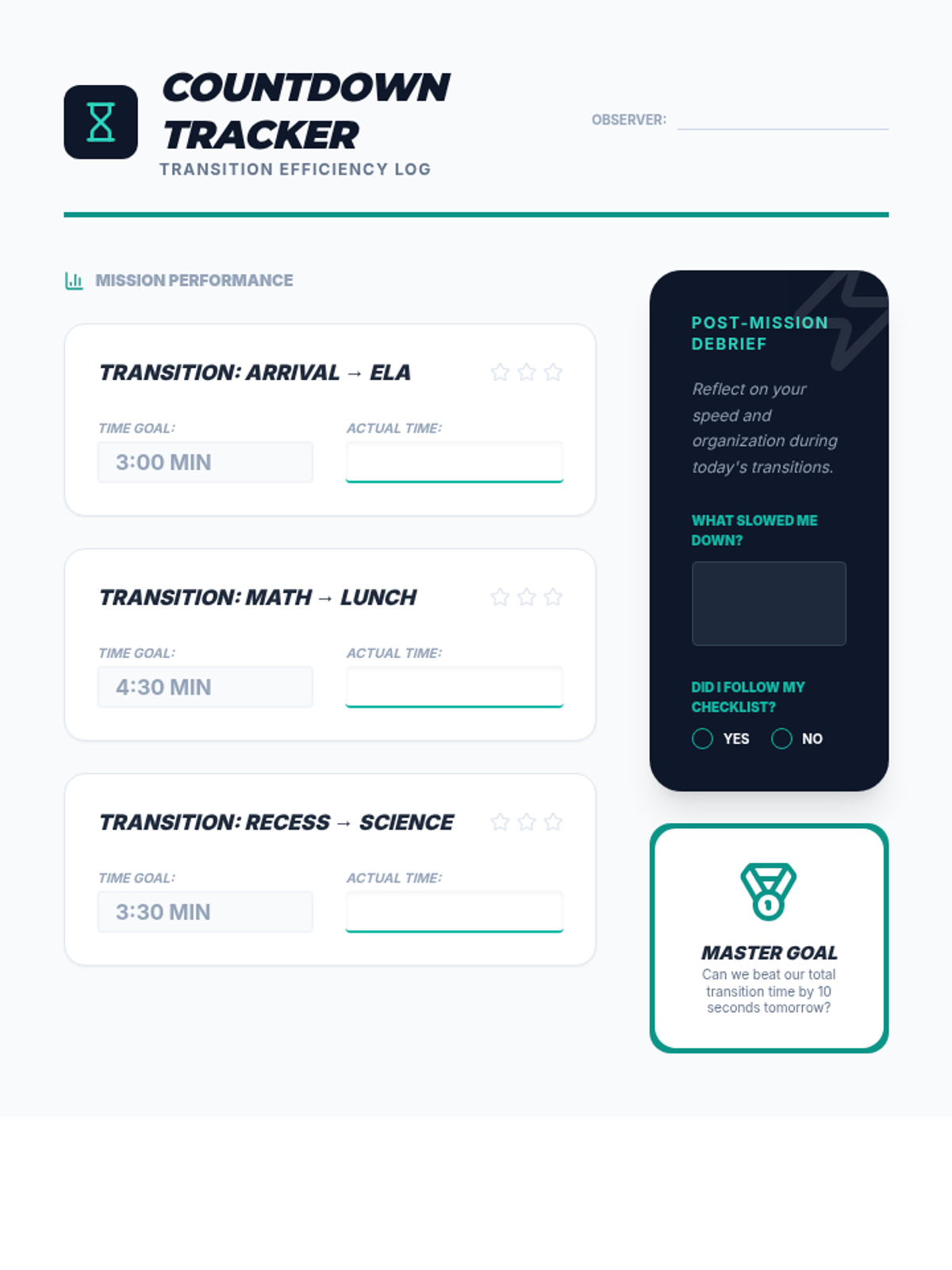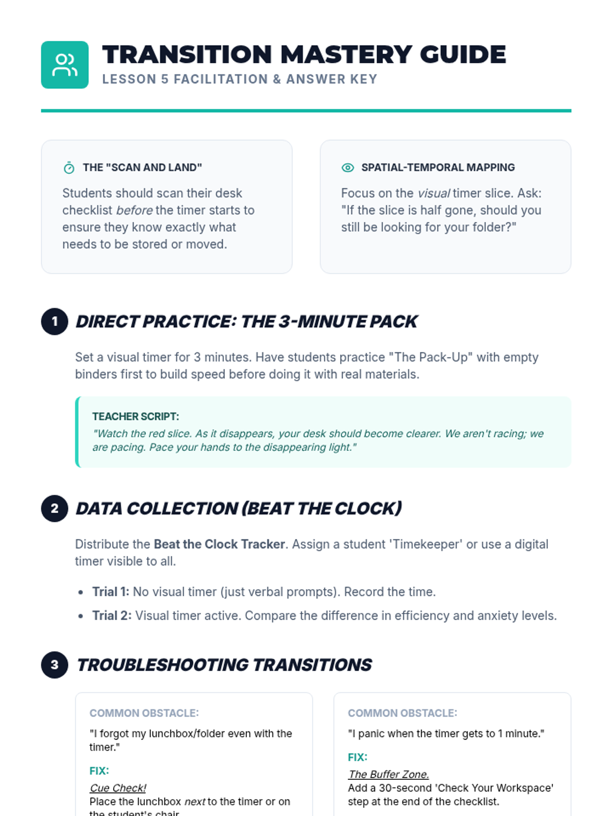 Students use visual timers and countdowns to manage transitions and pace their physical organization routines.